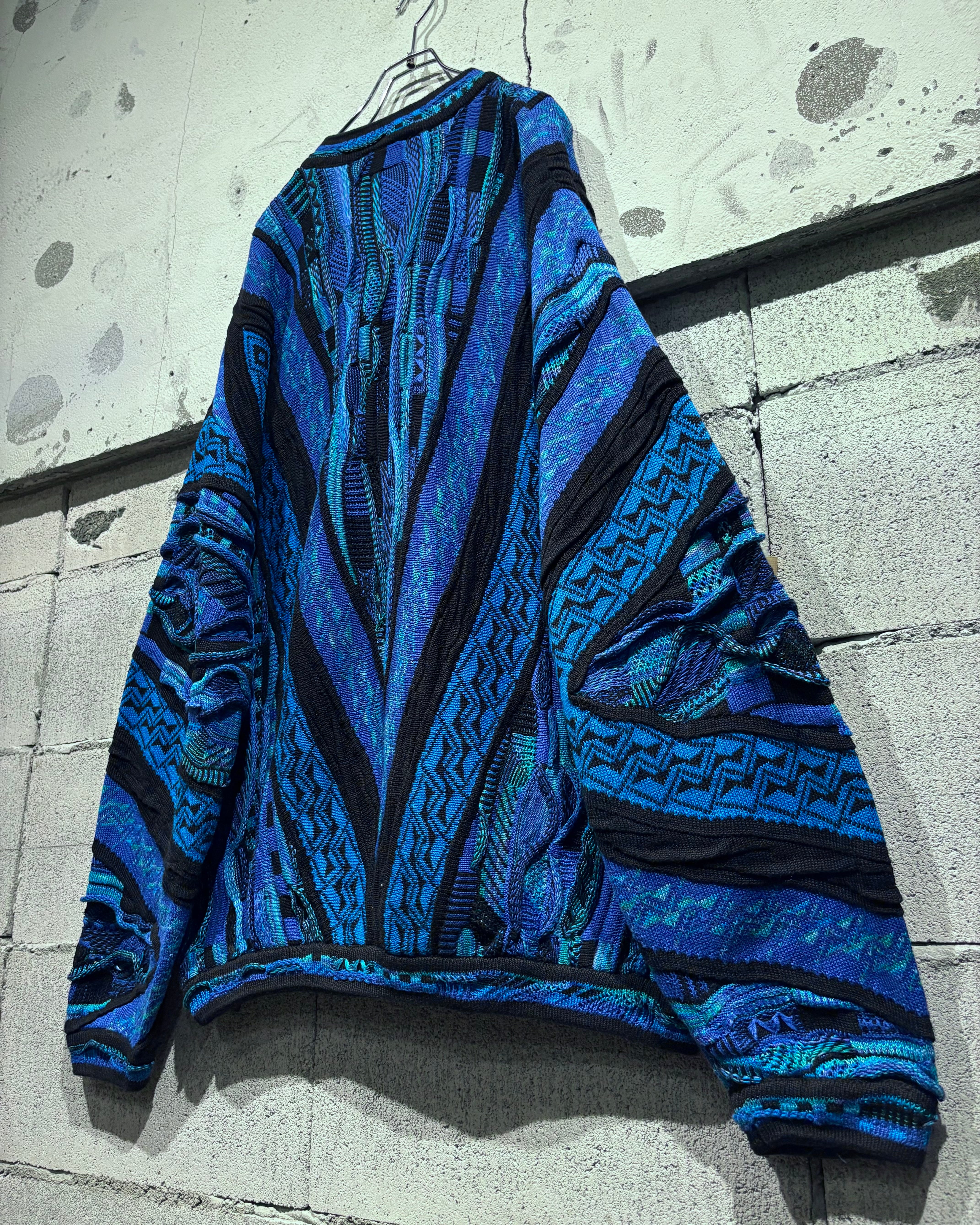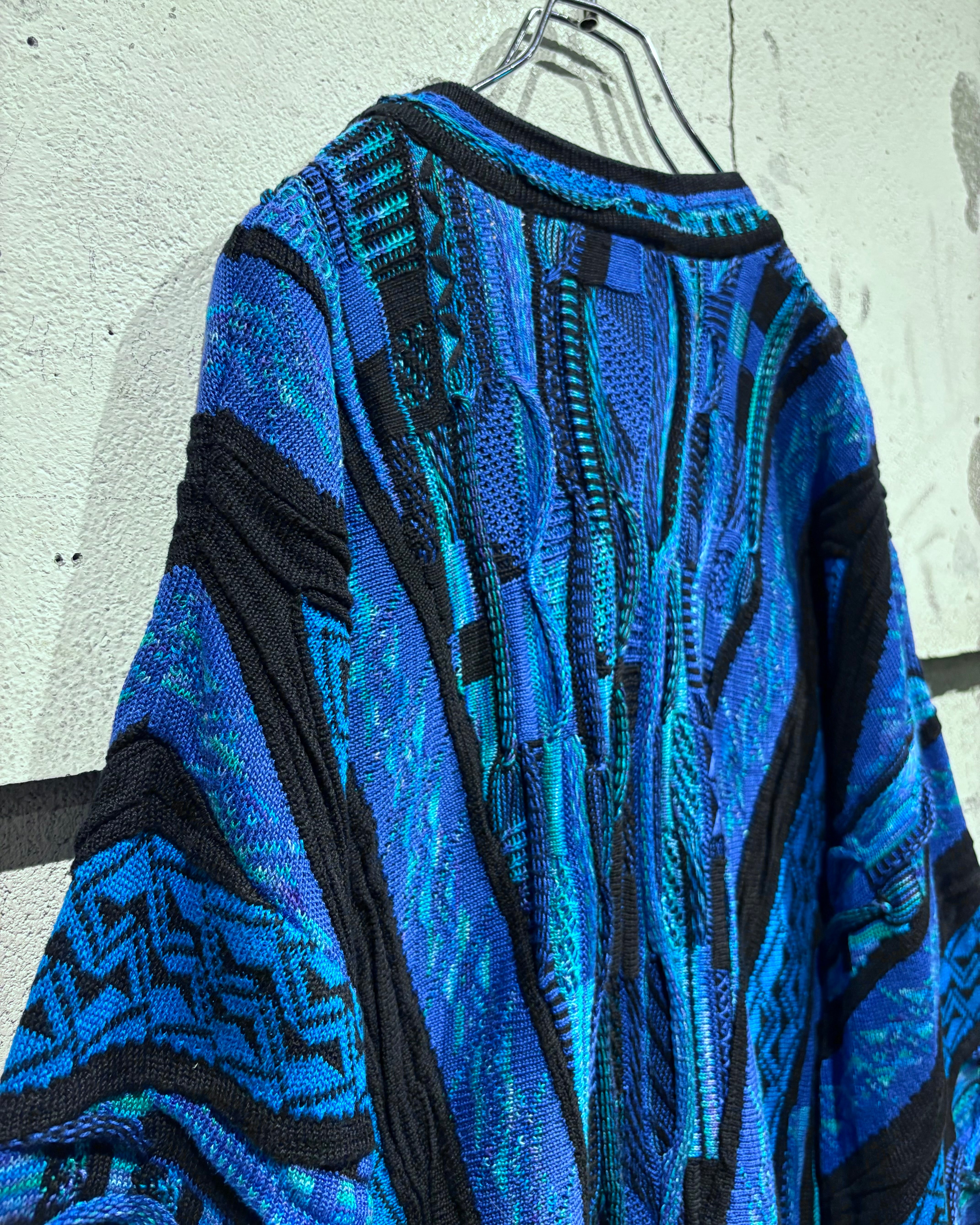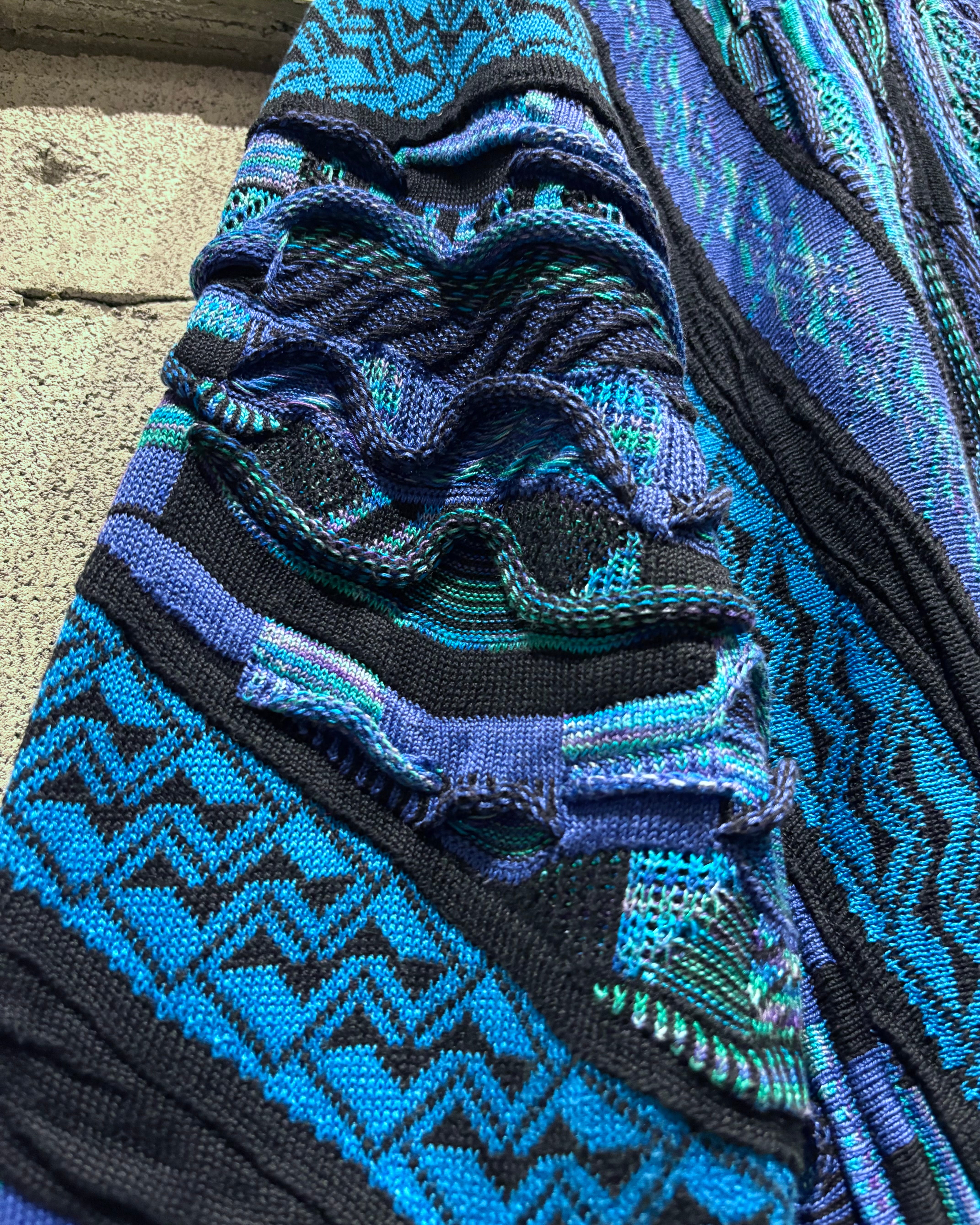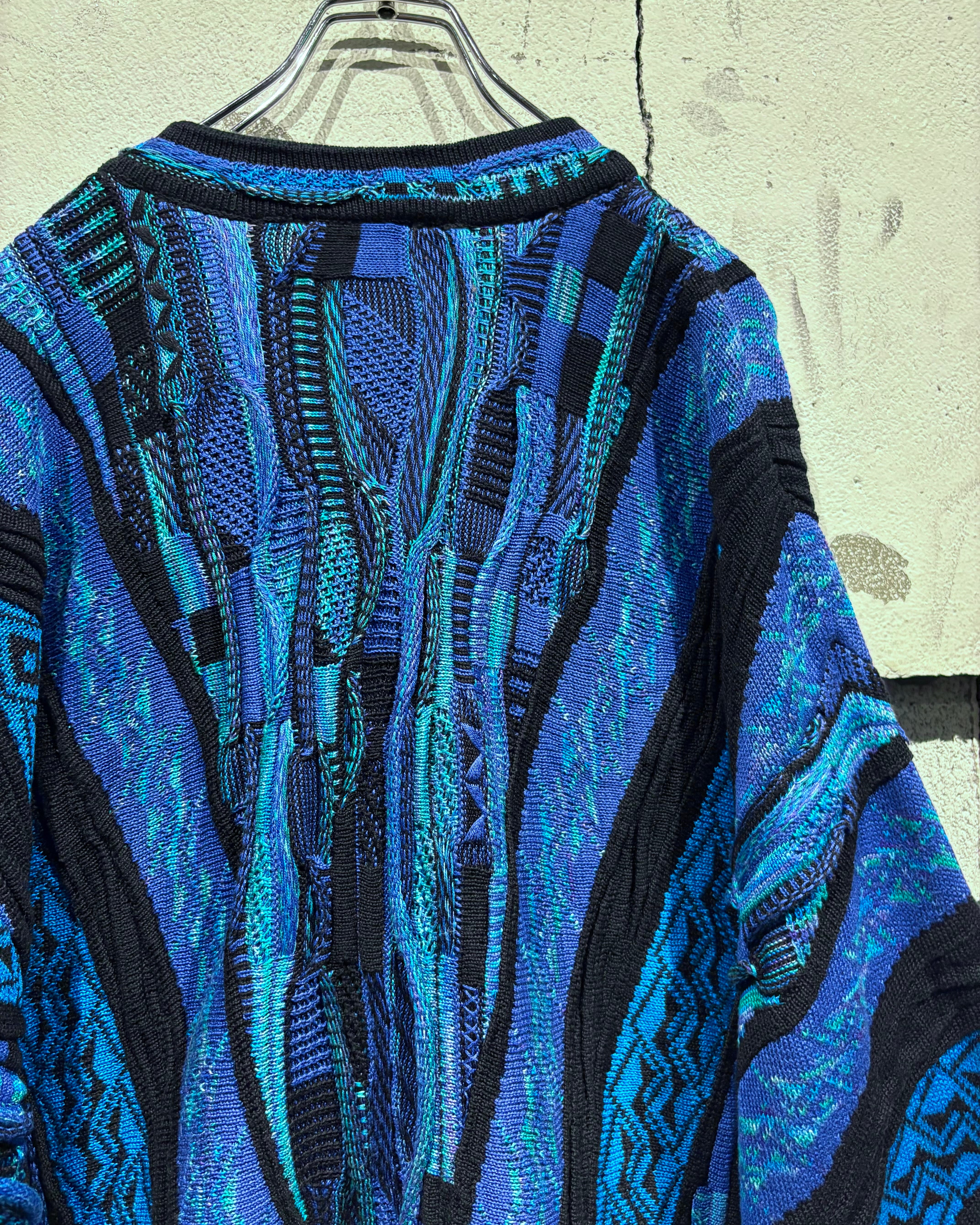 深いブルーからターコイズへと移ろう多彩な配色に、ブラックのラインがデザインを引き締める3Dニット。