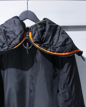 フード周りはボリュームたっぷりの中綿+ボアで、ジップによる分割式。防寒性はもちろん、後ろ姿のシルエットまでしっかりと演出され、どの角度から見ても存在感抜群。