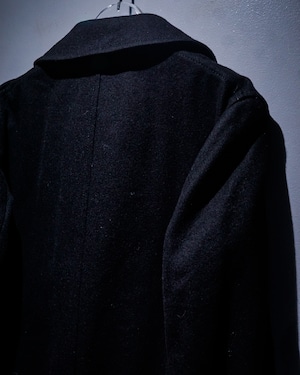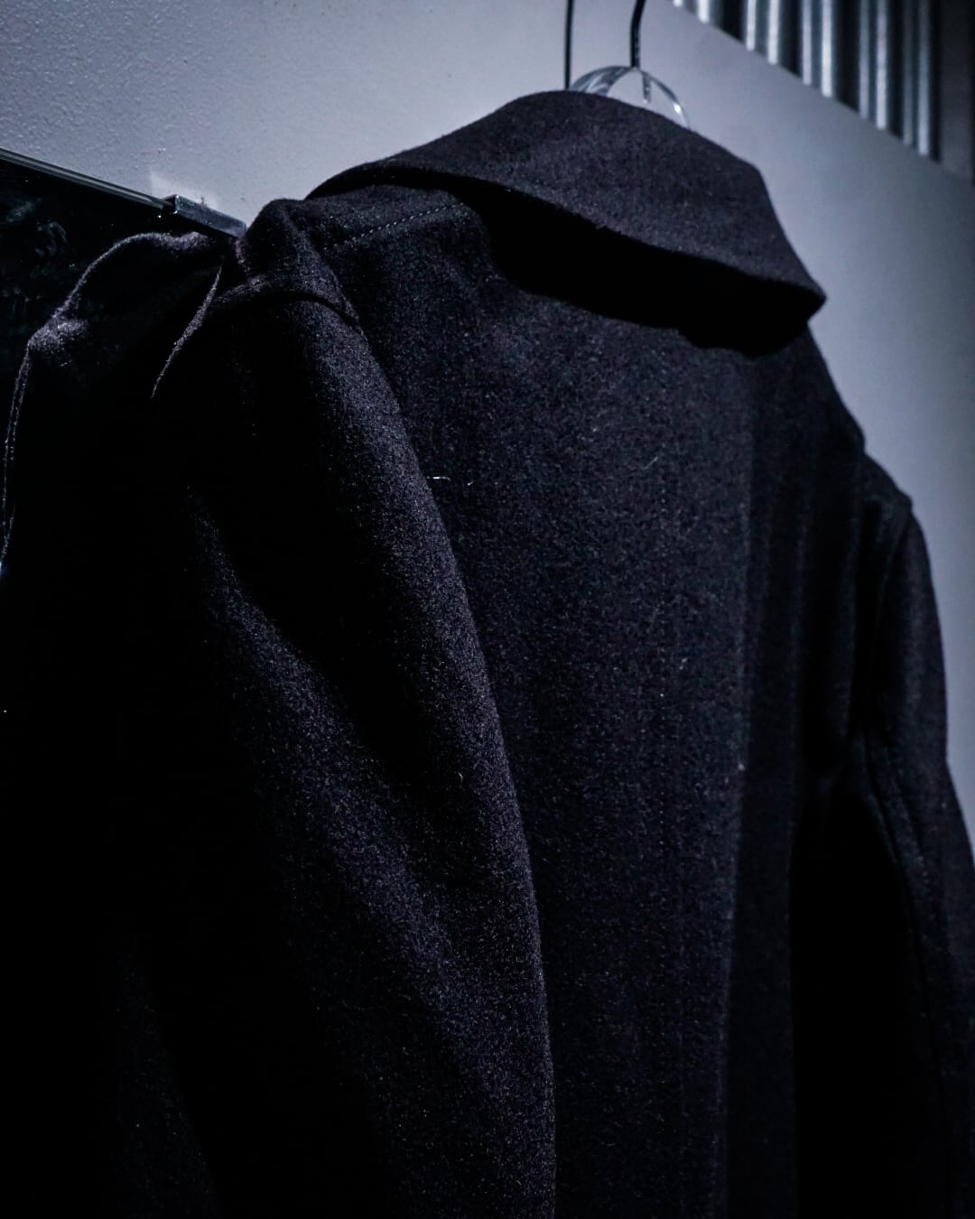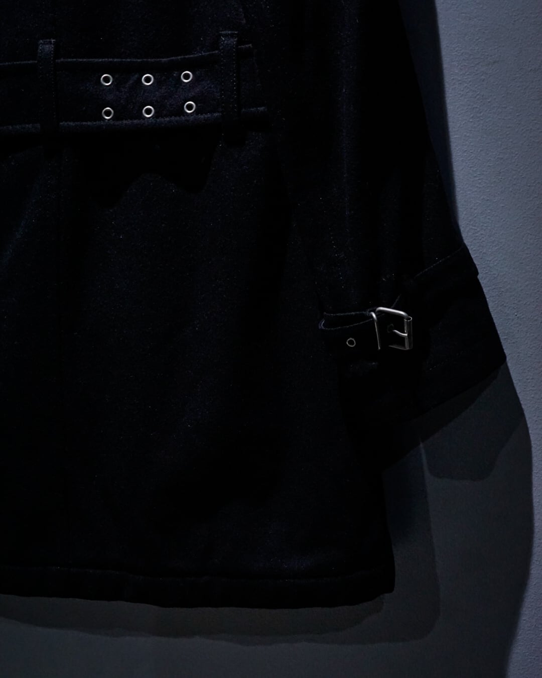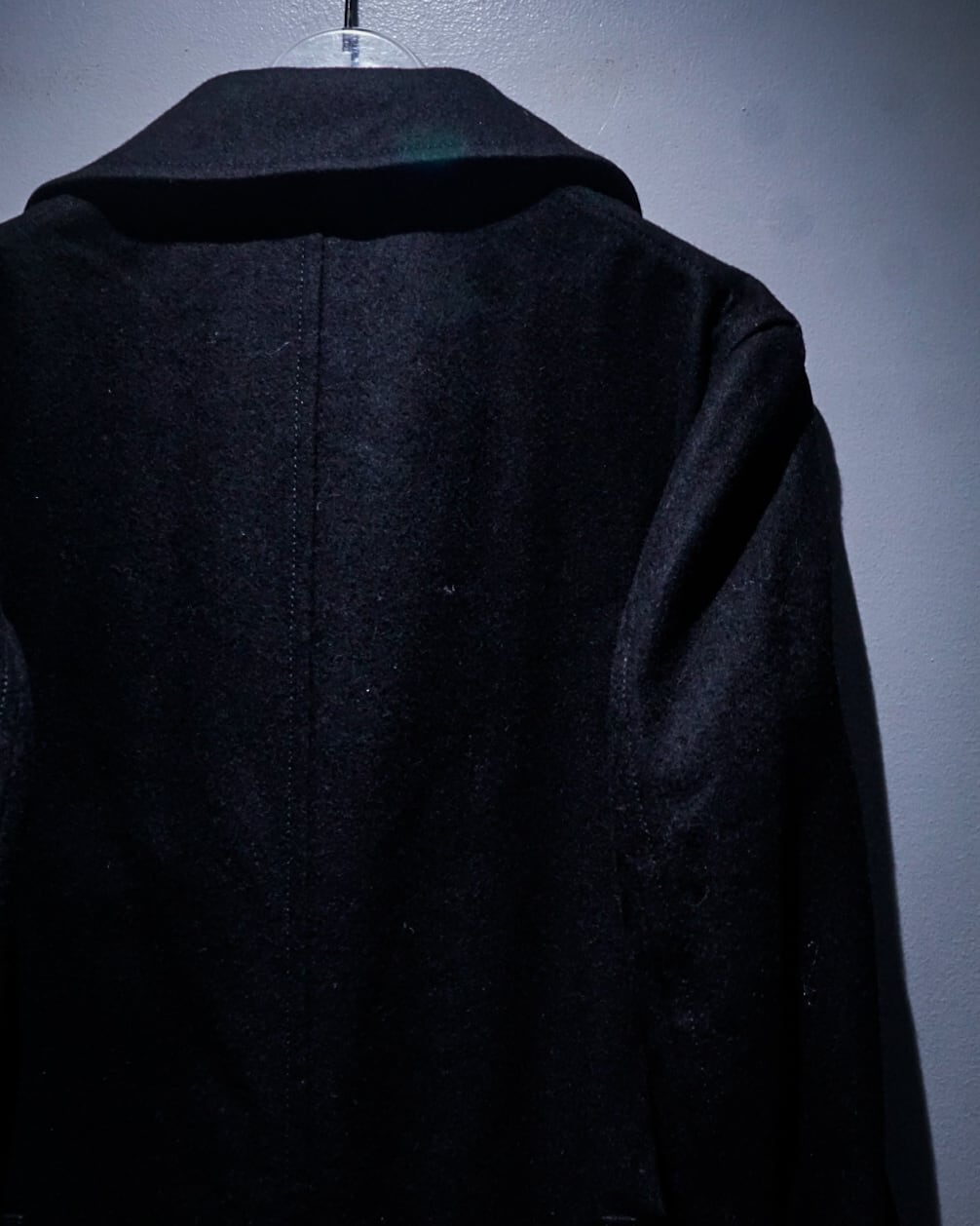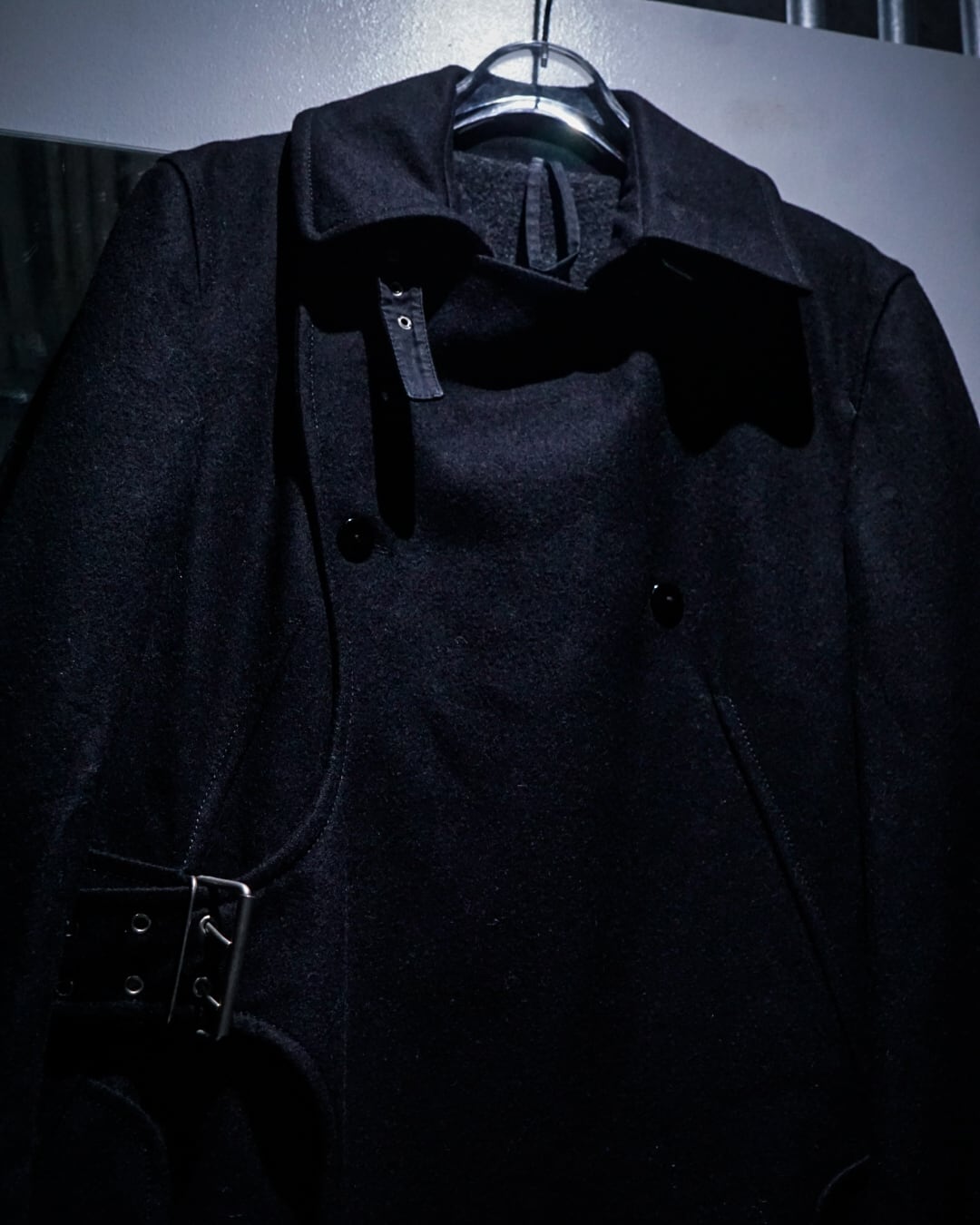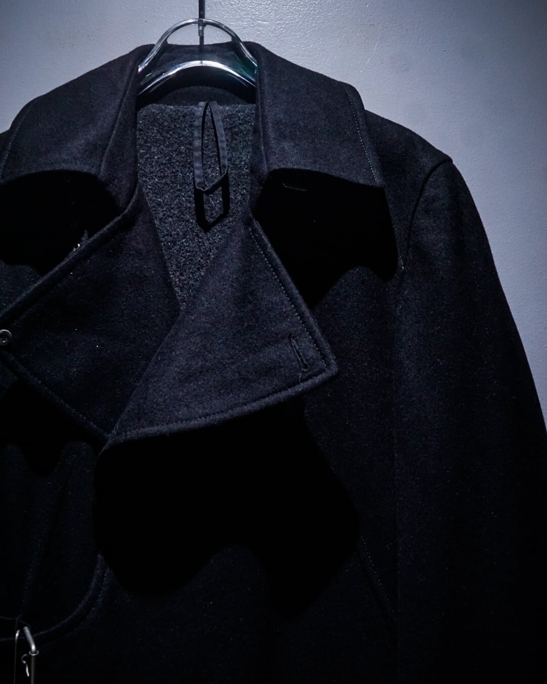 重厚なウールを用いて、“変形”に仕上げたダブルブレストのコート。