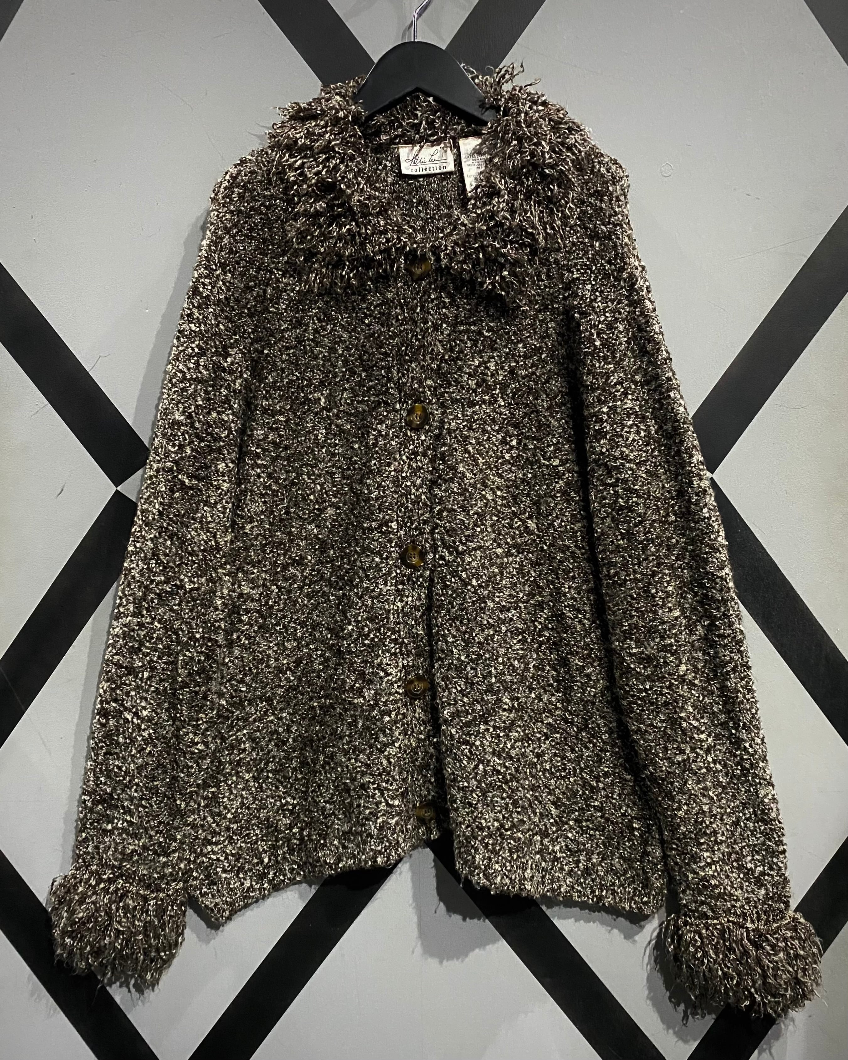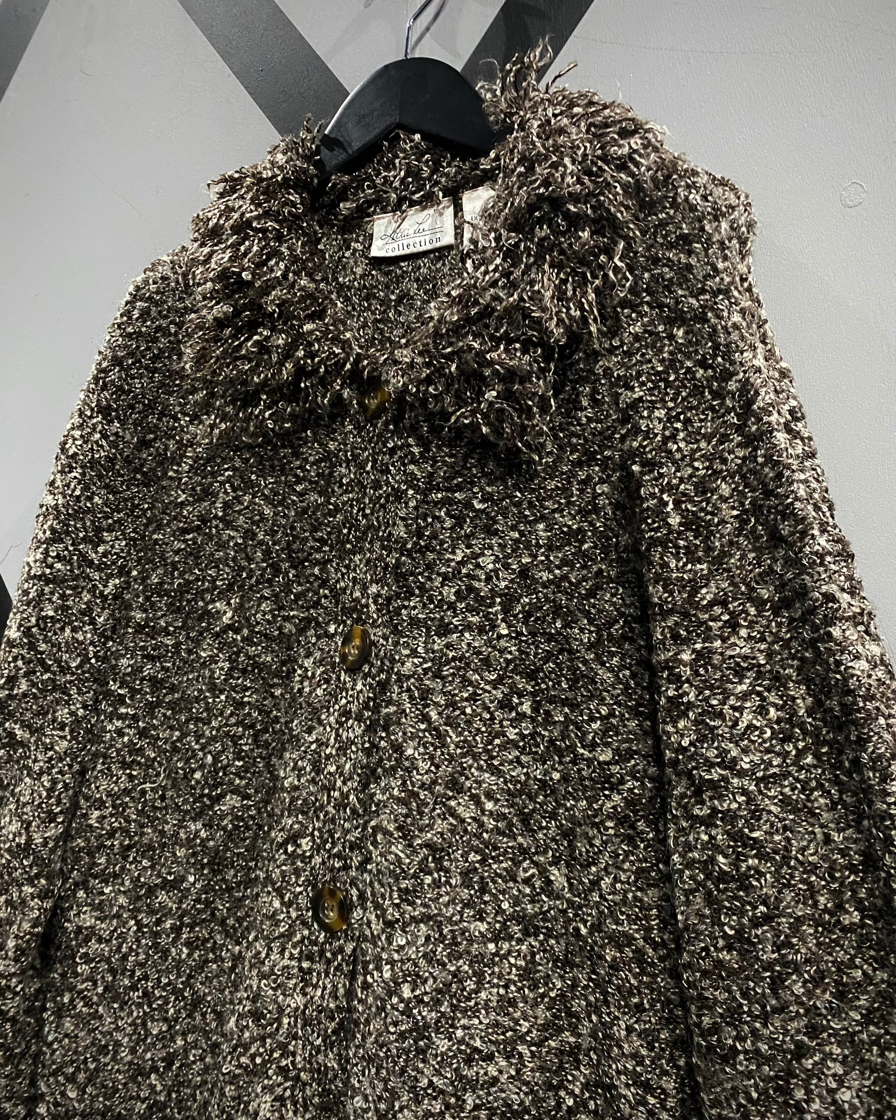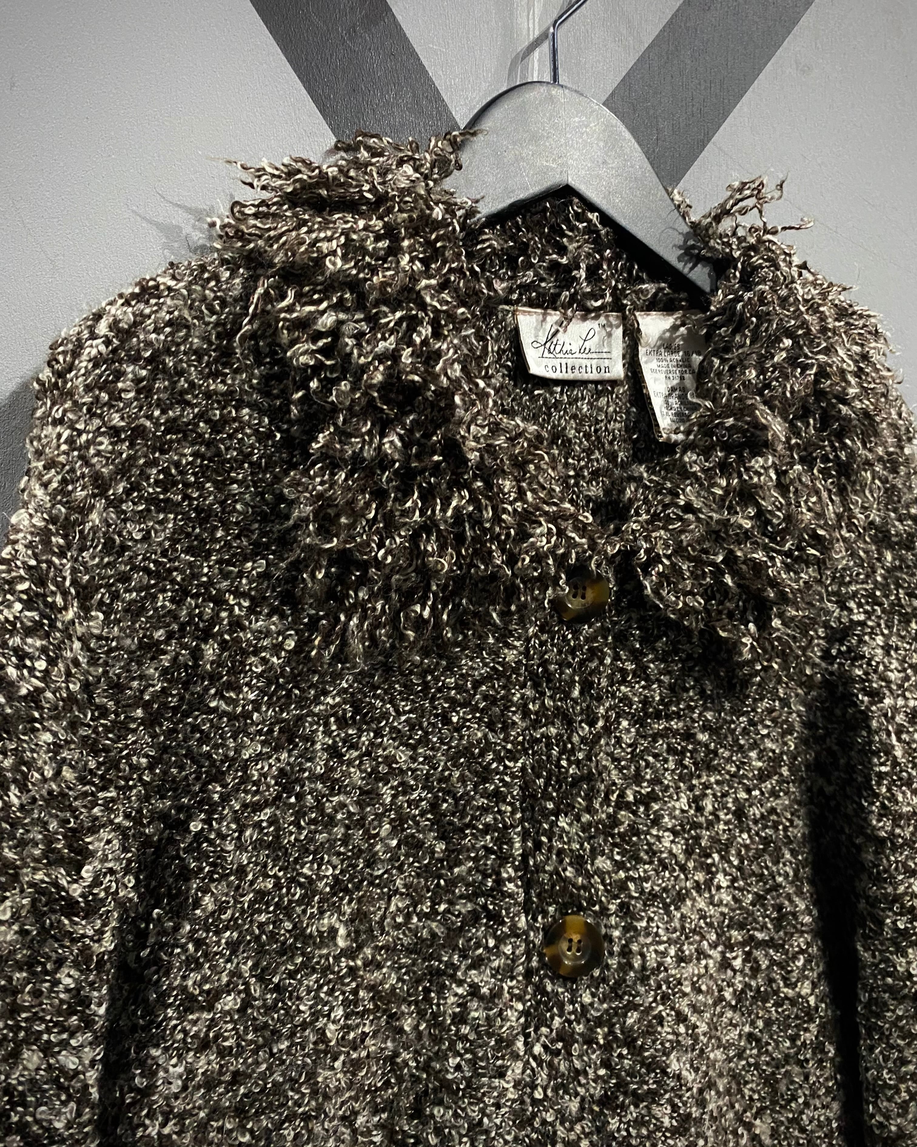 白×ブラウンの2色の糸を用いたパイルニットのジャケット。