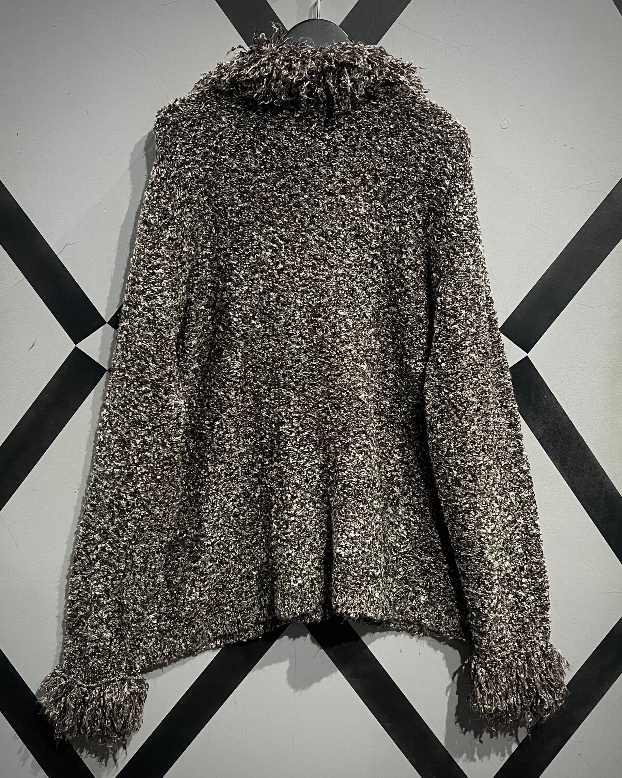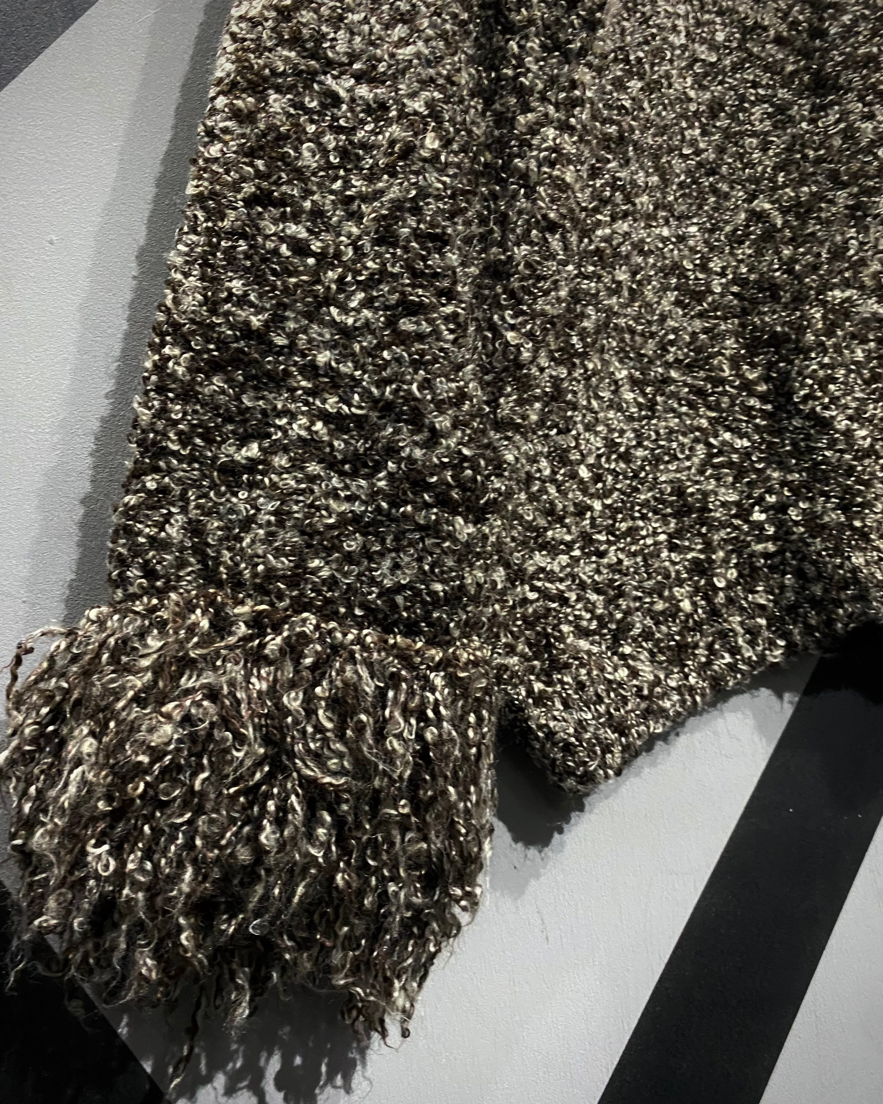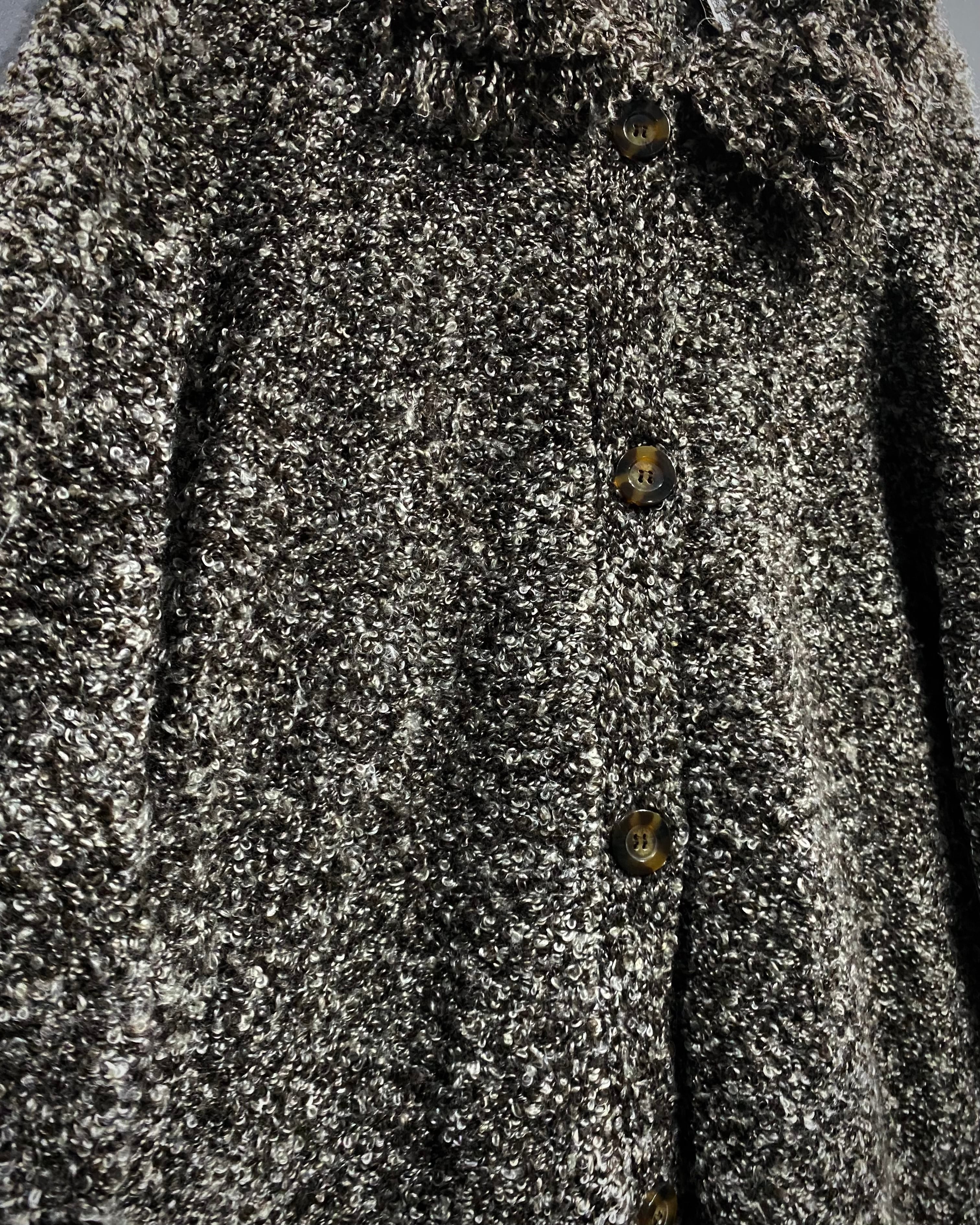 白×ブラウンの2色の糸を用いたパイルニットのジャケット。