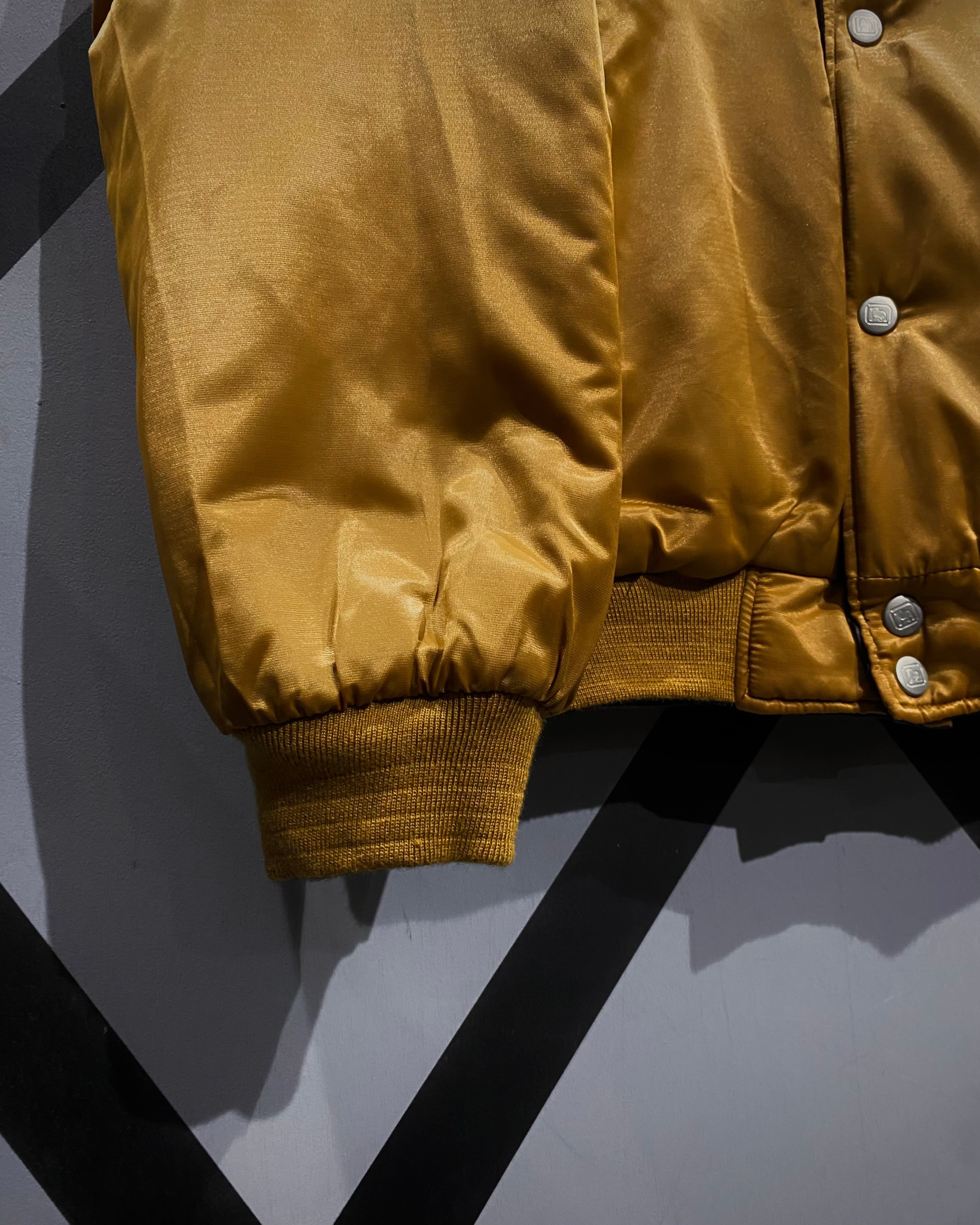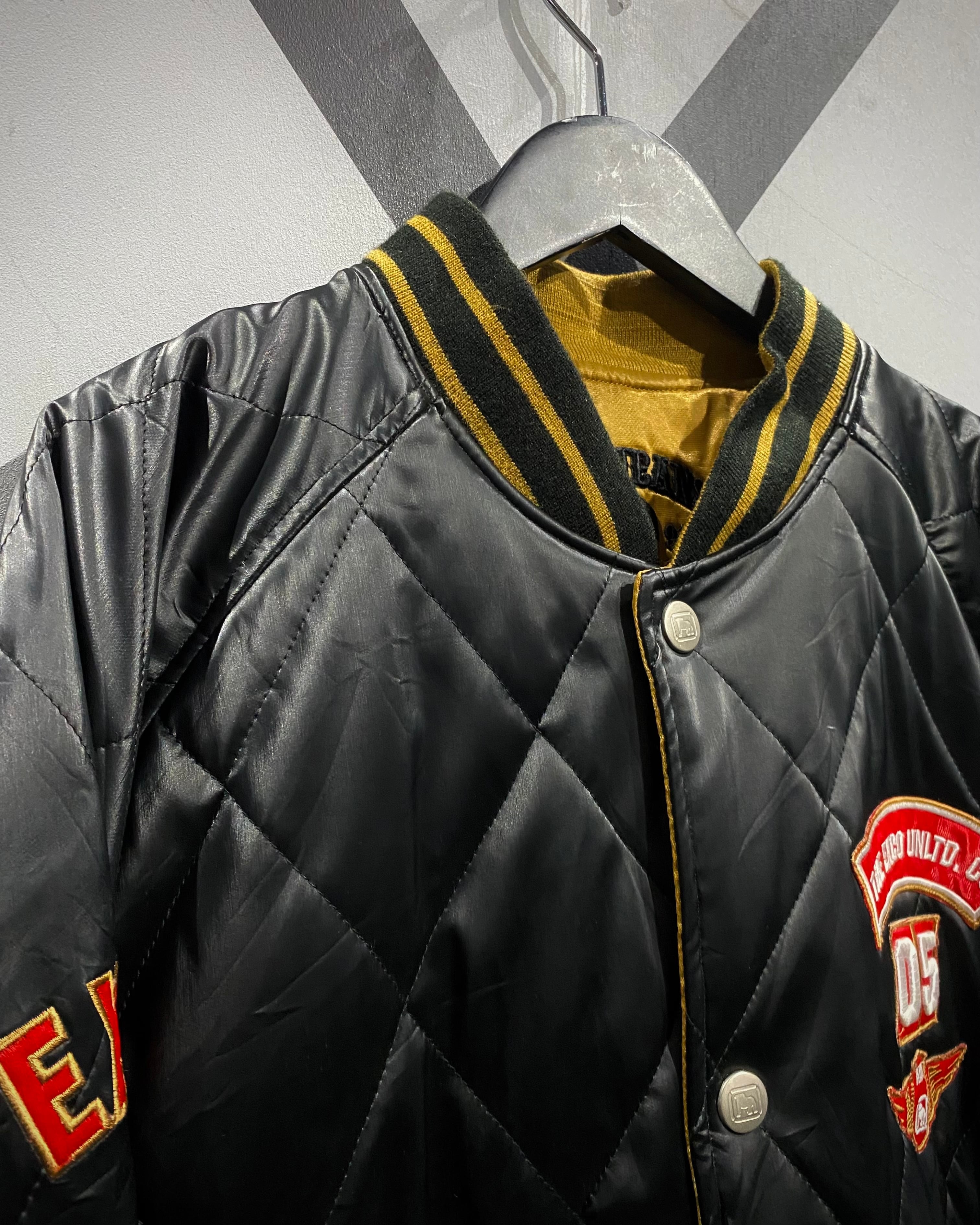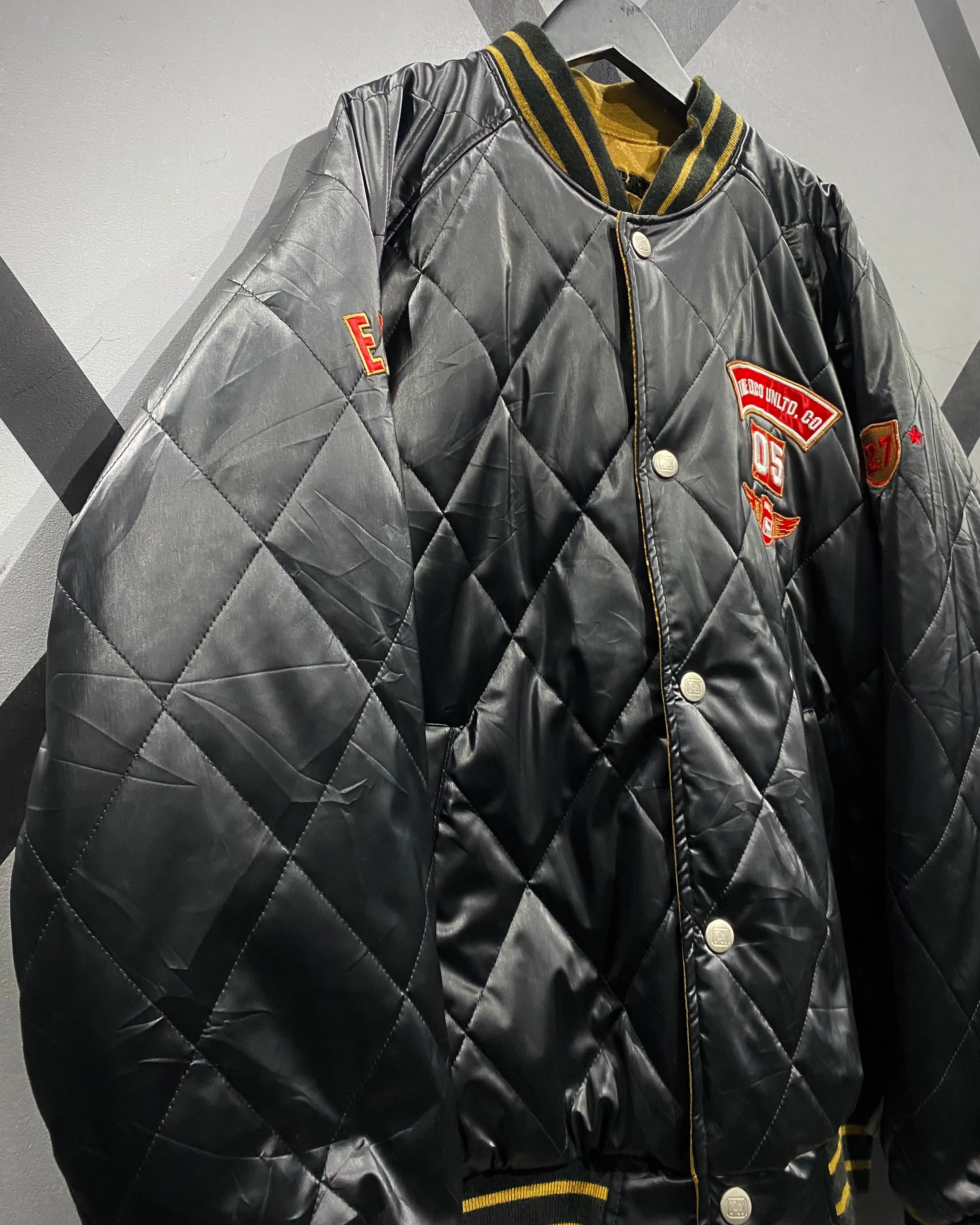 ブラックのキルティング、ゴールドの光沢をリバーシブル仕様にしたボンバージャケット。