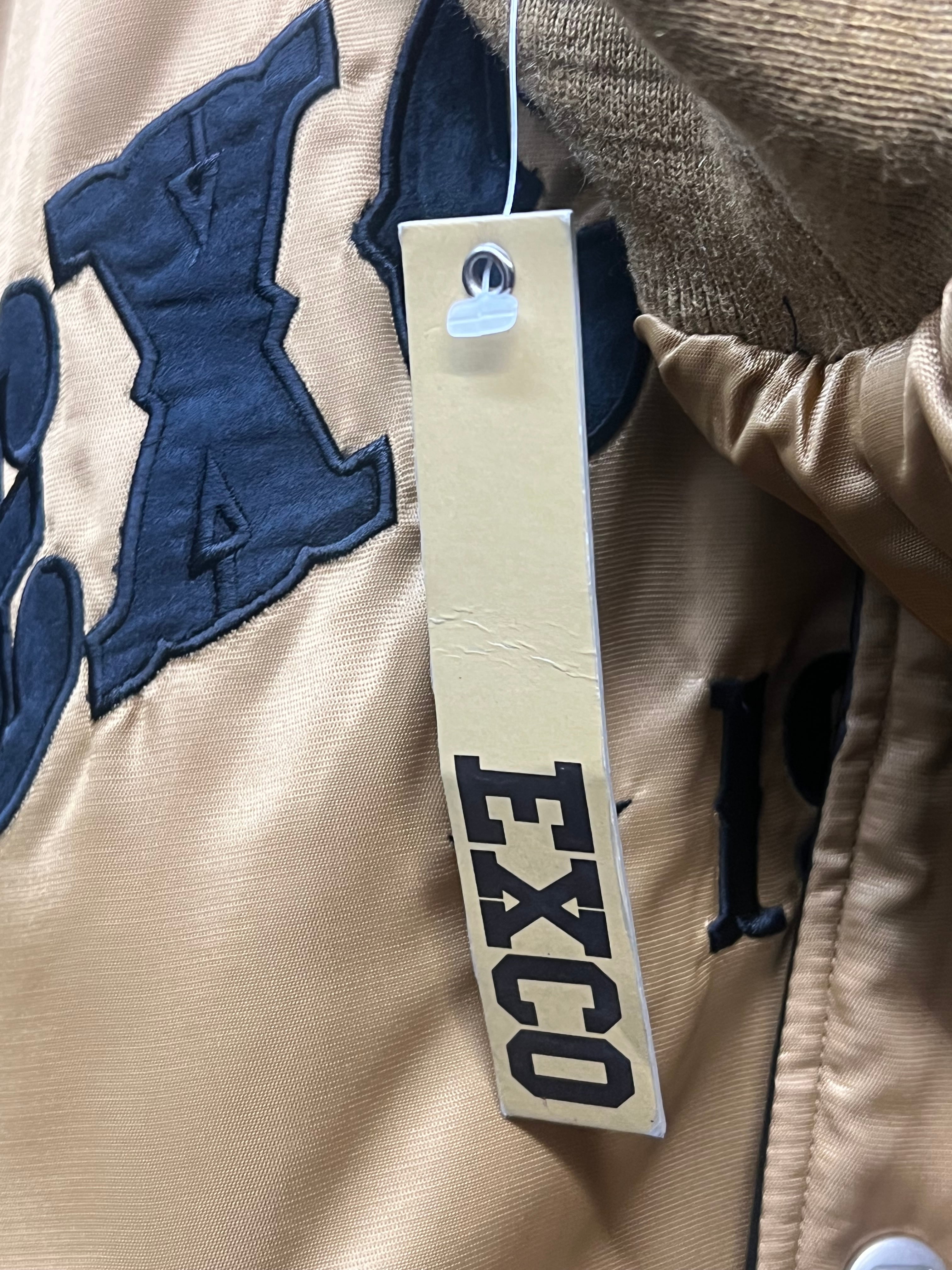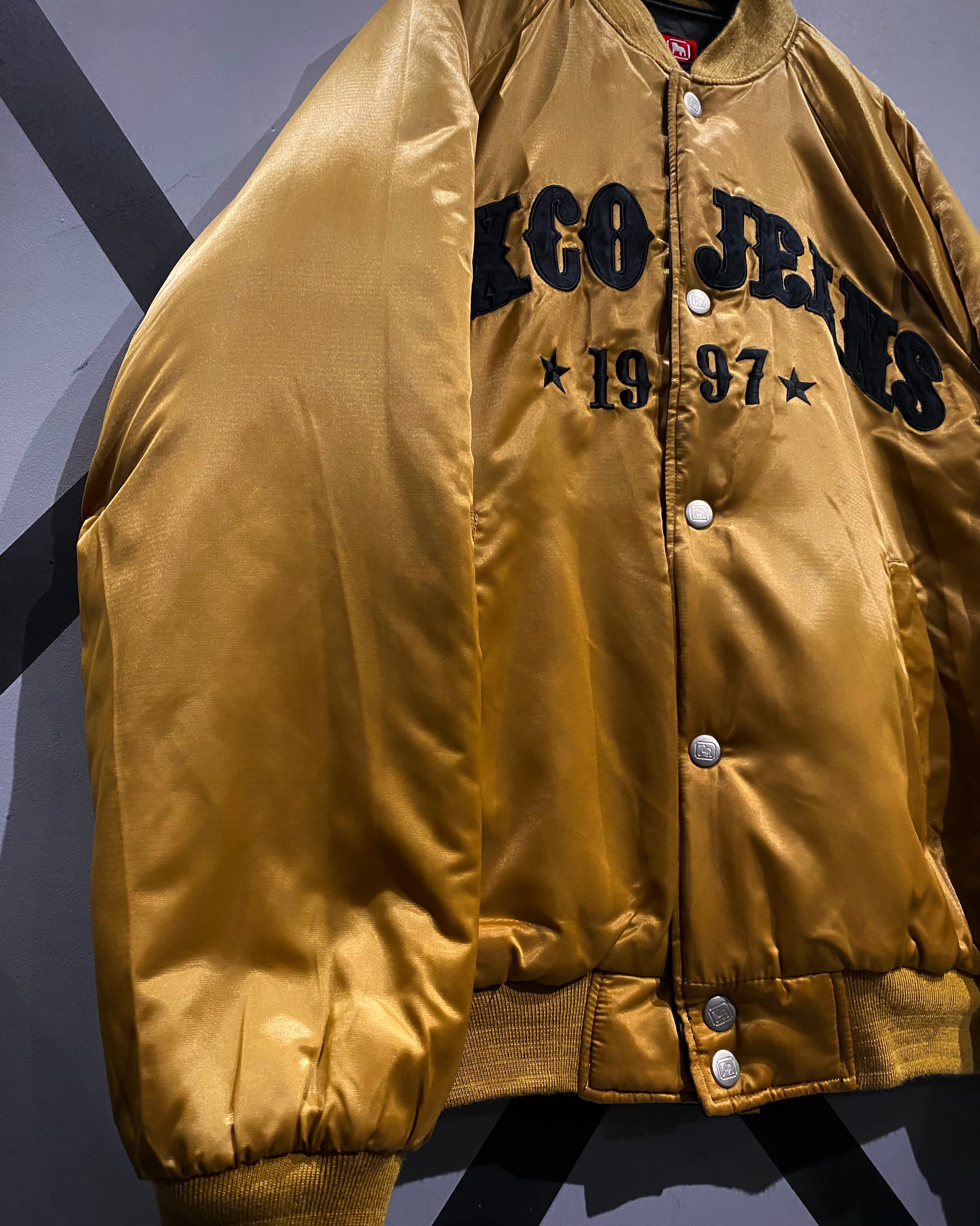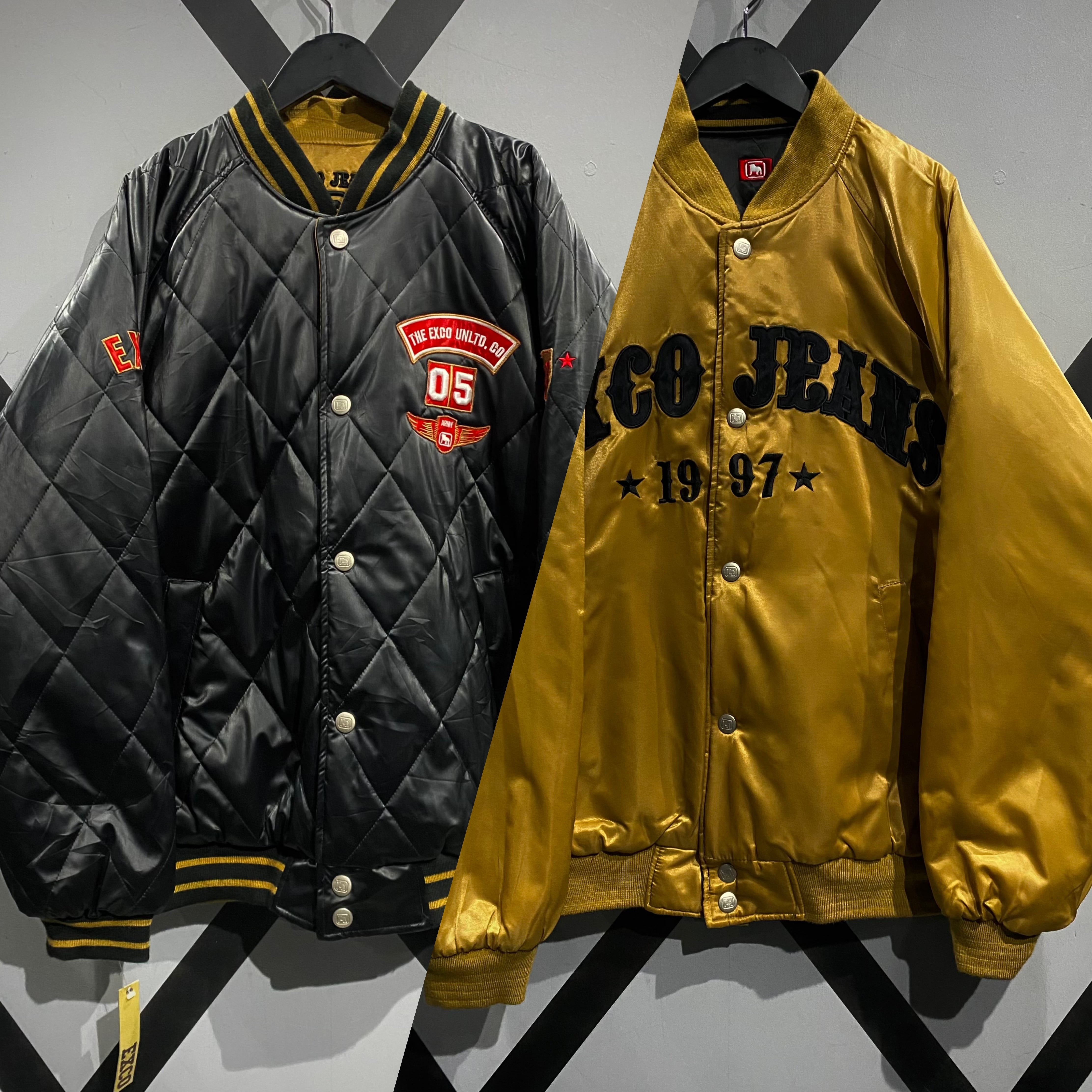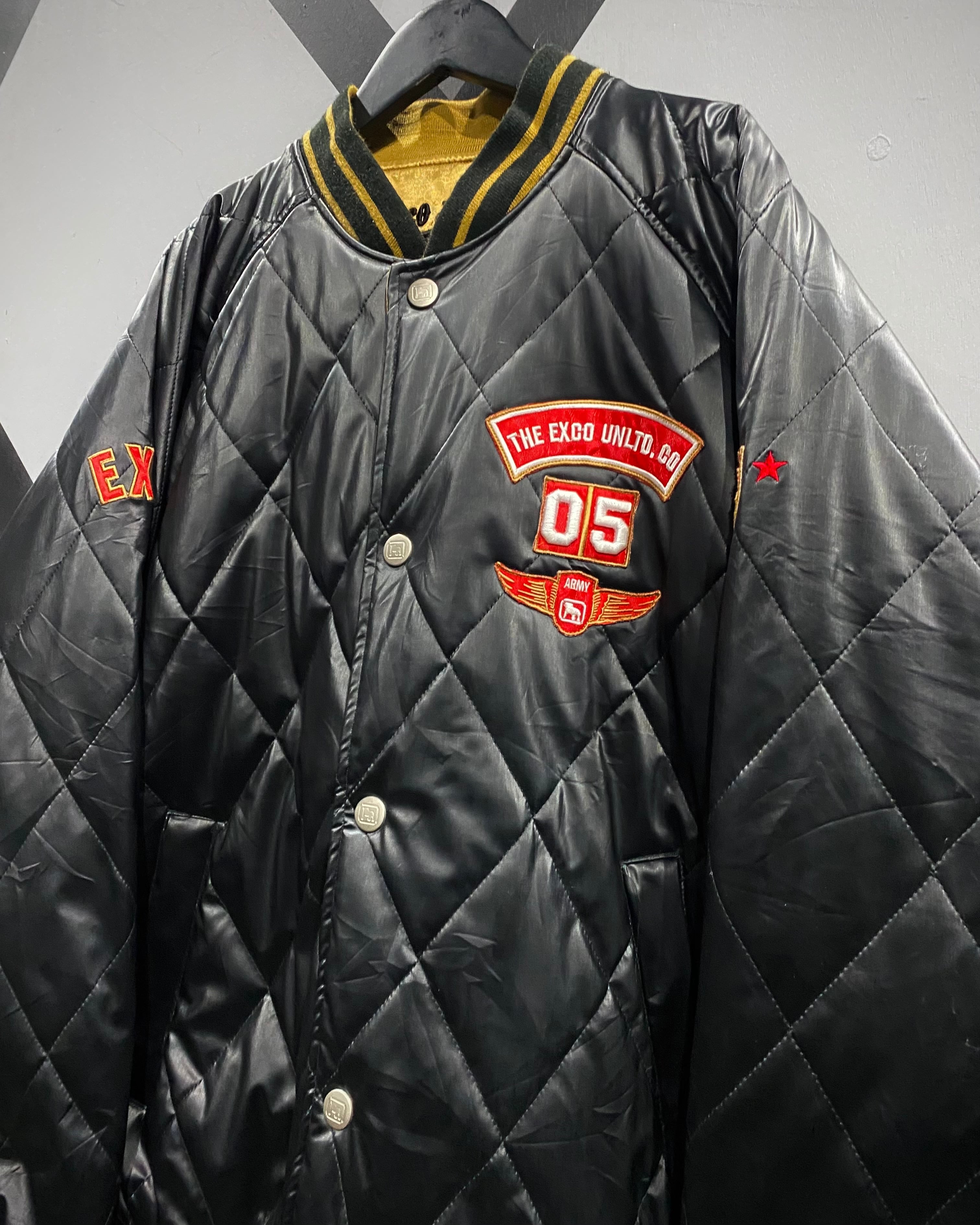 表面は艶をまとったキルティングボディに、ワッペンをオン。裏返せば一気に雰囲気が変わりゴールドのボディへシフト。“EXCO JEANS 1997”の刺繍ロゴが入り、どちらを表にしても存在感がまったく落ちない二面性が◎