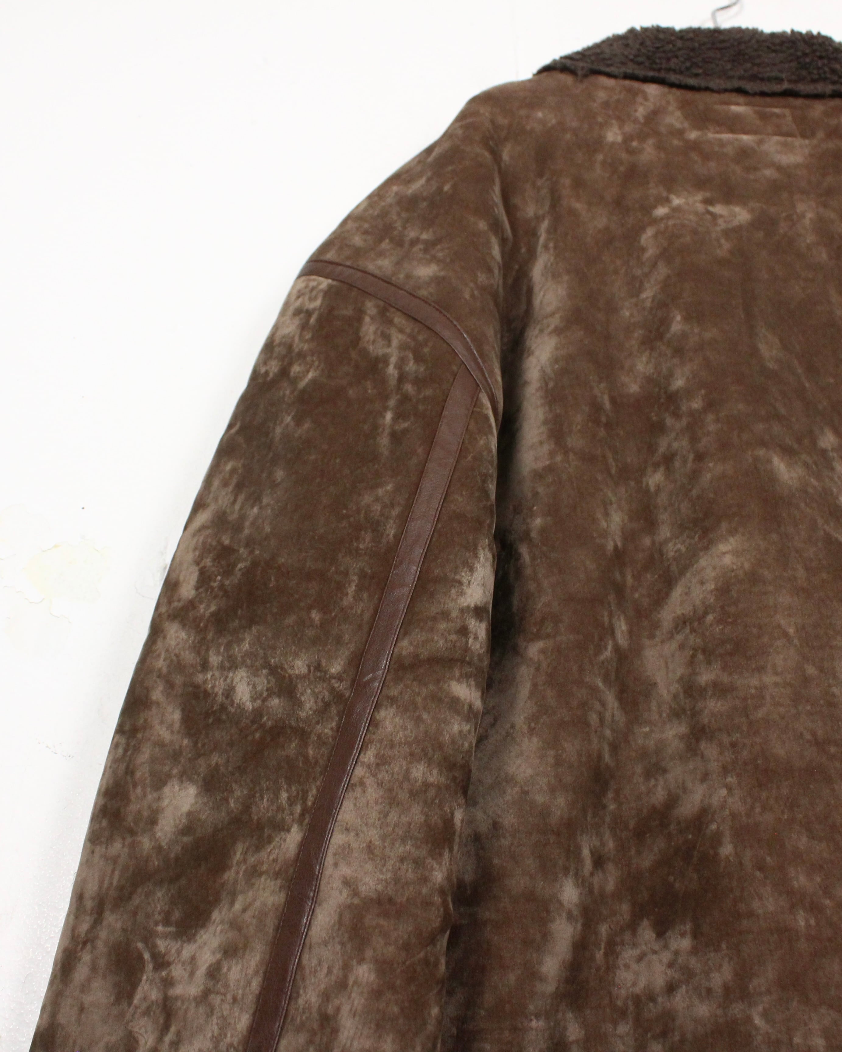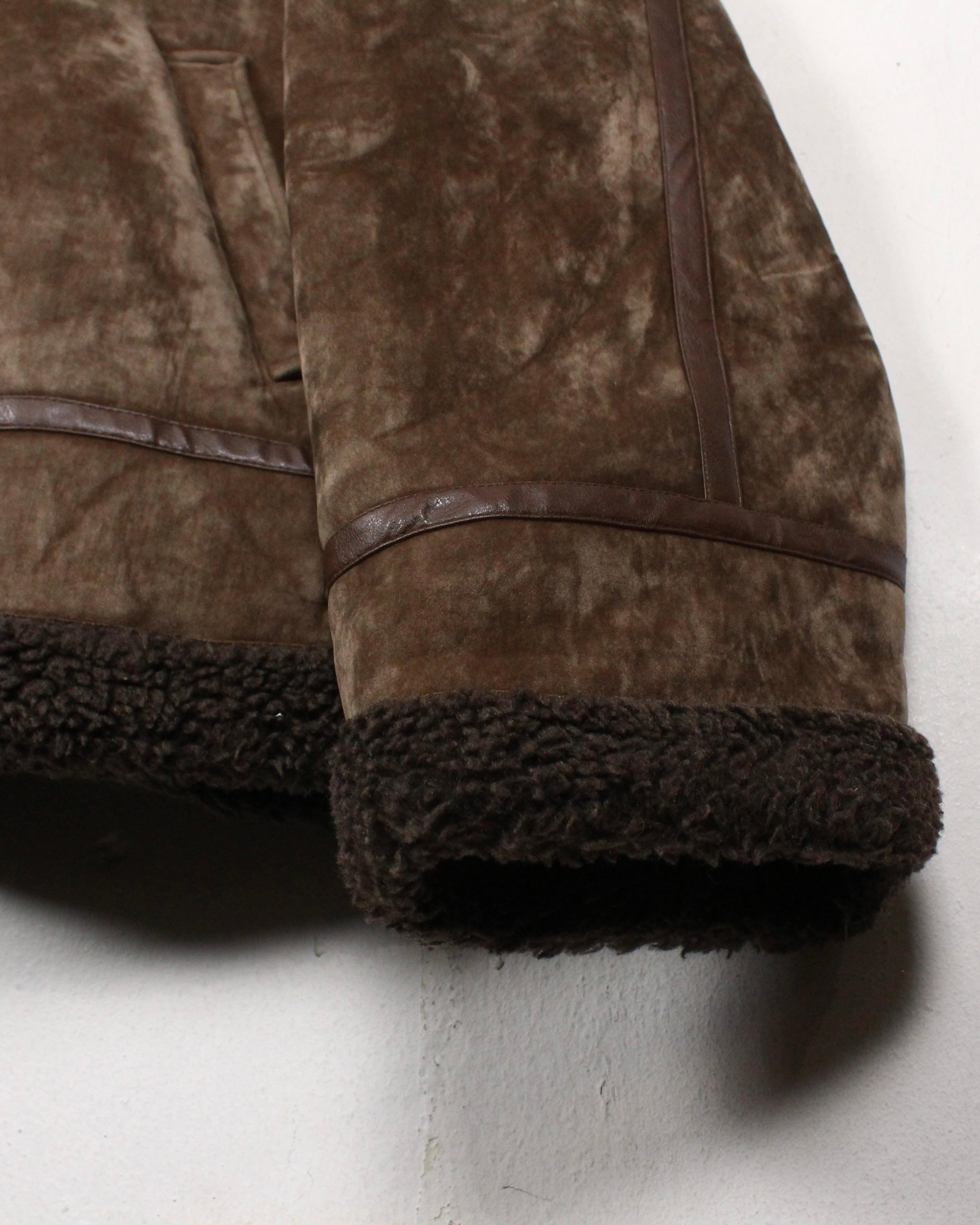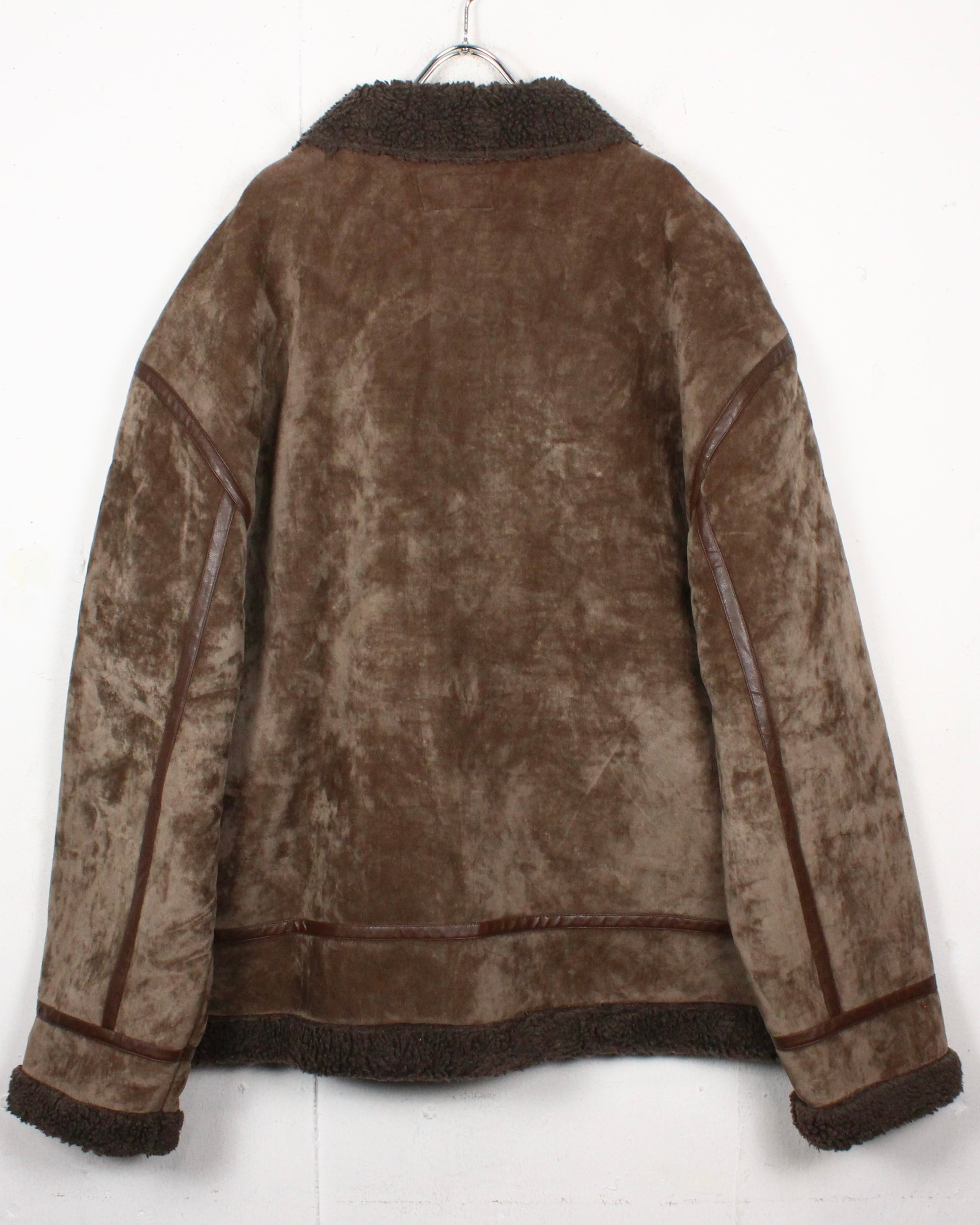 特有の鈍い光沢を帯びた、ブラウンカラーのベロア生地をボディに使用し、B-3型に落とし込んだボアジャケット。
