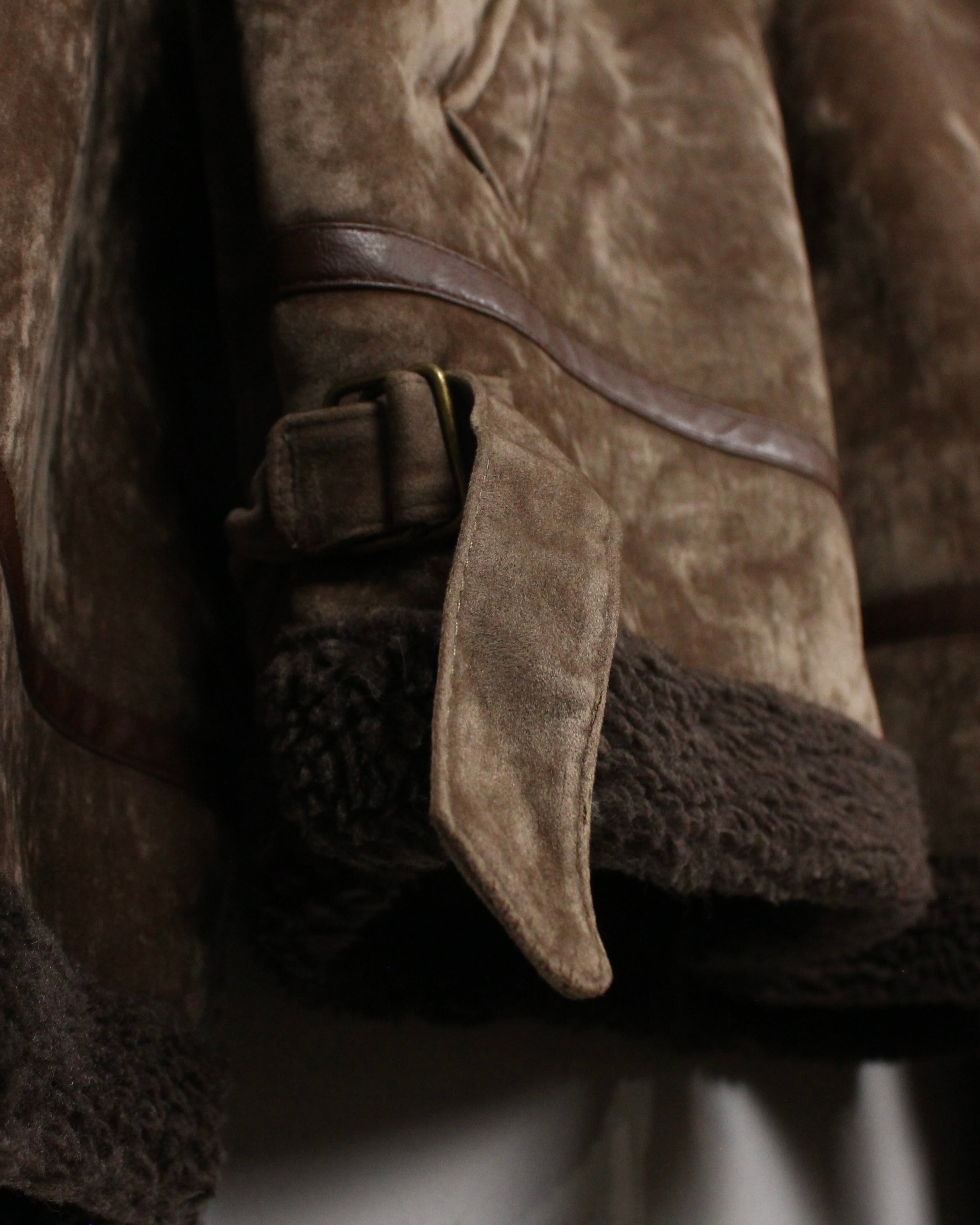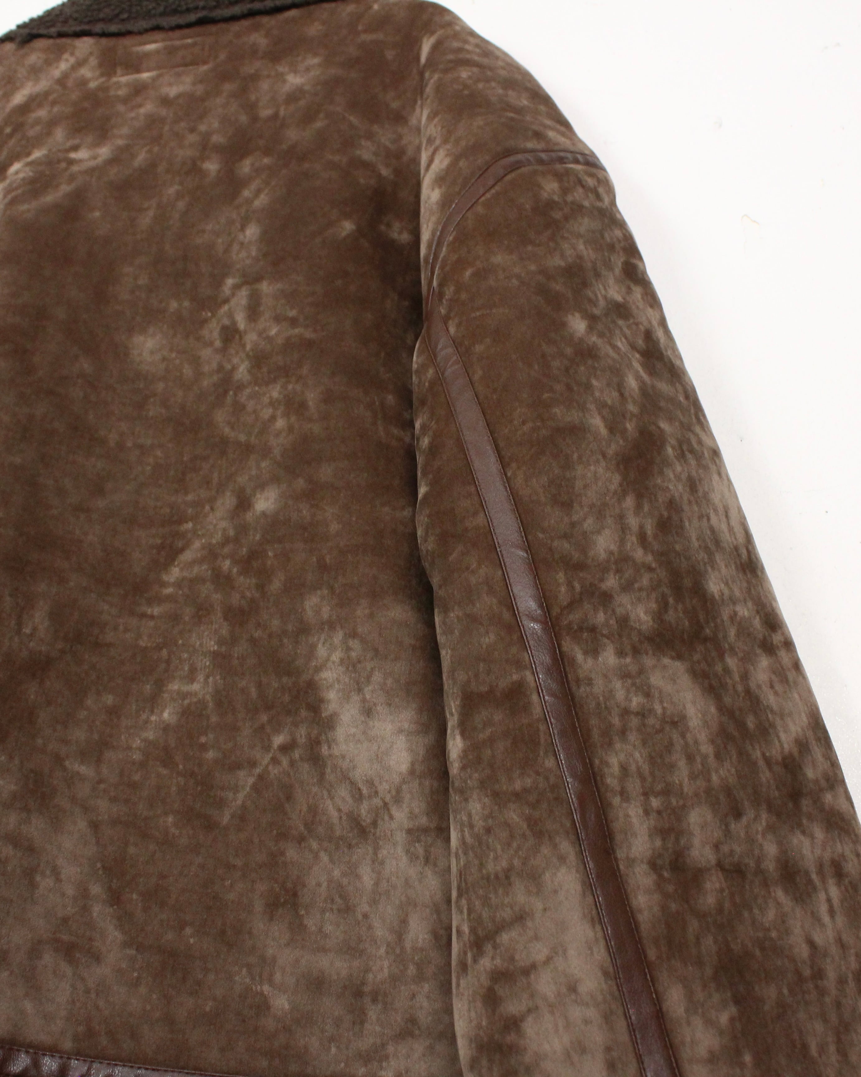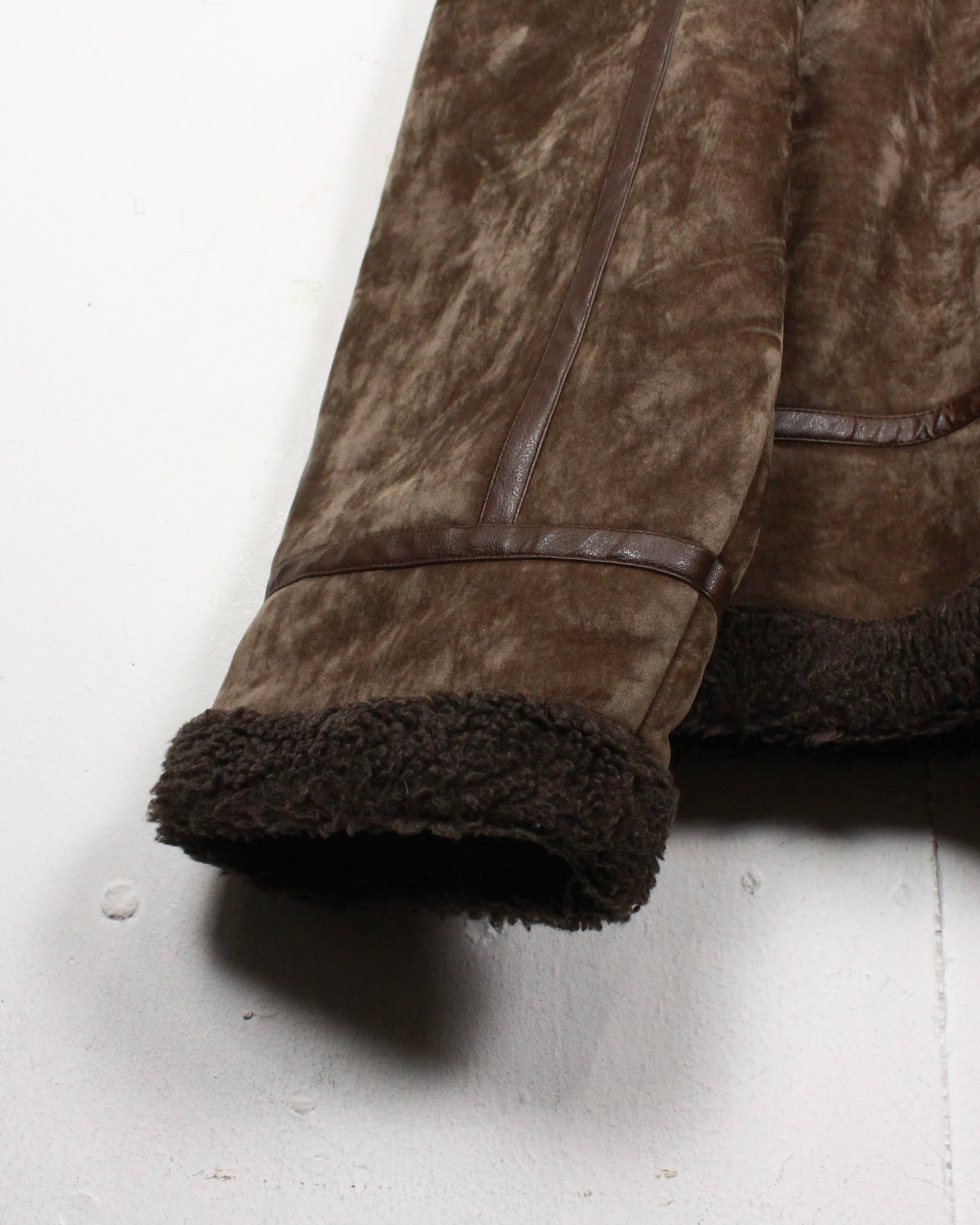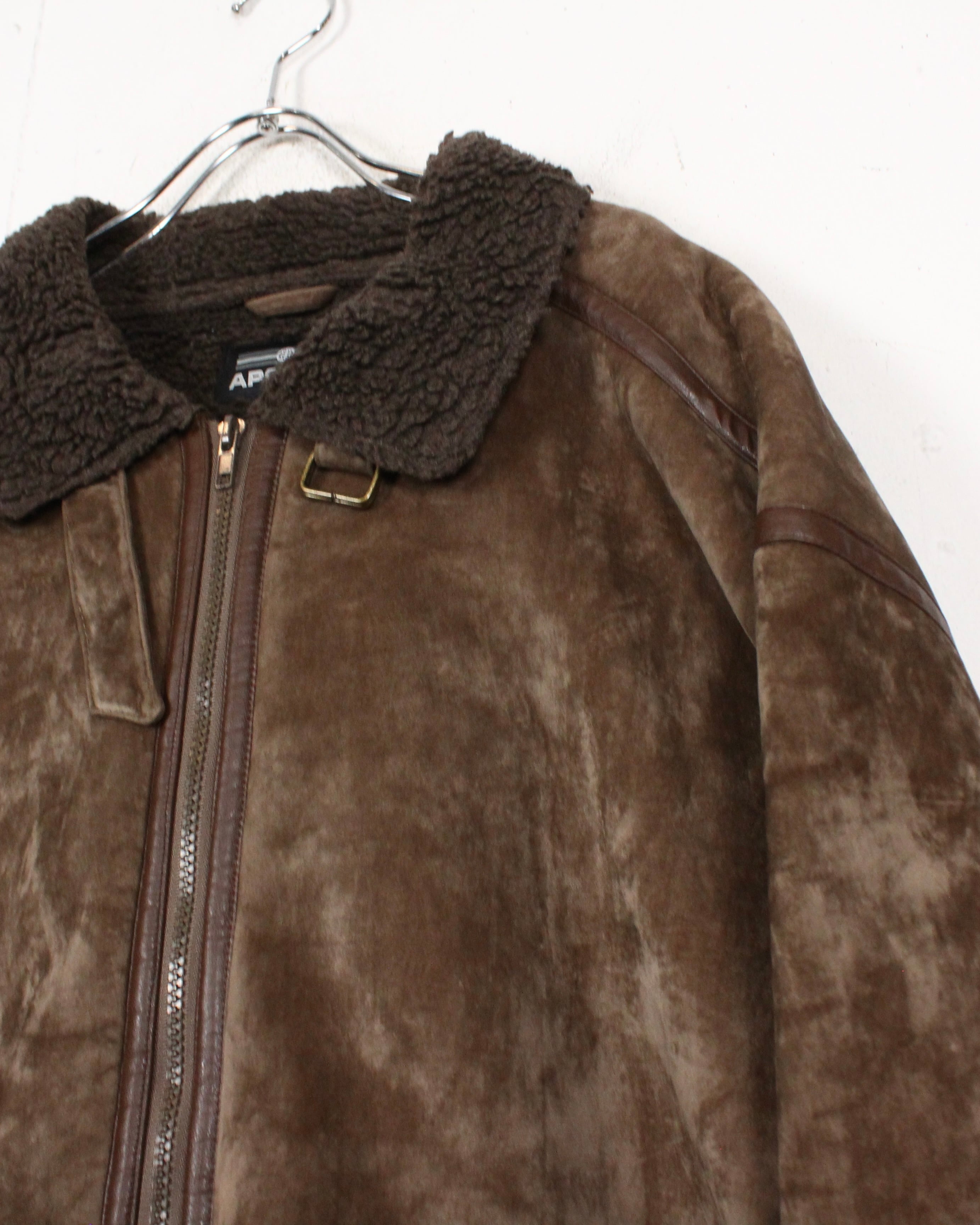 特有の鈍い光沢を帯びた、ブラウンカラーのベロア生地をボディに使用し、B-3型に落とし込んだボアジャケット。