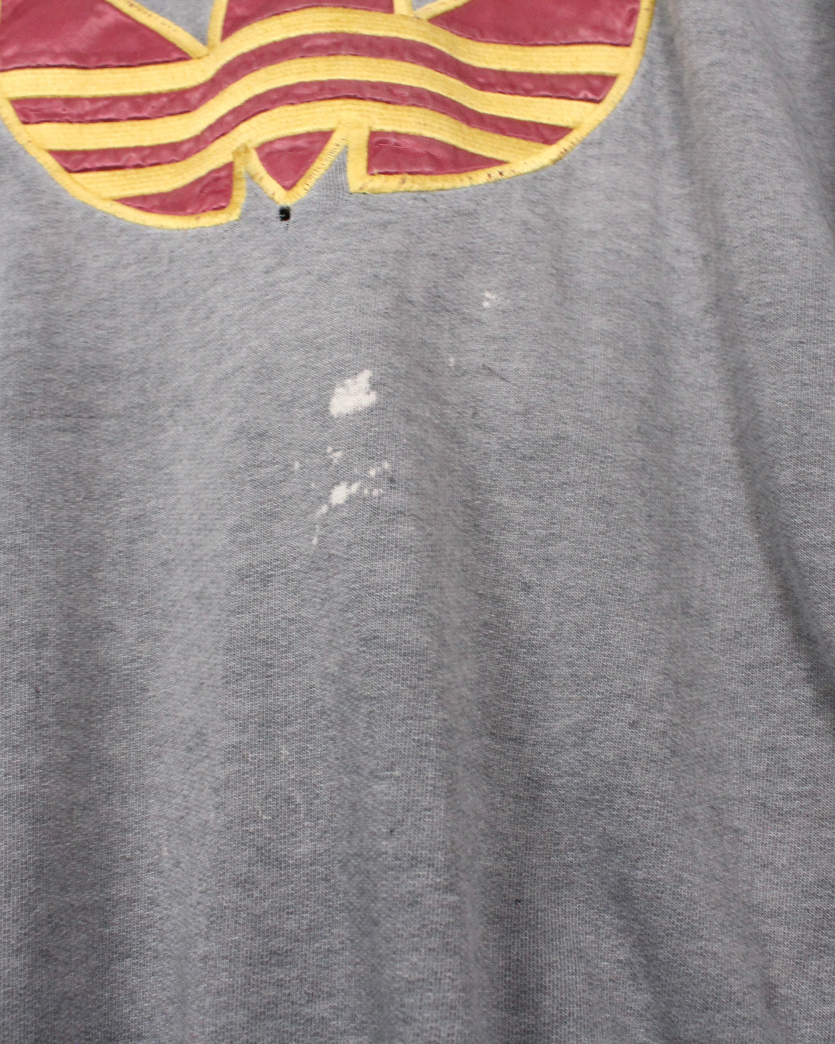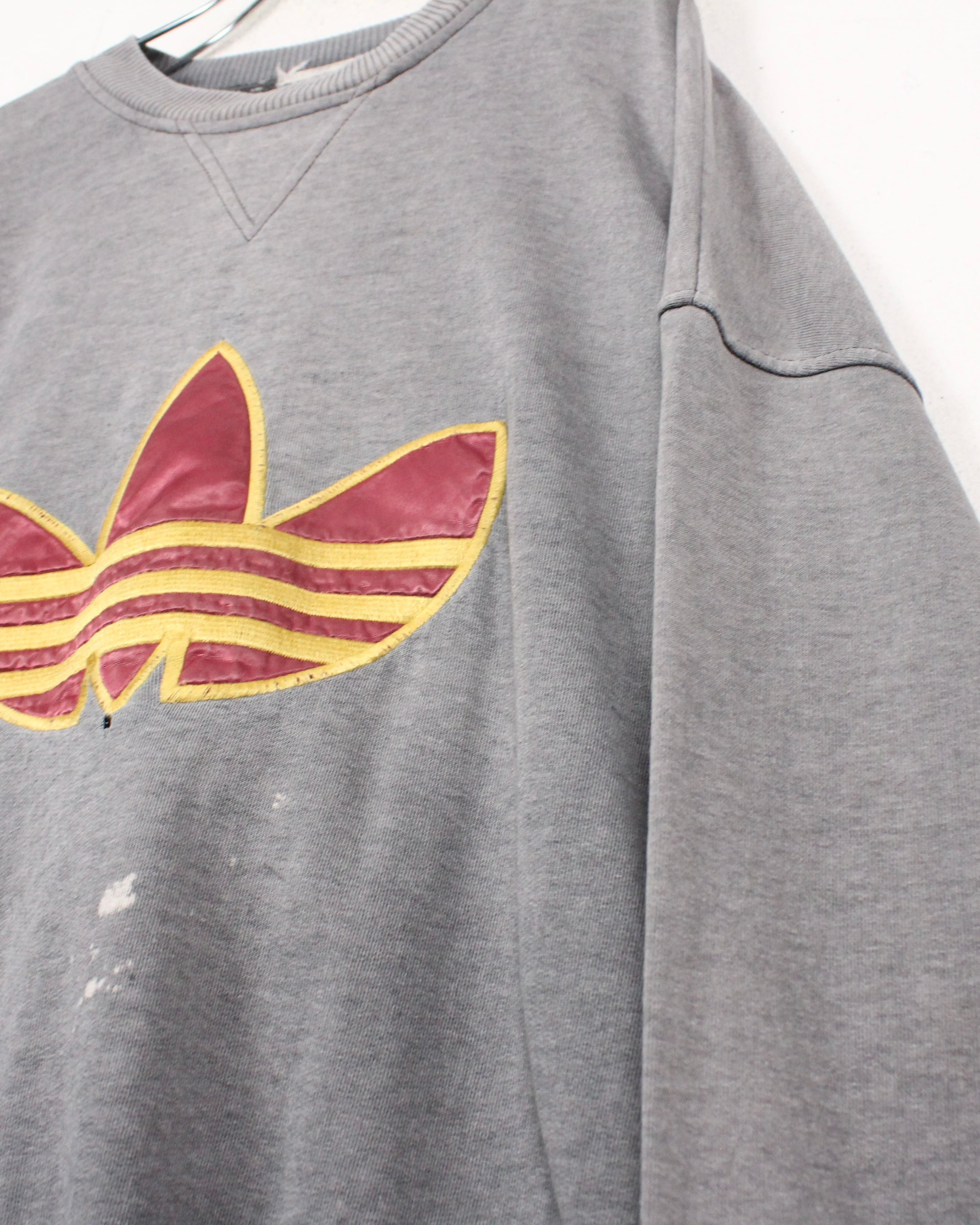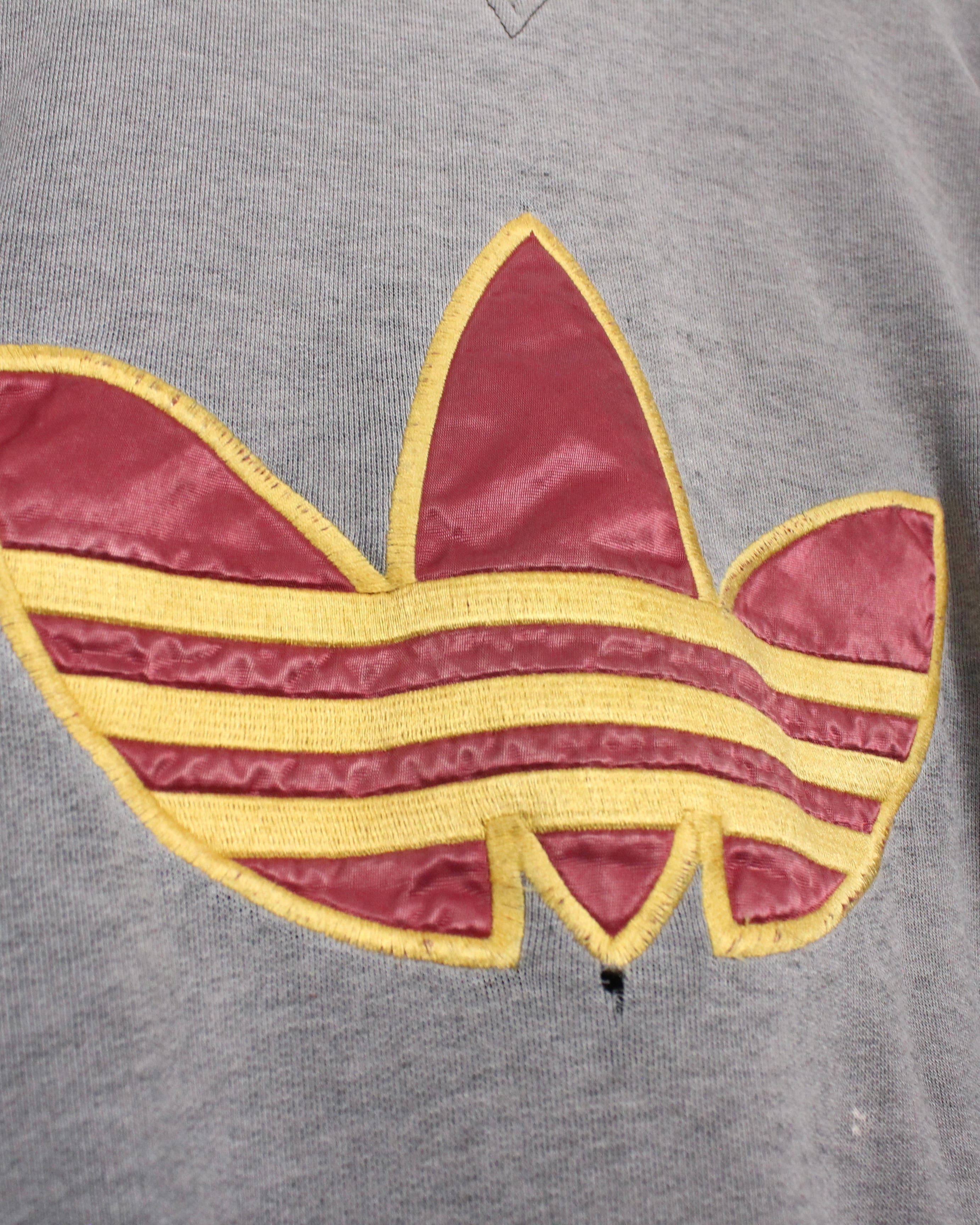 薄手のスウェット生地のボディに、ブランドのアイデンティティ、トレフォイルロゴを刺繍と生地の切り替えででで載せた、80's adidasの逸品。