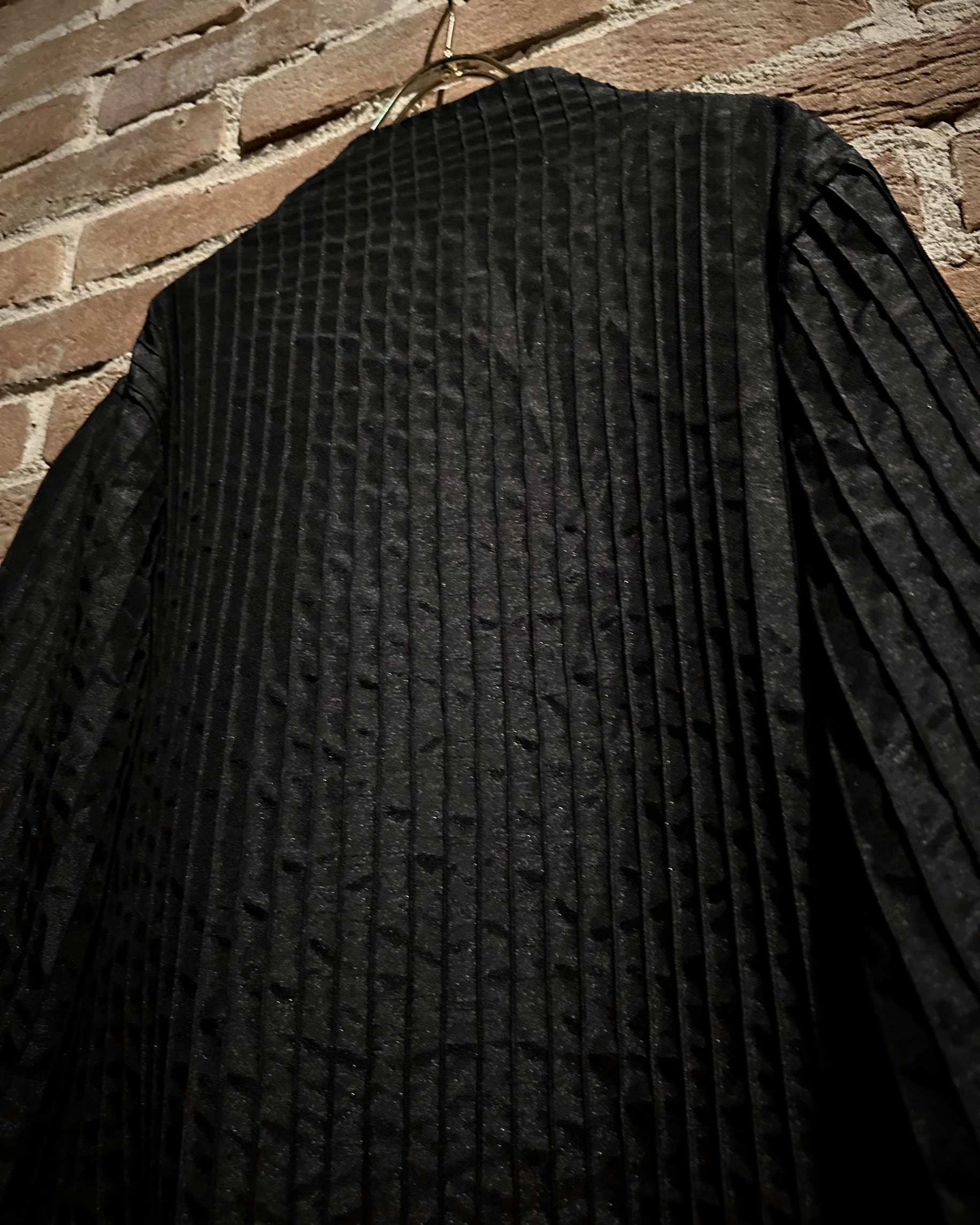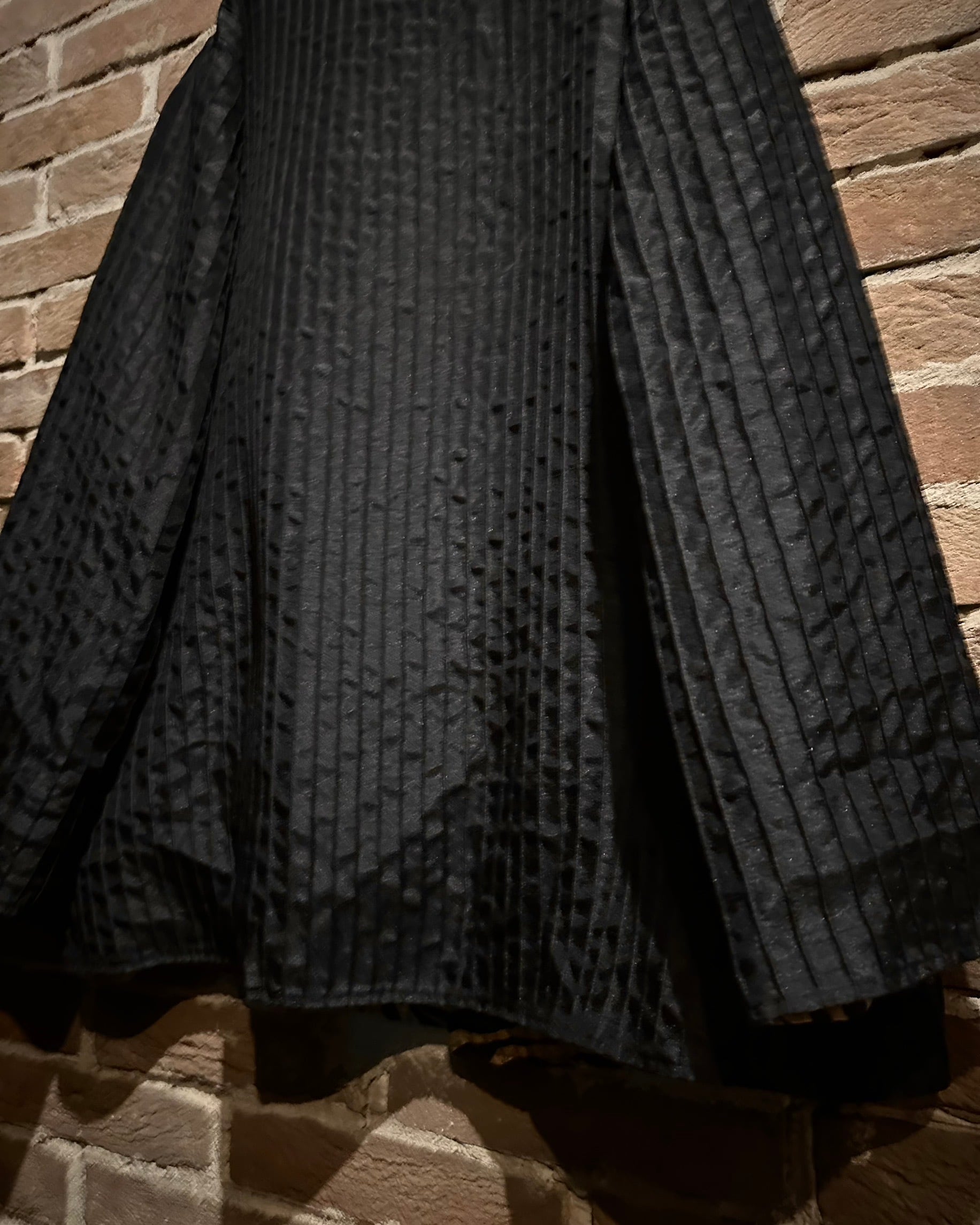 そして裏返せば、まったく異なる表情を見せる黒の無地へ。細かな畝が入った生地が立体的な表情と美しいドレープを描いてくれます。
