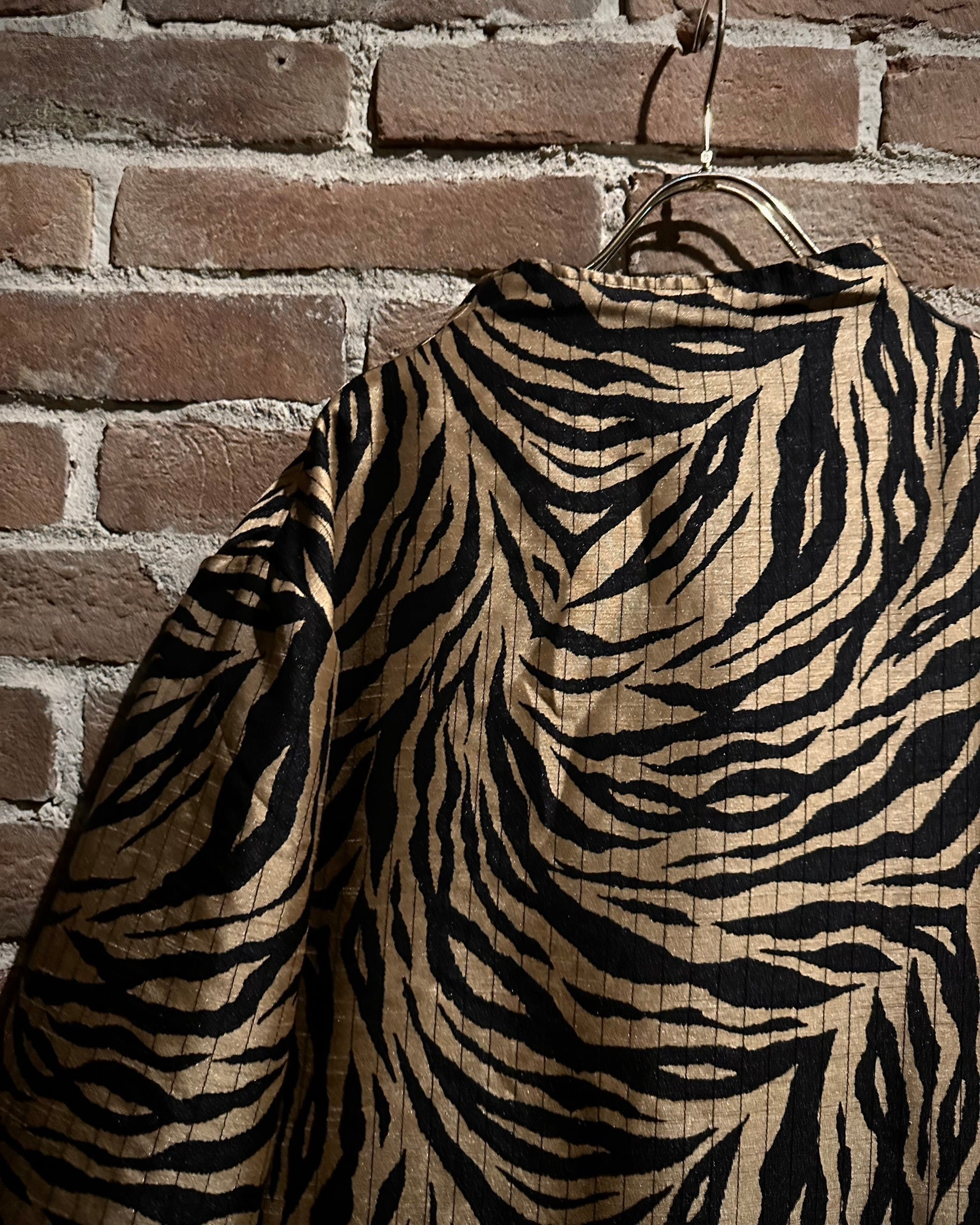 力強いタイガーパターンを全面にあしらった、存在感抜群のリバーシブルジャケット。