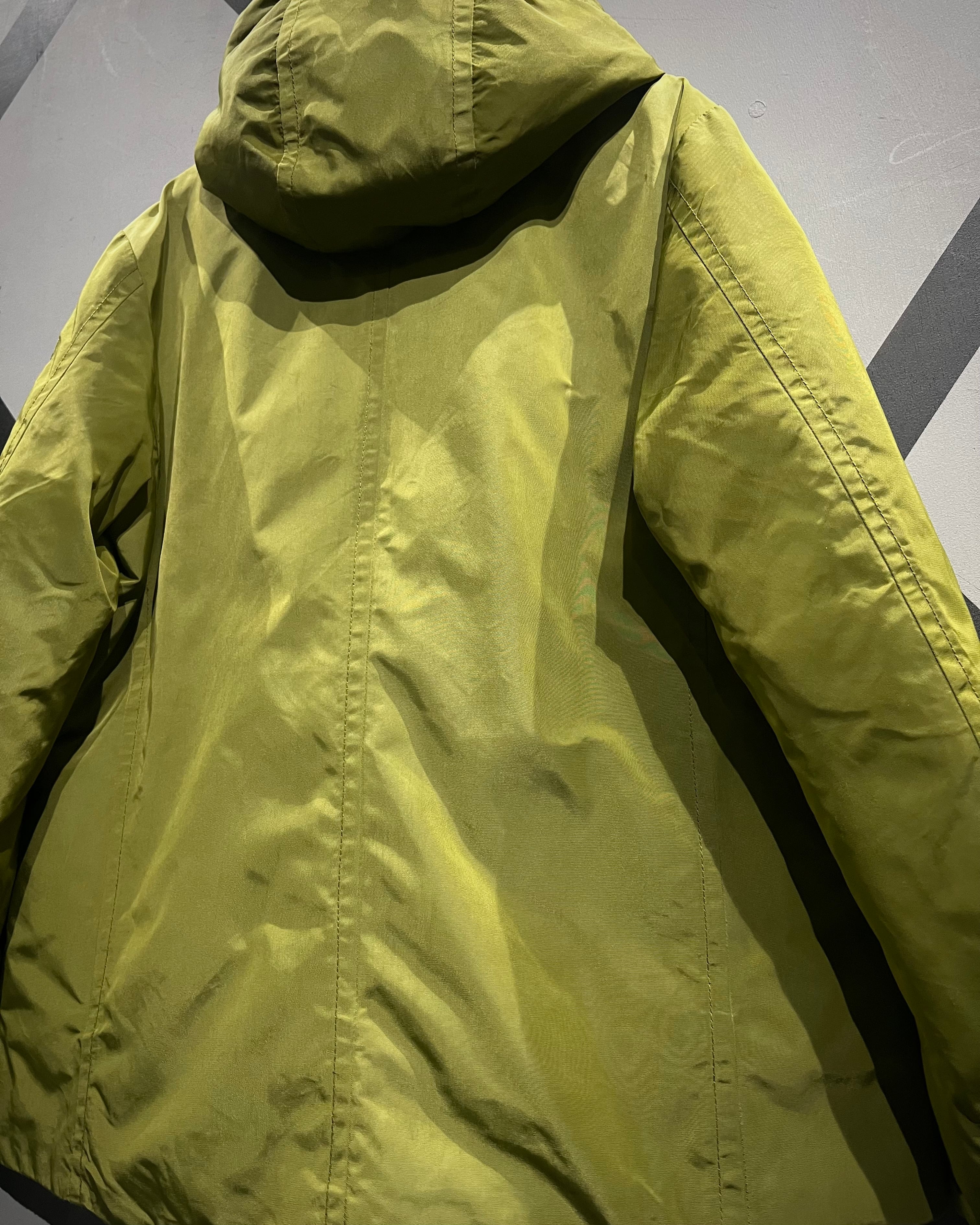 少し丸みを持たせたフードがシルエットを柔らかく整え、ボディはゆるく着られるルーズなサイジング。ナイロン特有の軽さと、ダウンのしっかりとした保温性を両立していて、冬のメインアウターとして十分なスペックを備えています。