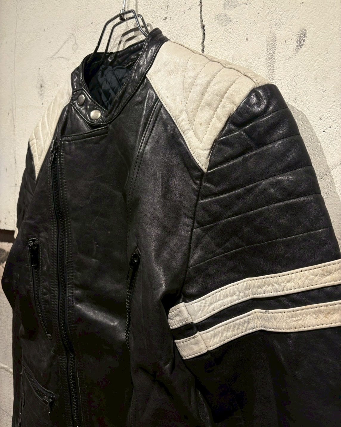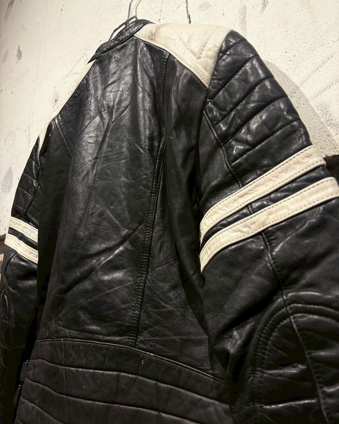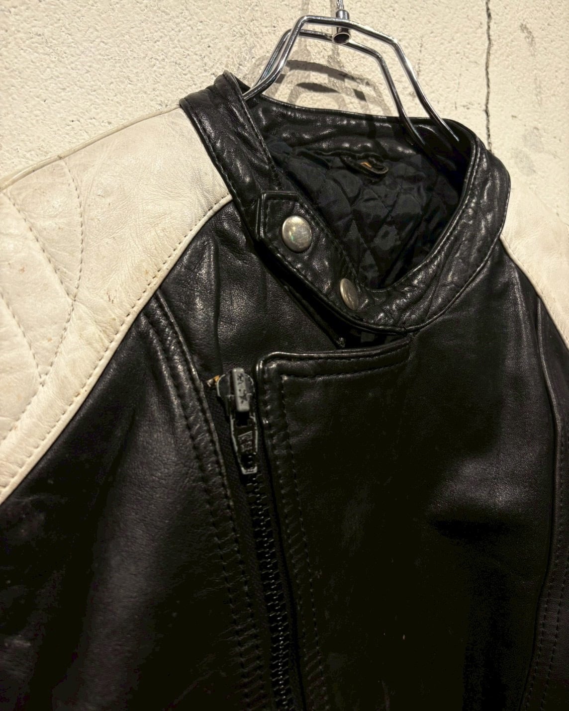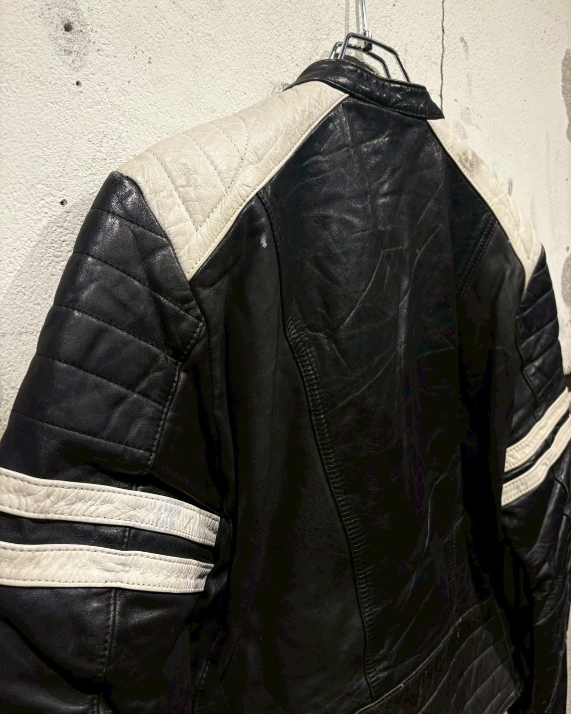ブラックレザーをベースに、ショルダーとアームに走るホワイトの切り替えがアクセントとして効いています。