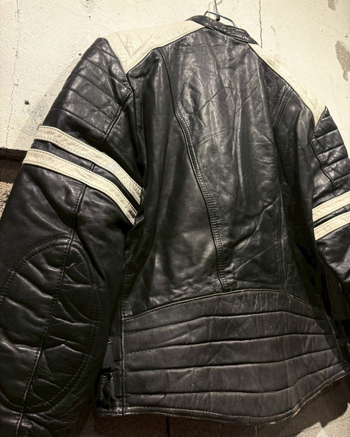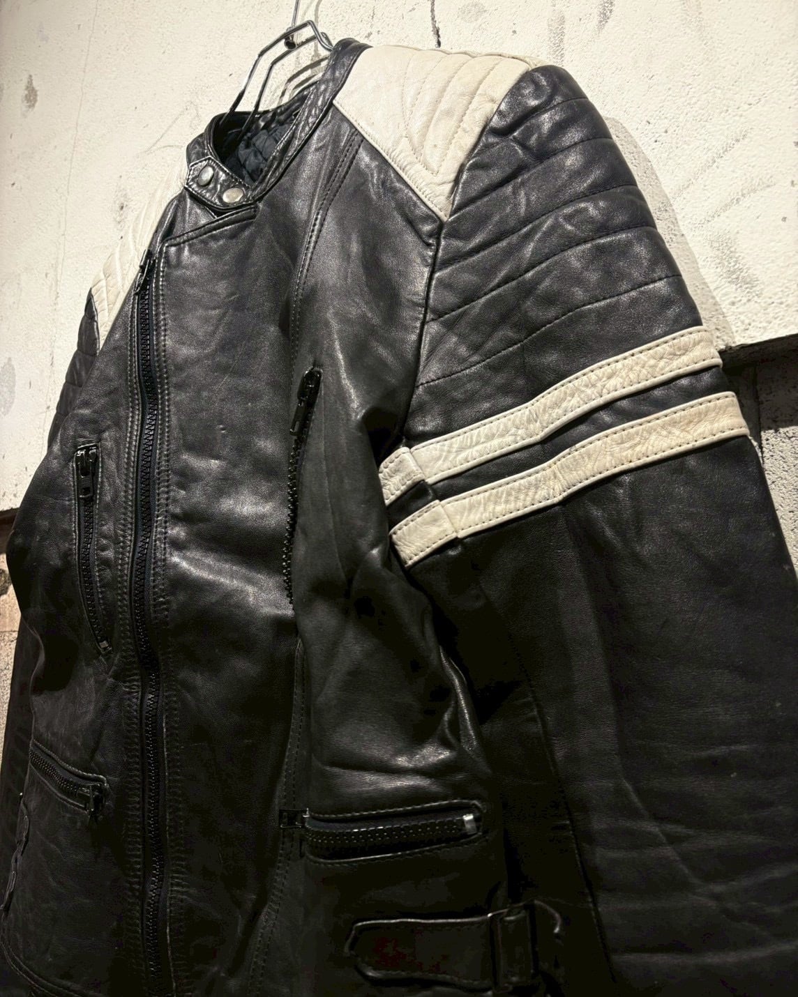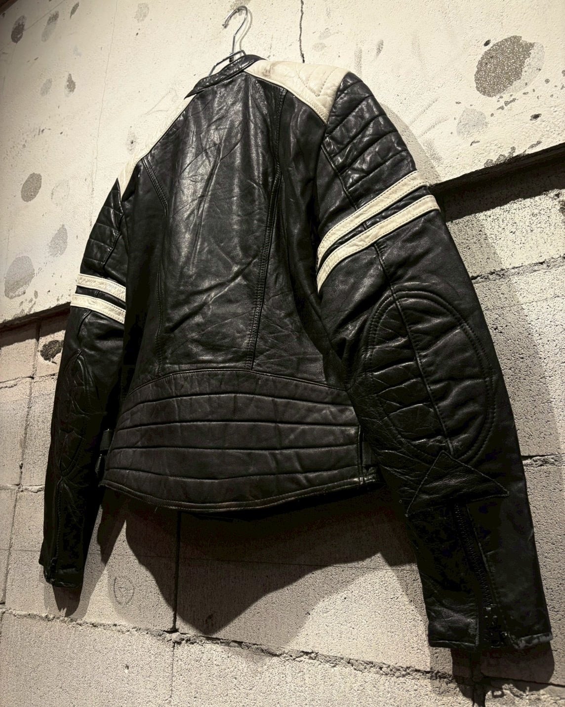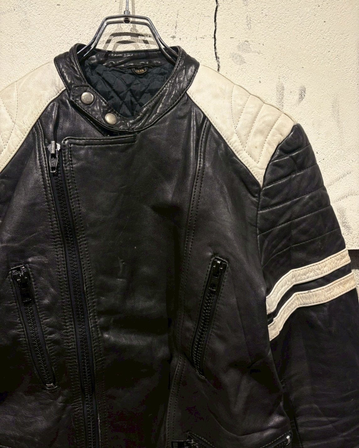 ブラックレザーをベースに、ショルダーとアームに走るホワイトの切り替えがアクセントとして効いています。