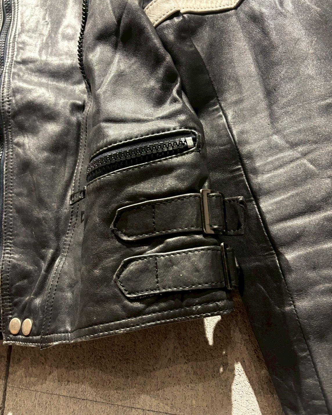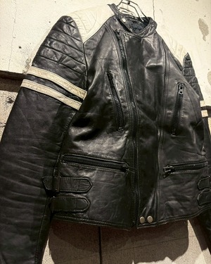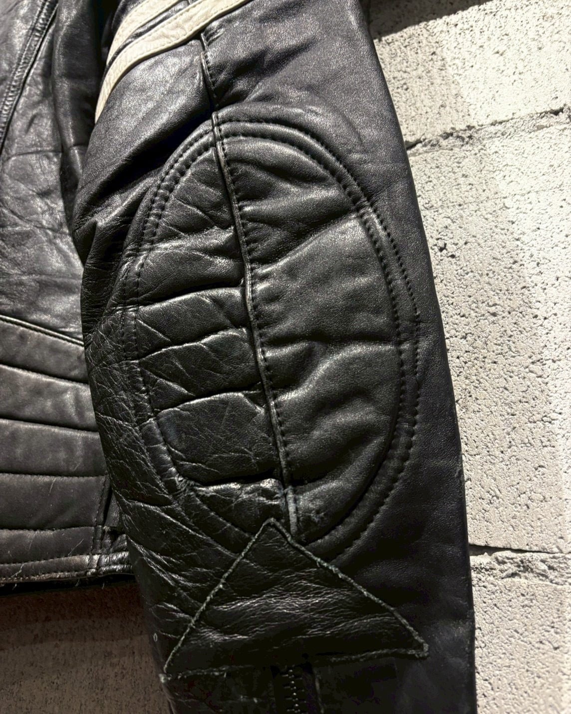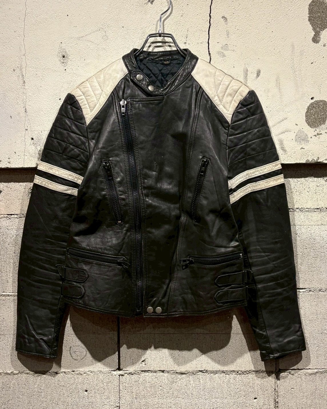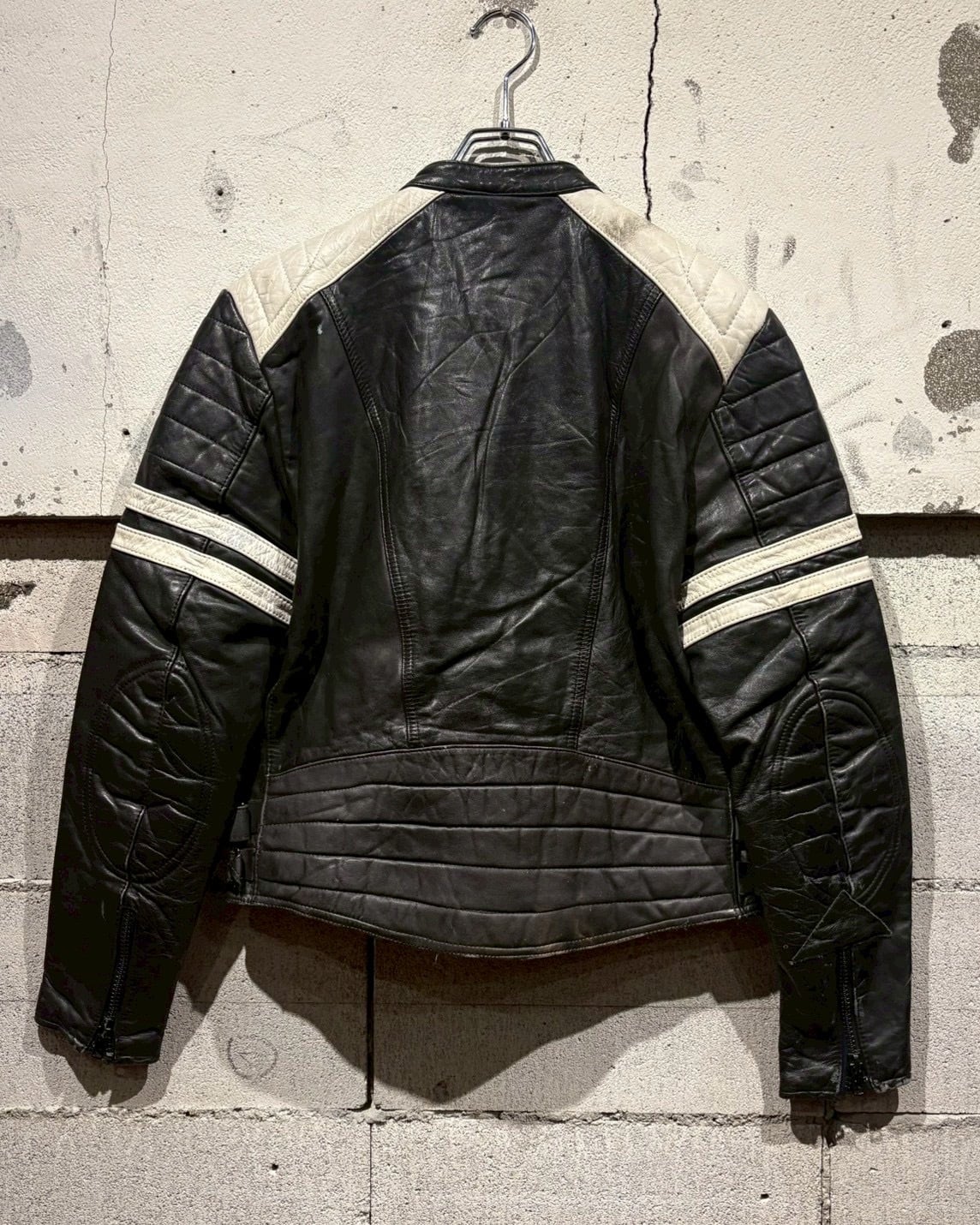 ブラックレザーをベースに、ショルダーとアームに走るホワイトの切り替えがアクセントとして効いています。