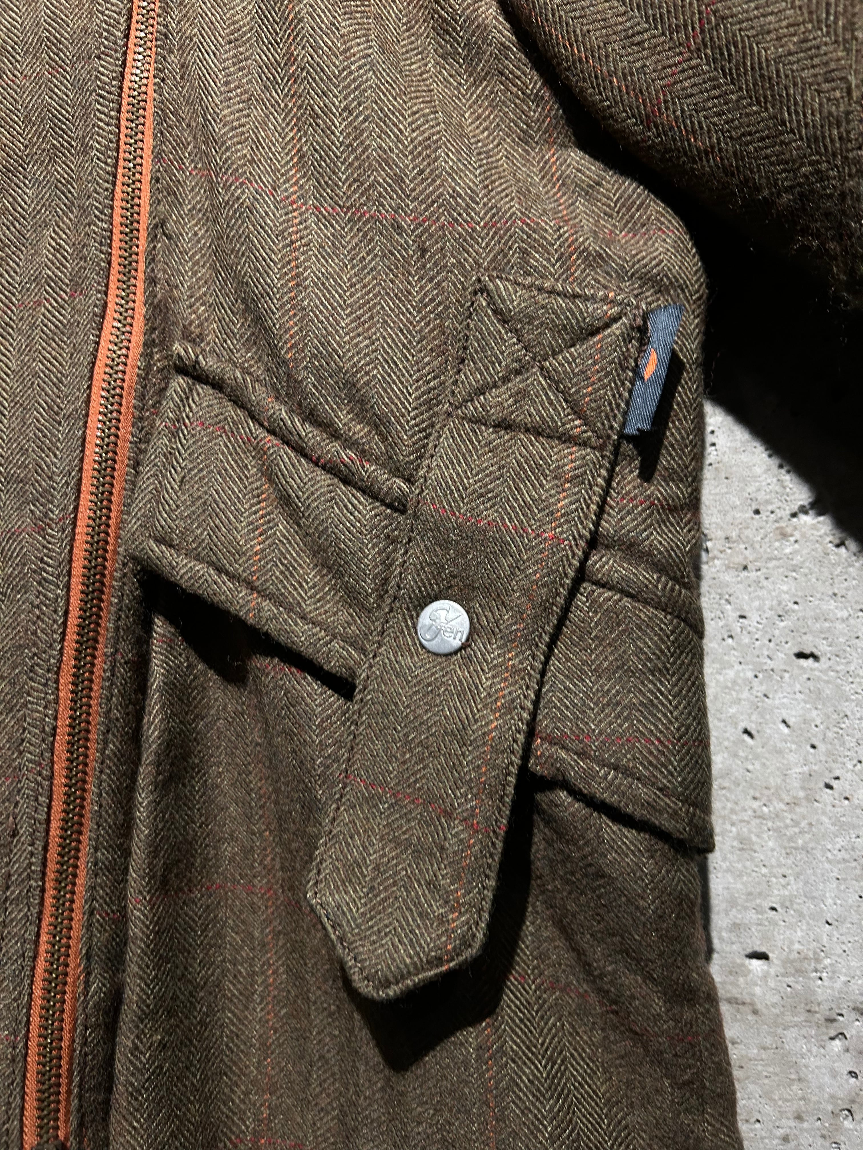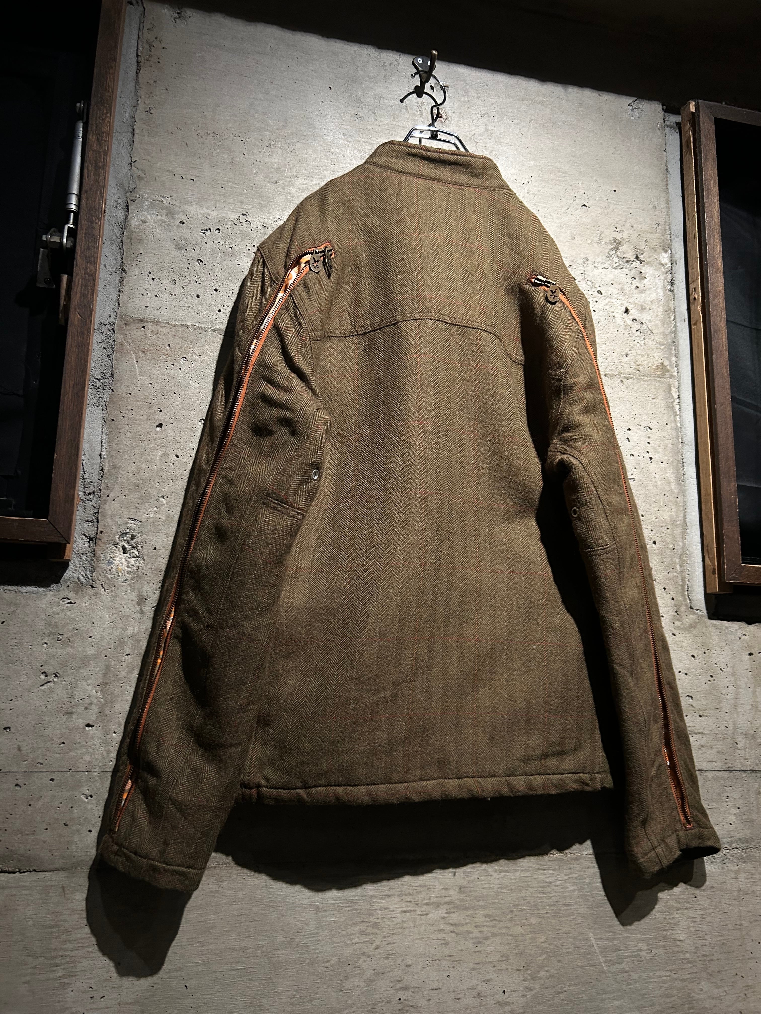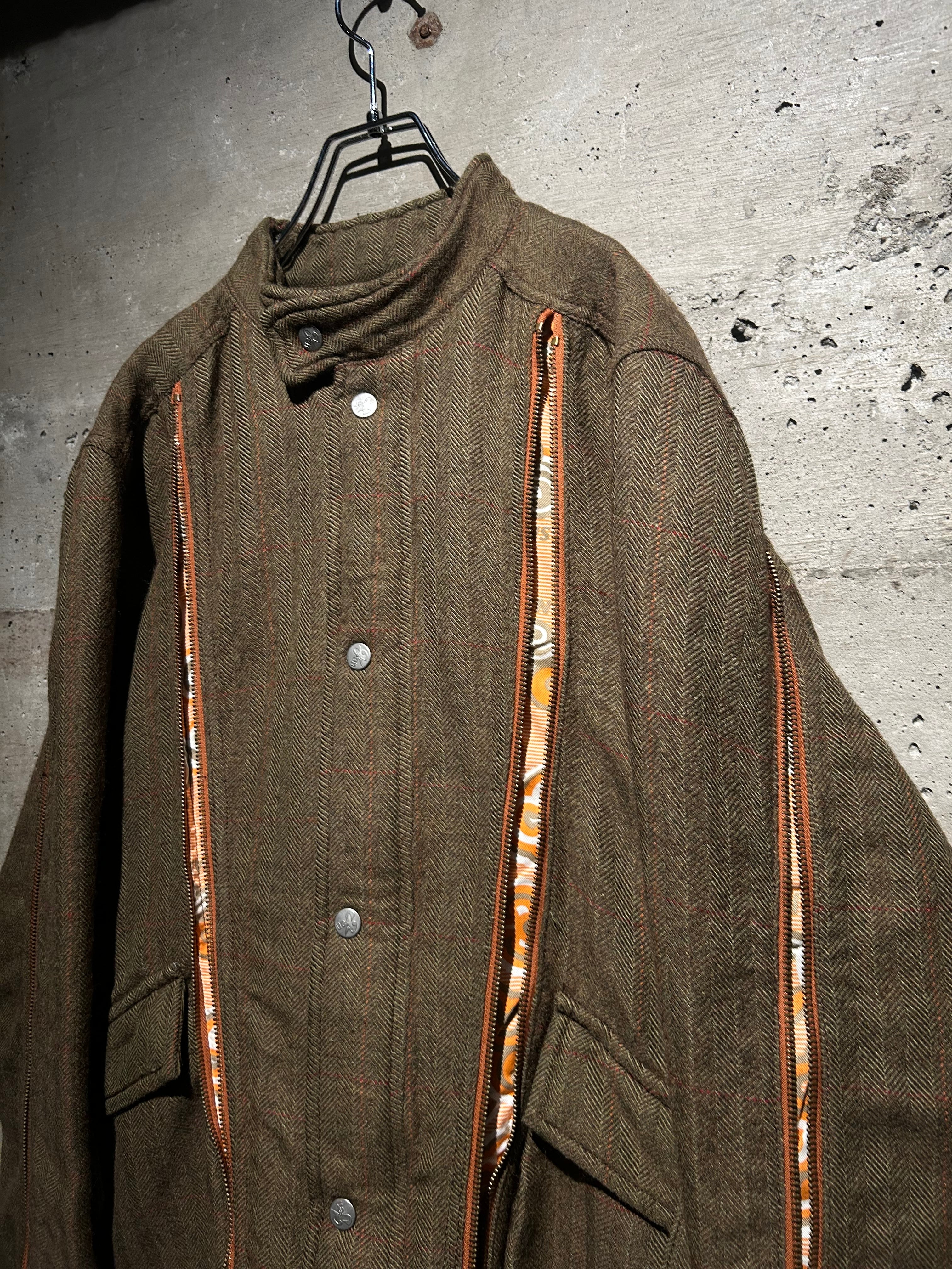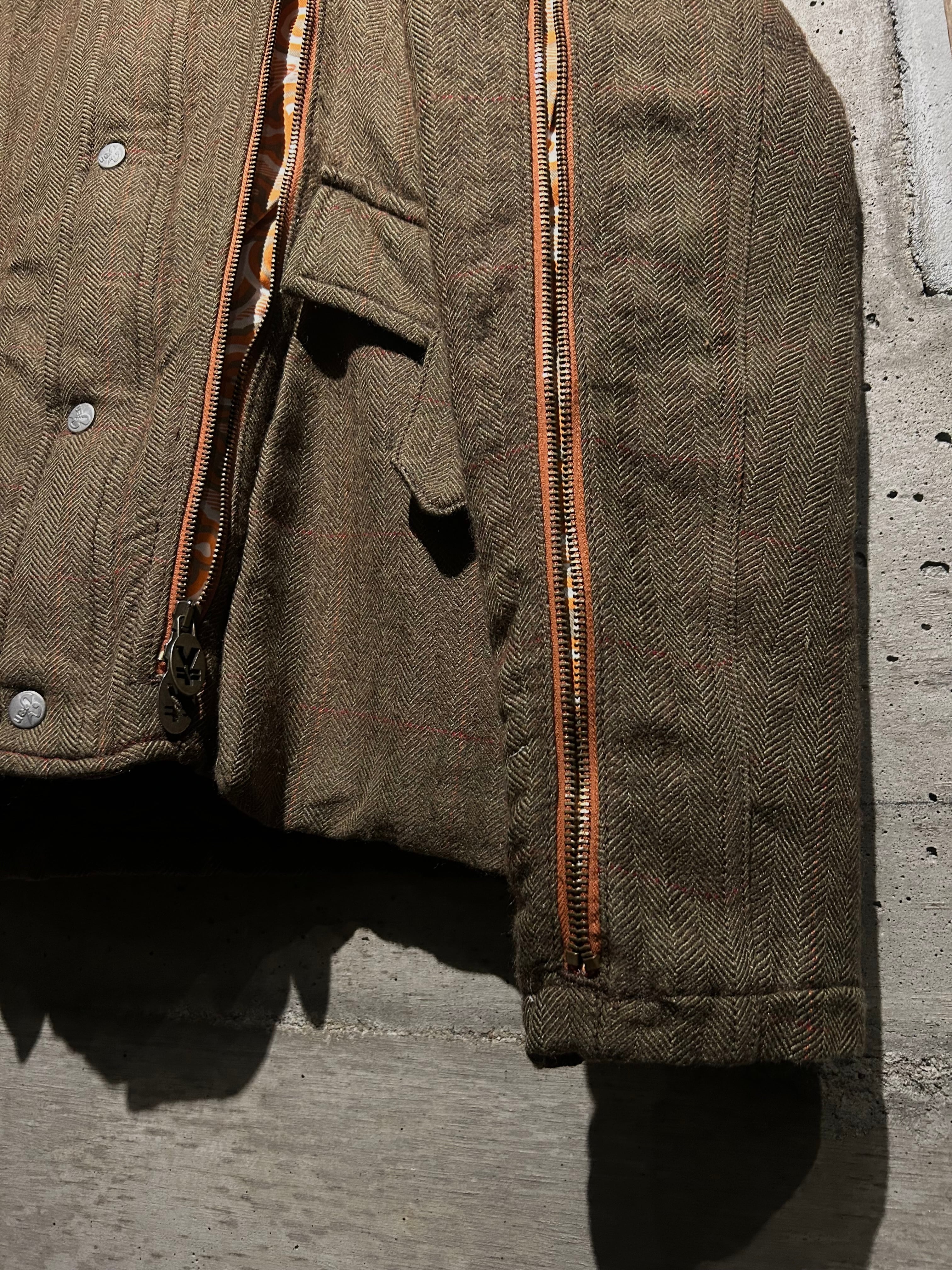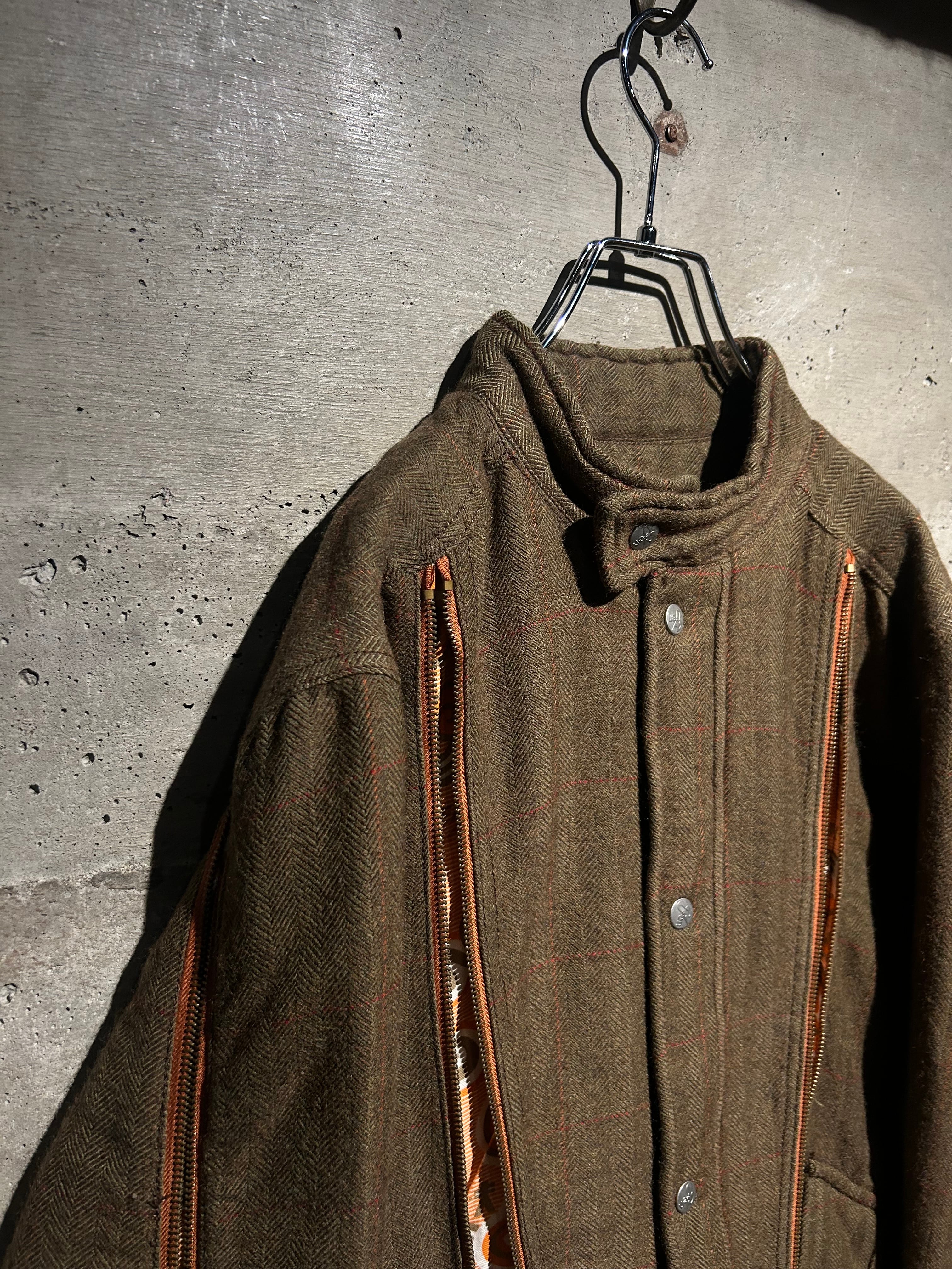 目の詰まったヘリンボーン生地をボディに使用し、フロントやスリーブに大胆なジップのギミックを効かせた90年代後半〜2000年代前半のアーカイブピース。