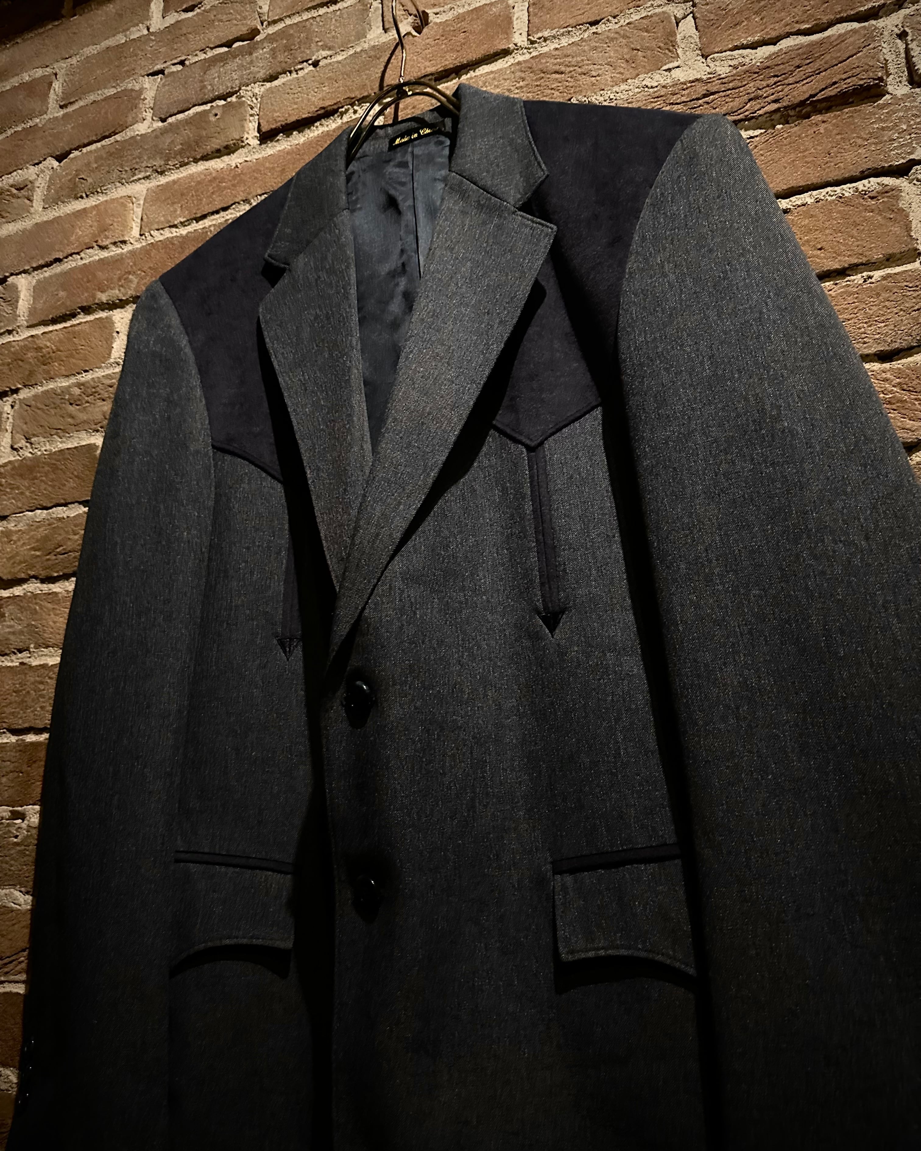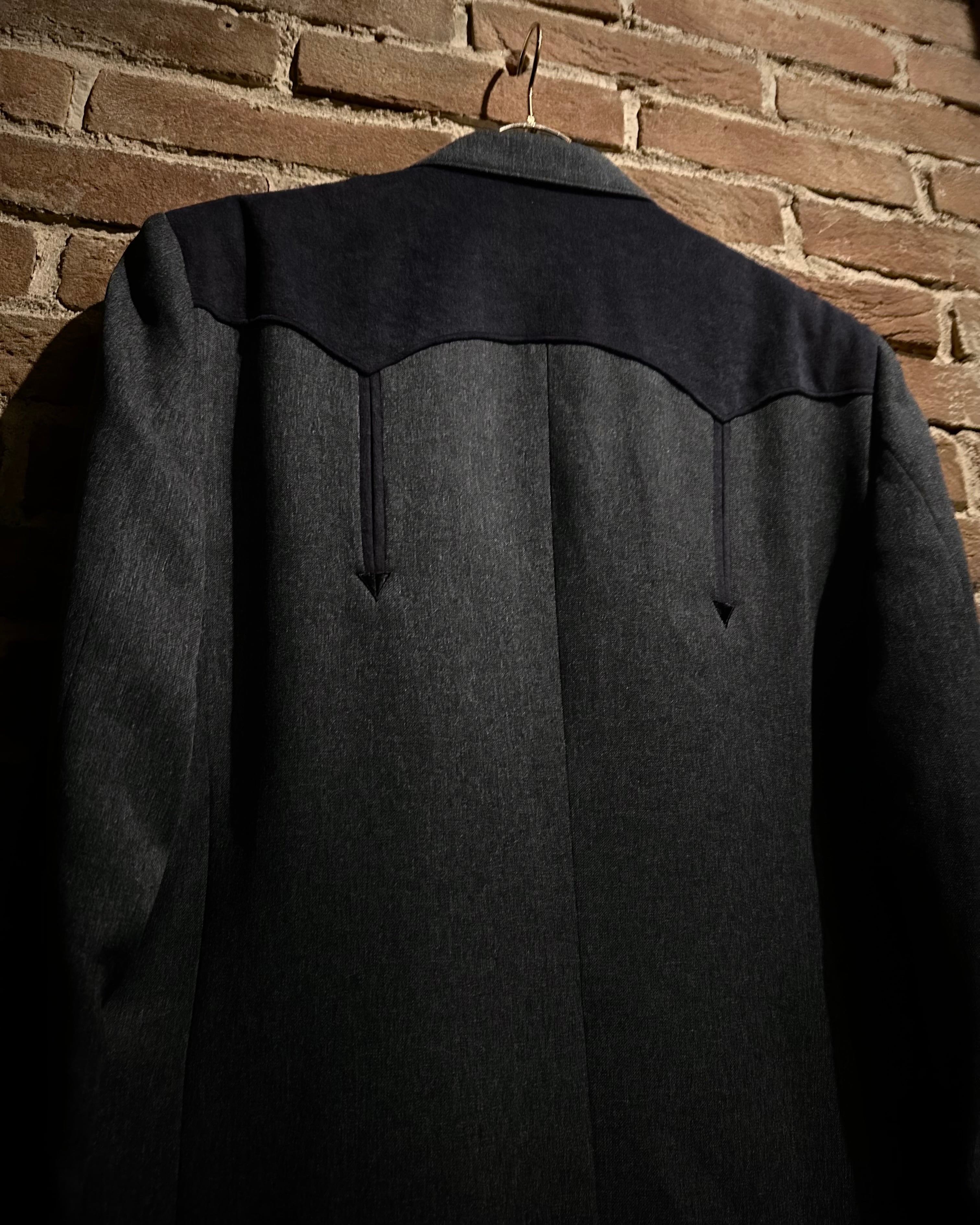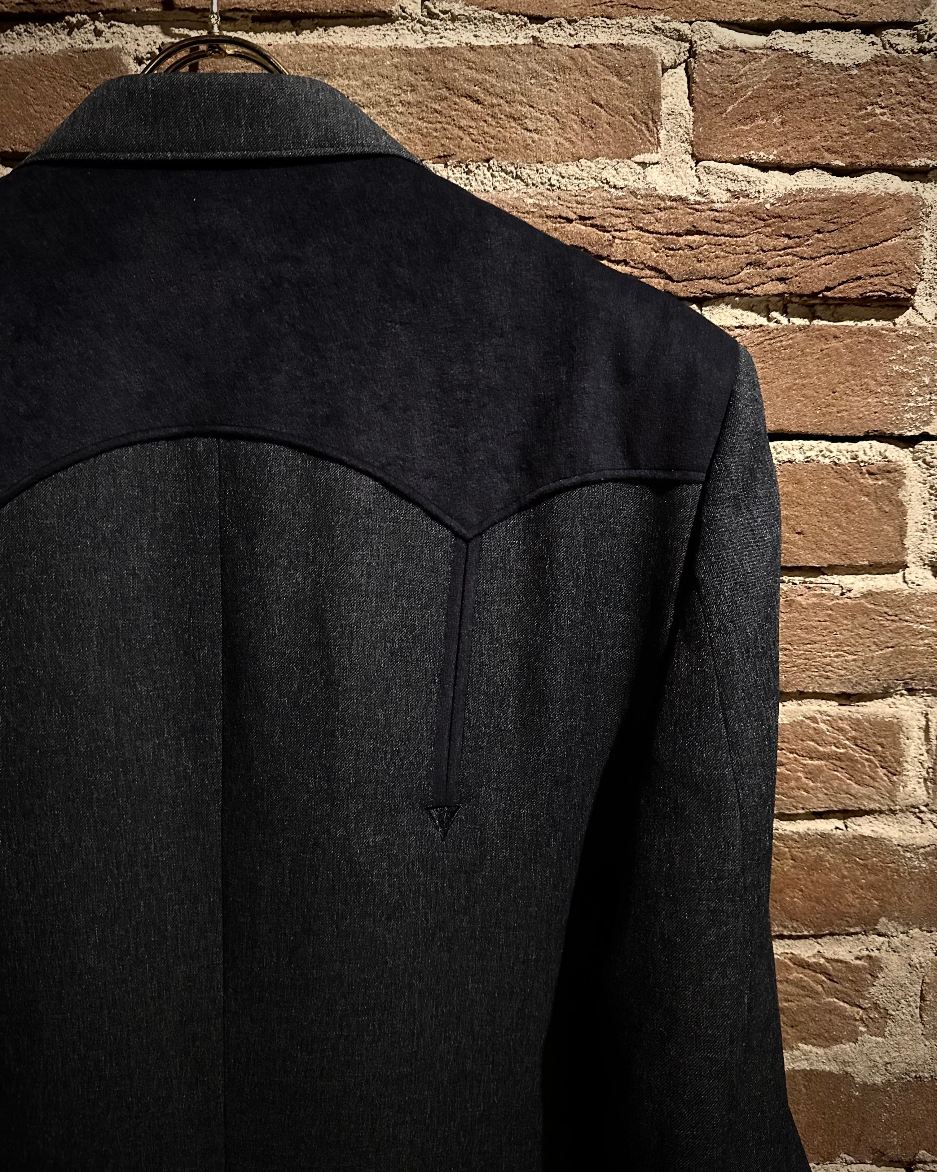 ネイビーボディをベースに、ウエスタンヨークやアーチを描くフラップポケットなど、ウエスタンディテールを贅沢に落とし込んだ気品漂うテーラードジャケット。