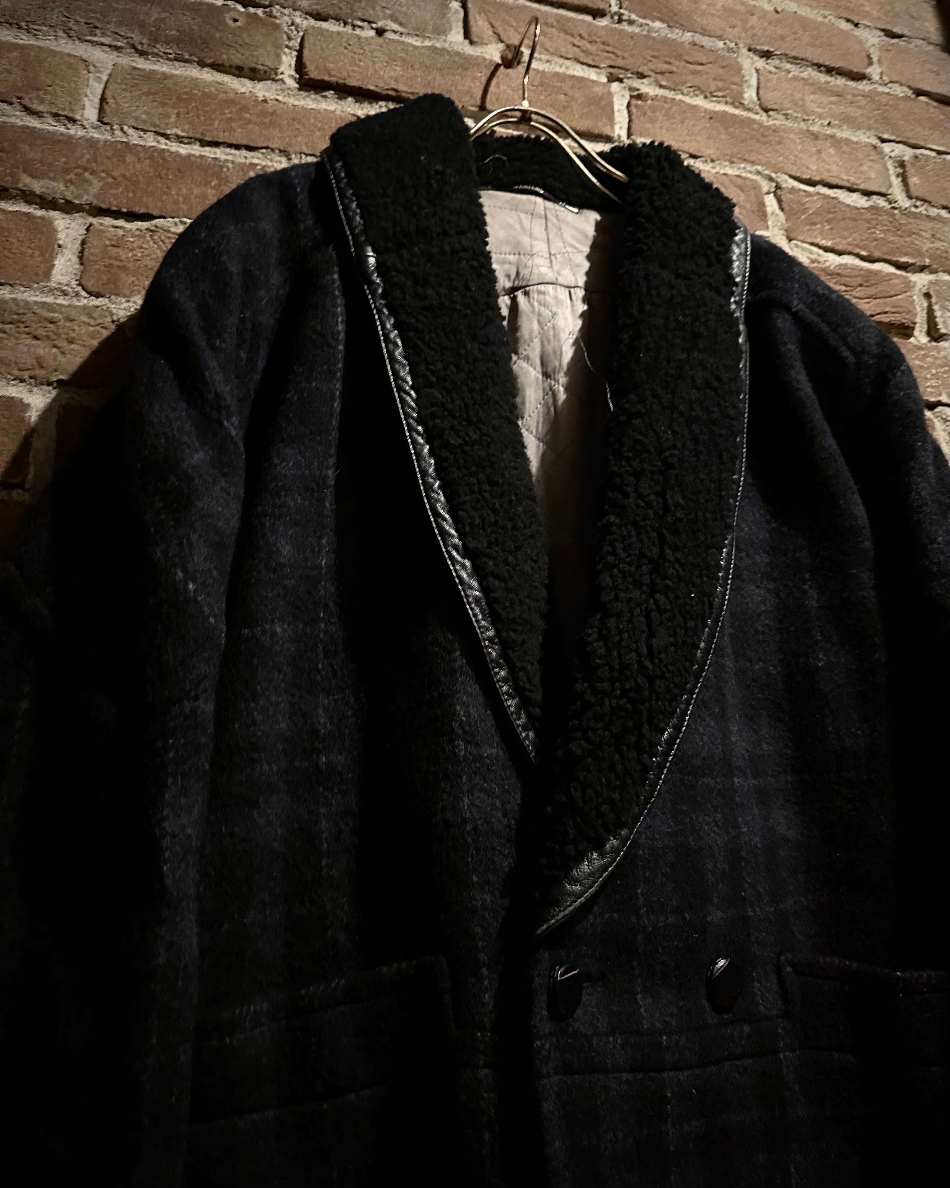 太めのショールカラーには上質なボアを使用し、縁にはレザーをあしらった品のあるデザイン。カジュアルな雰囲気の中に、控えめなラグジュアリーさと存在感を忍ばせた仕上がりです。