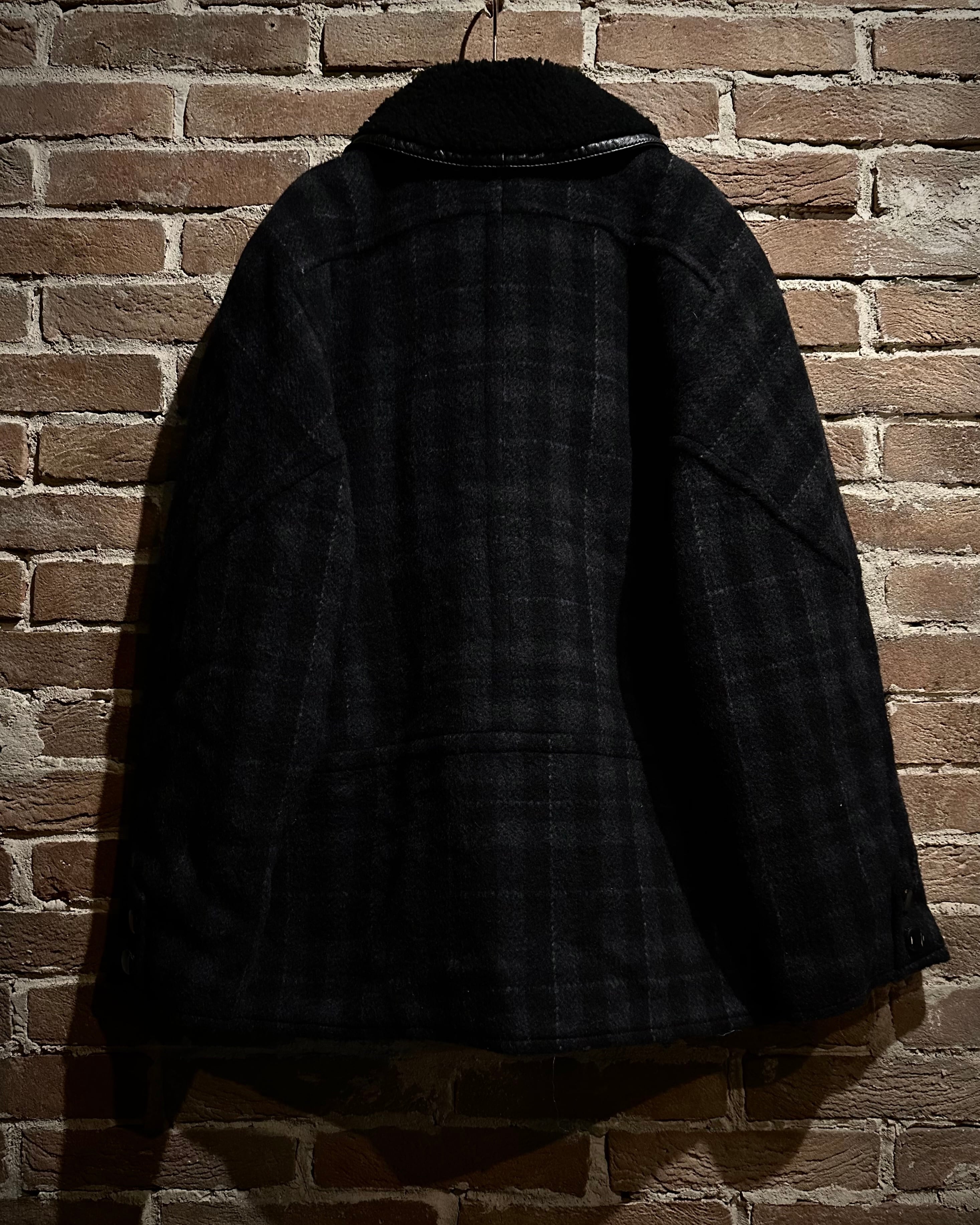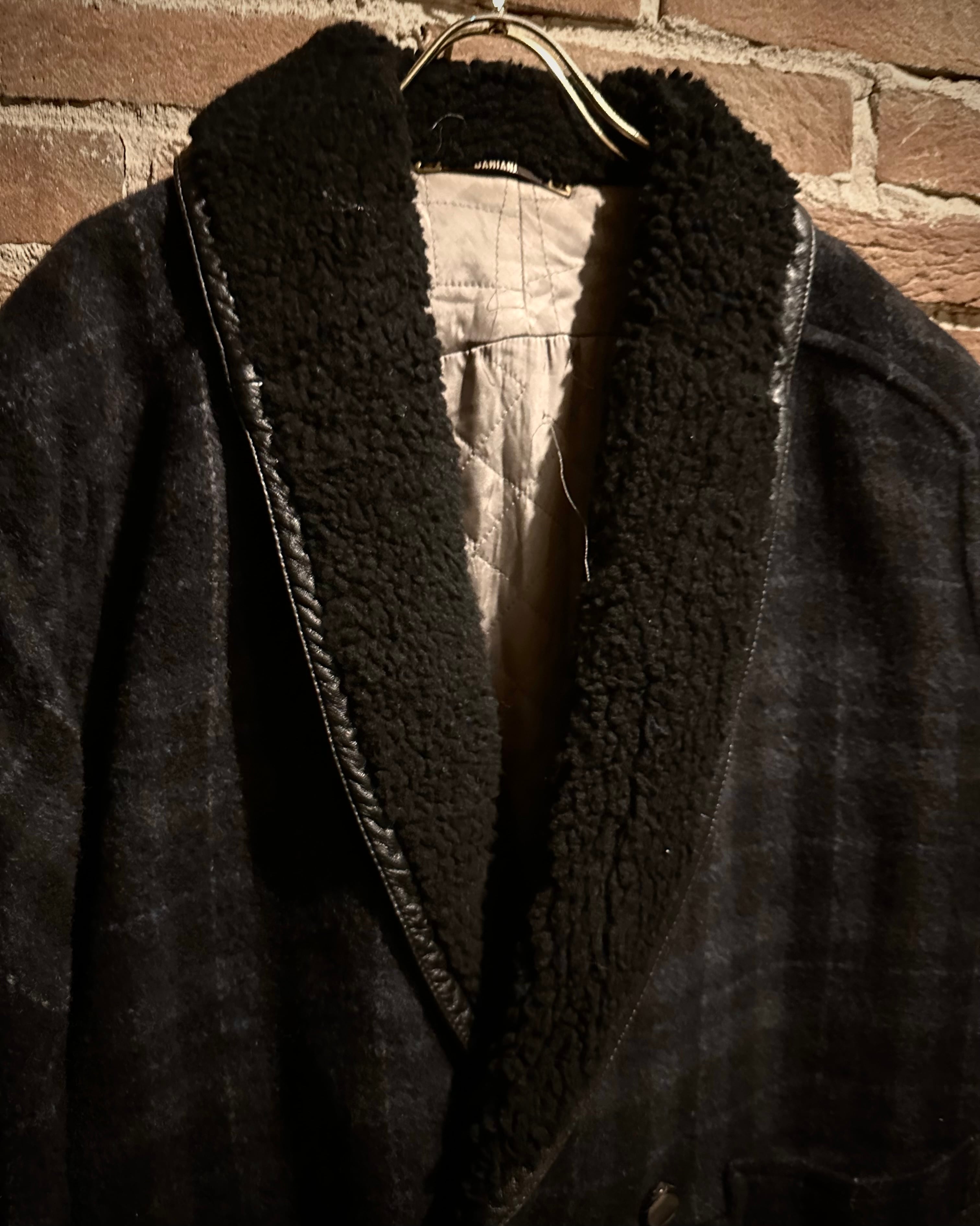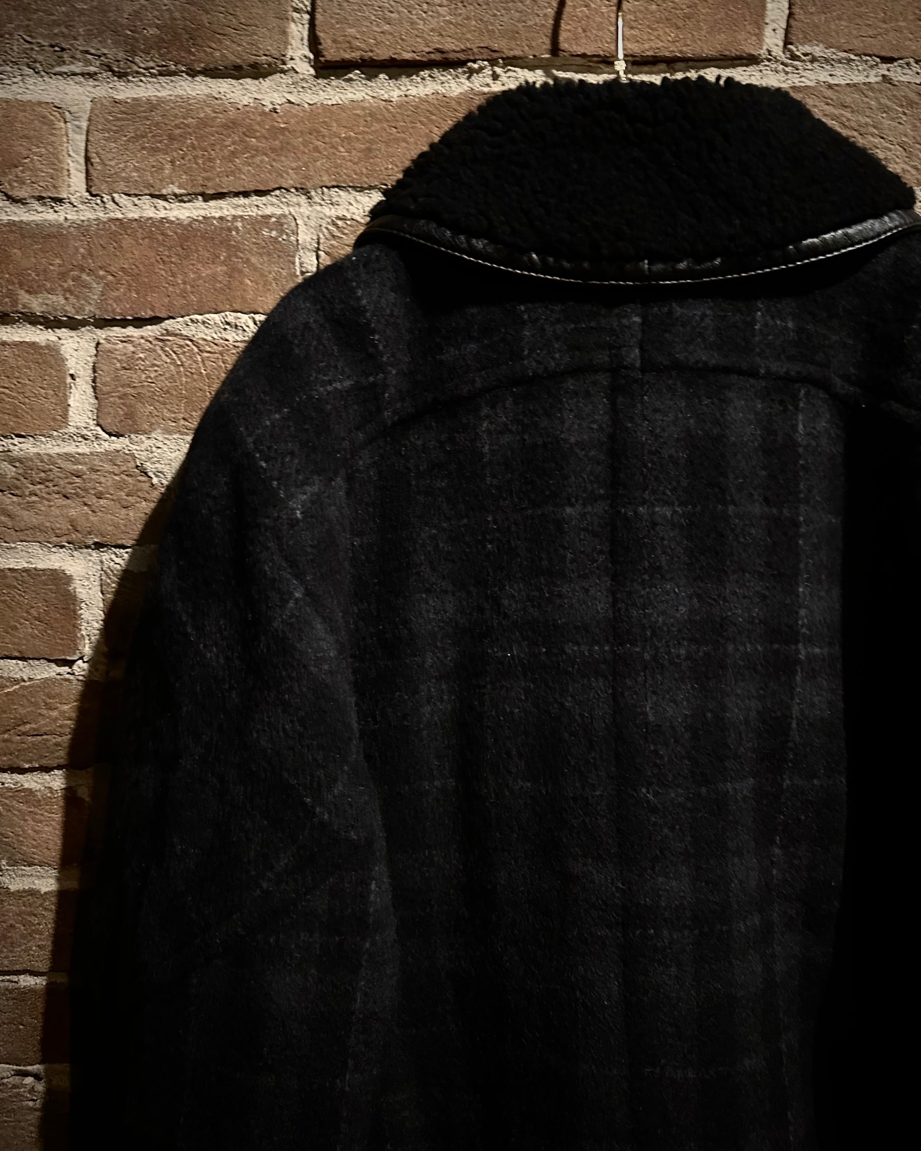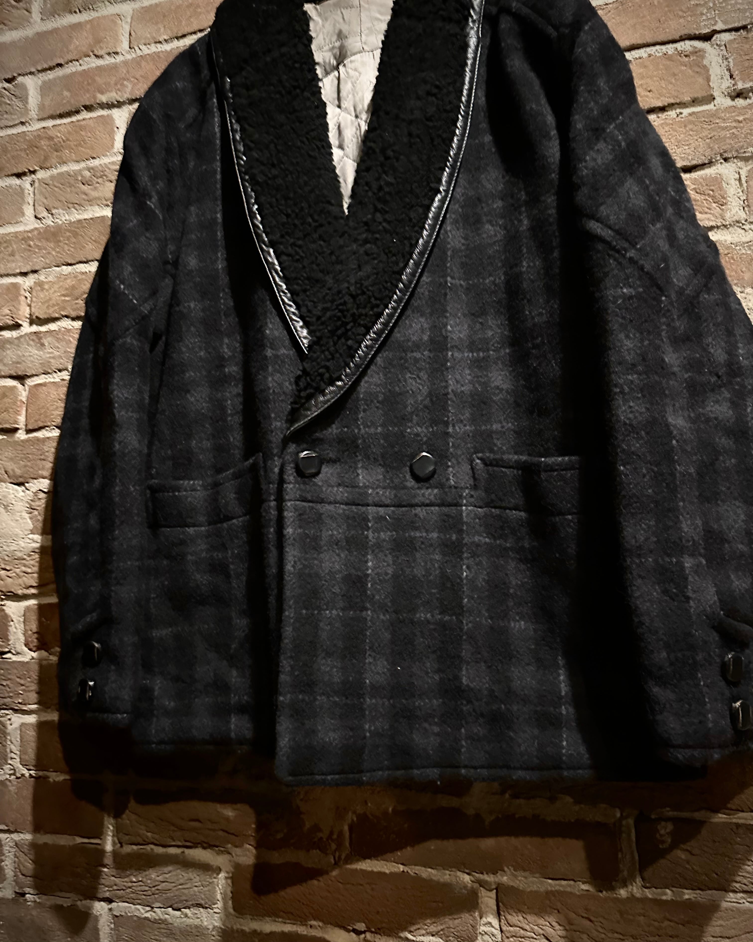 チェック柄のウールボディにムートンを贅沢に切り替えた、イタリアメイドのジャケット。