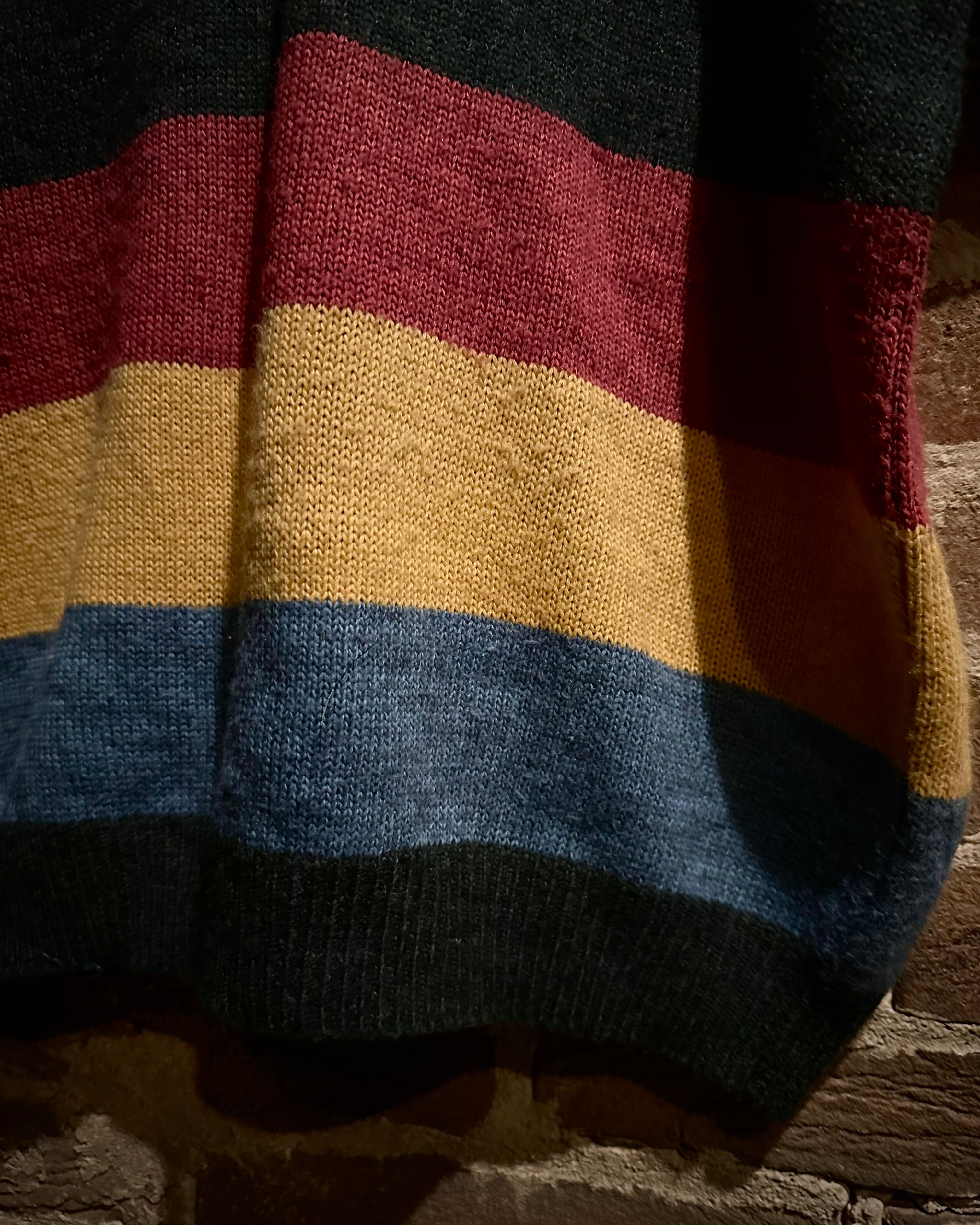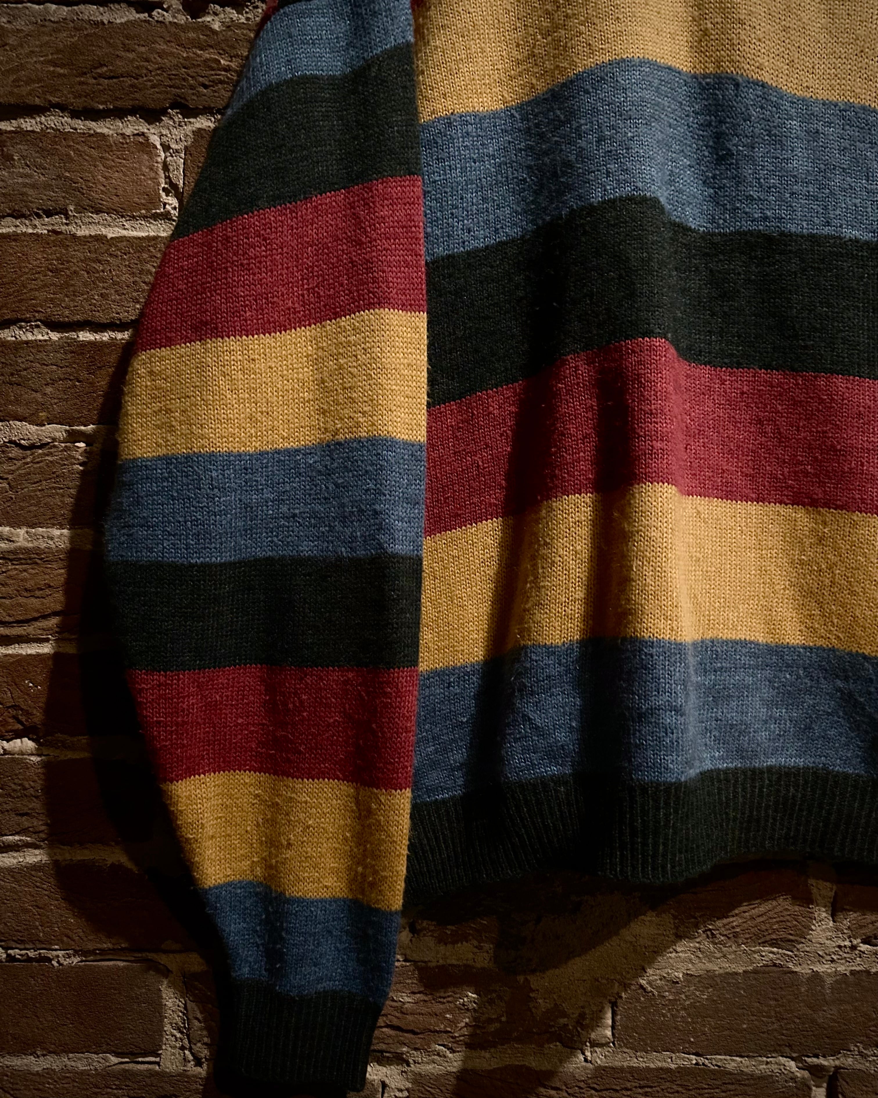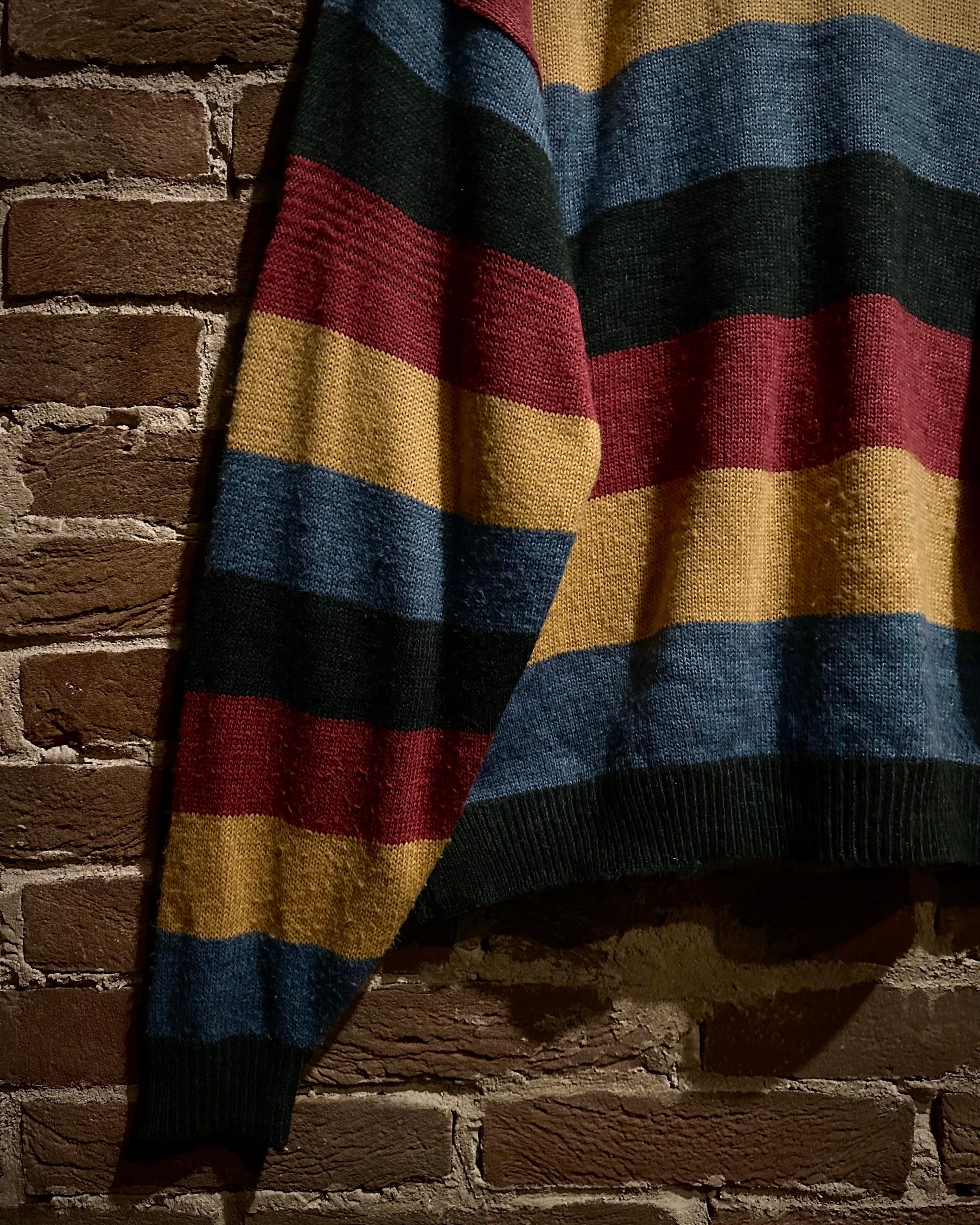 ウール×アクリルの柔らかなタッチで、見た目以上に軽く、肩を落として着られるゆったりシルエット。袖の膨らみも美しく、ただのボーダーでは終わらない抜け感のある仕上がりです。