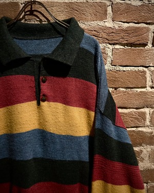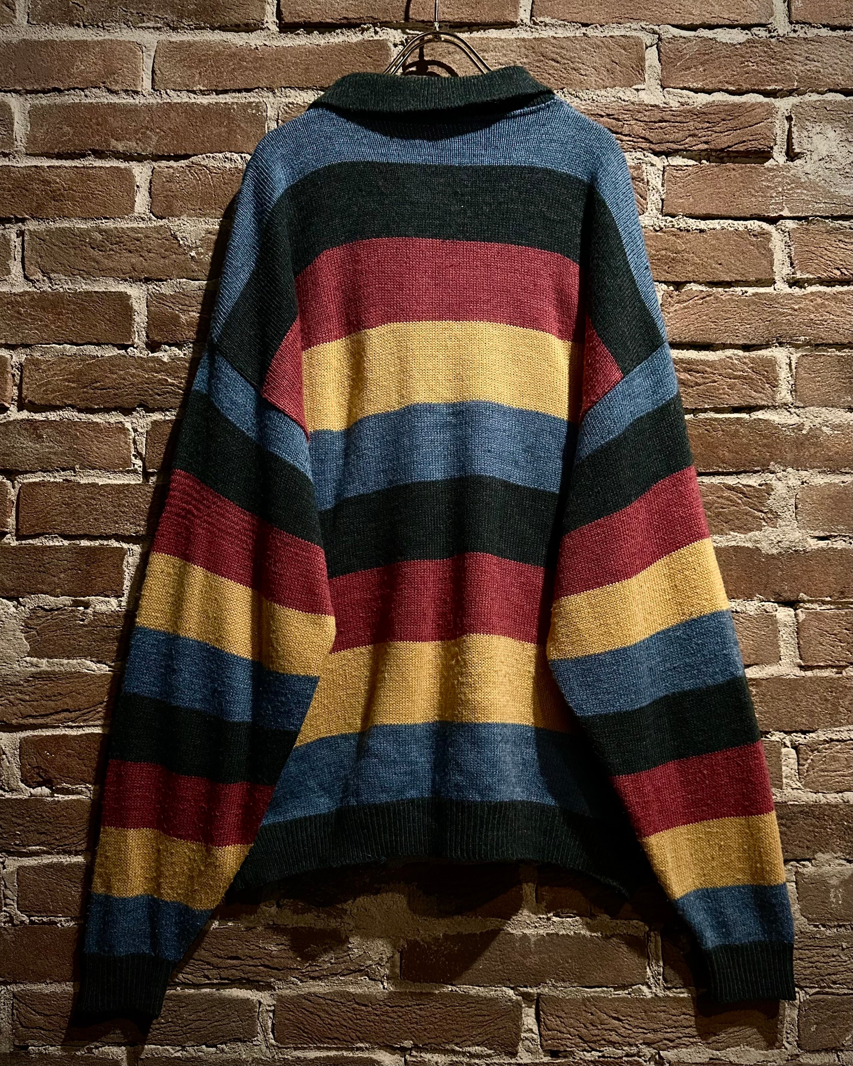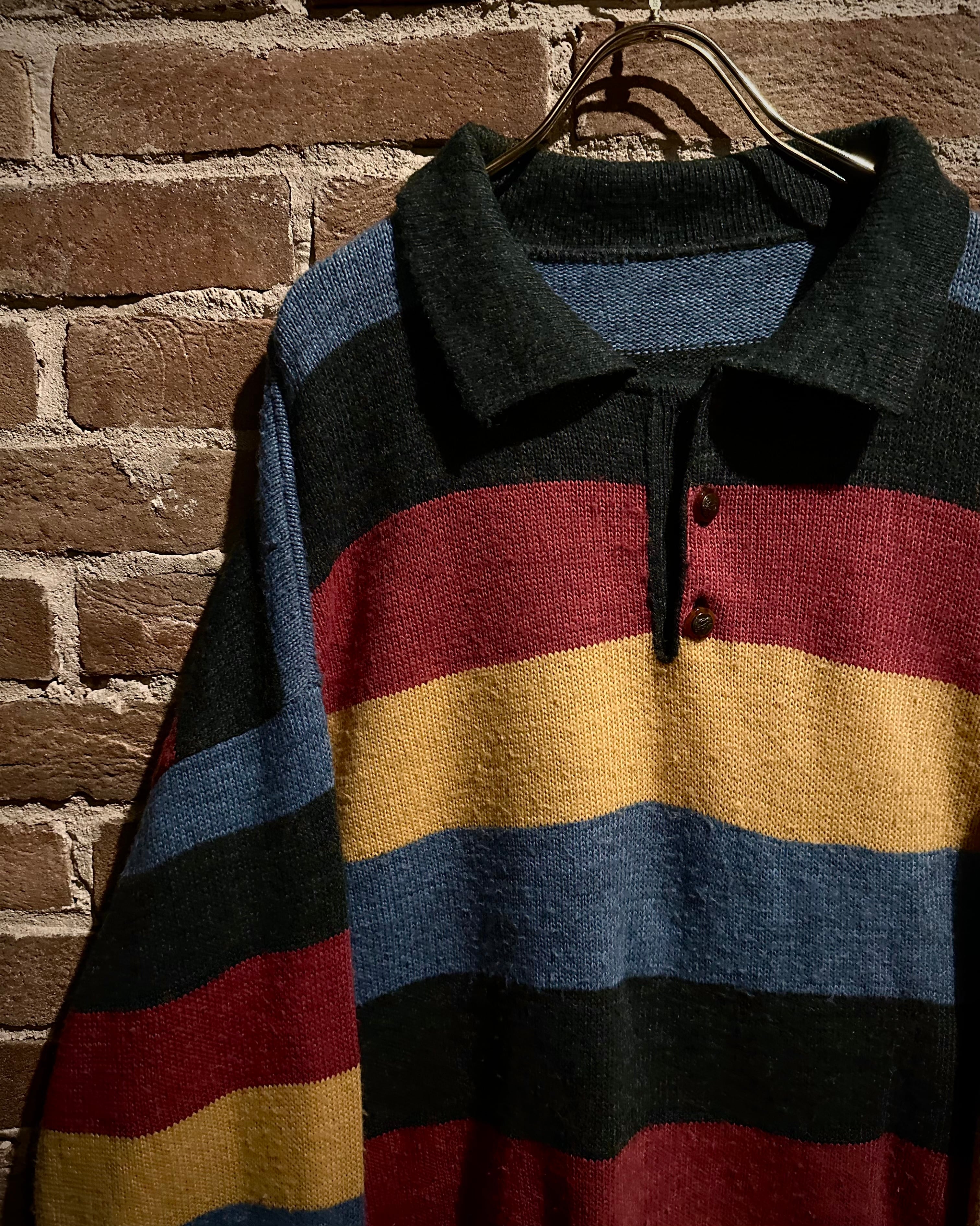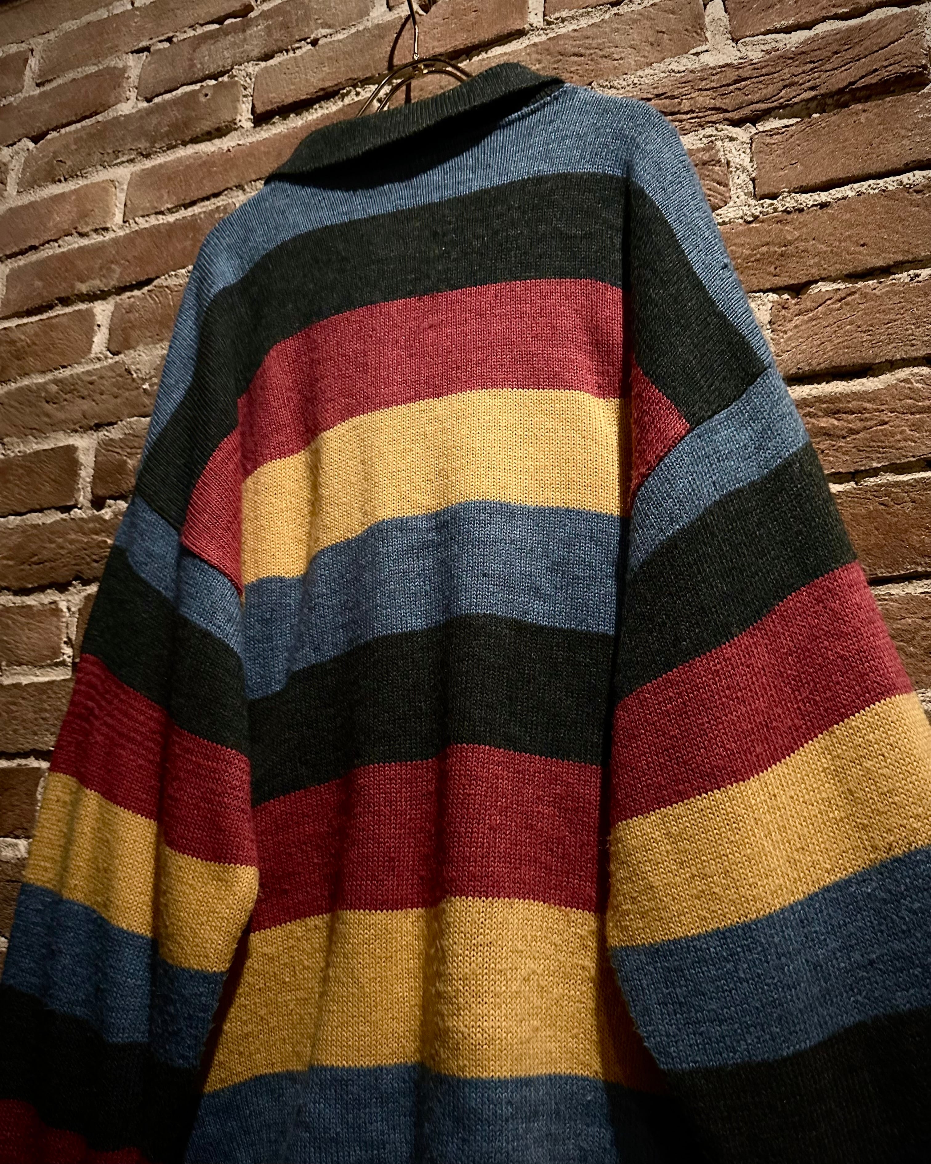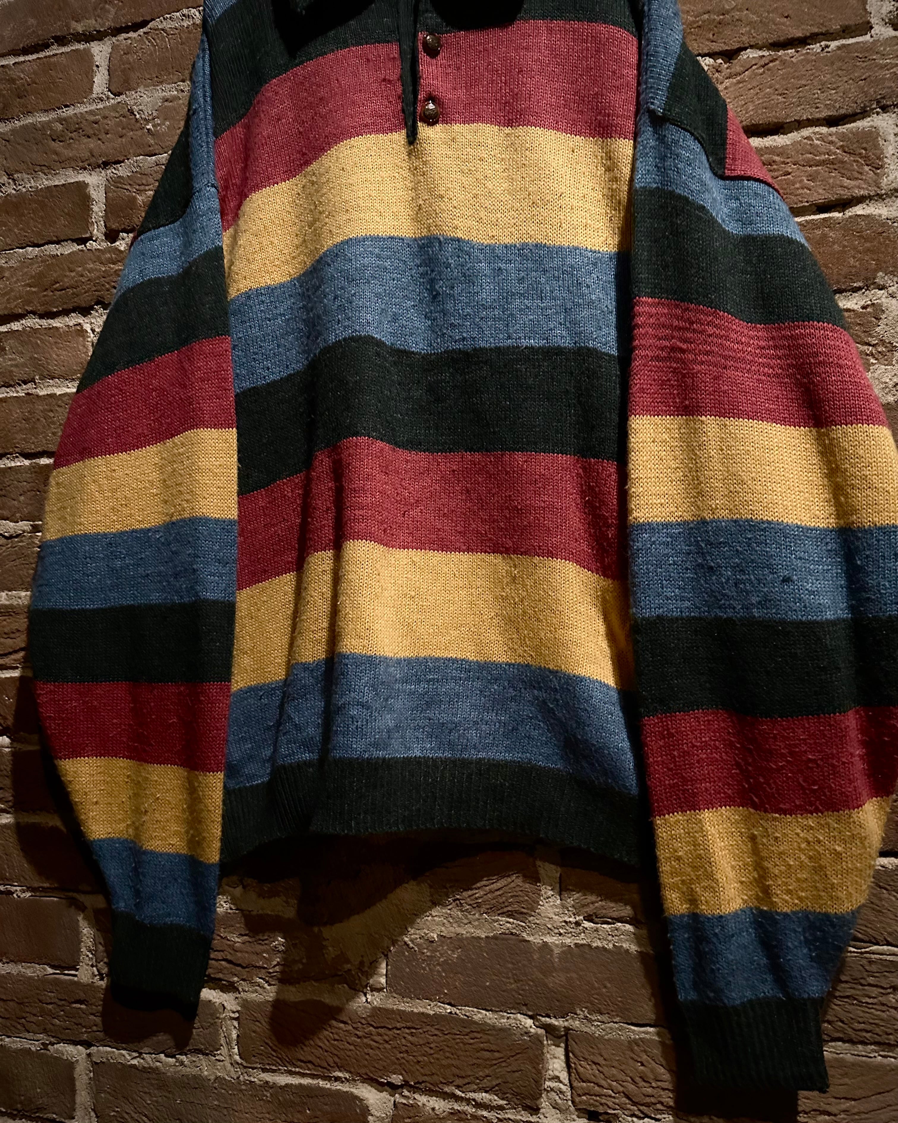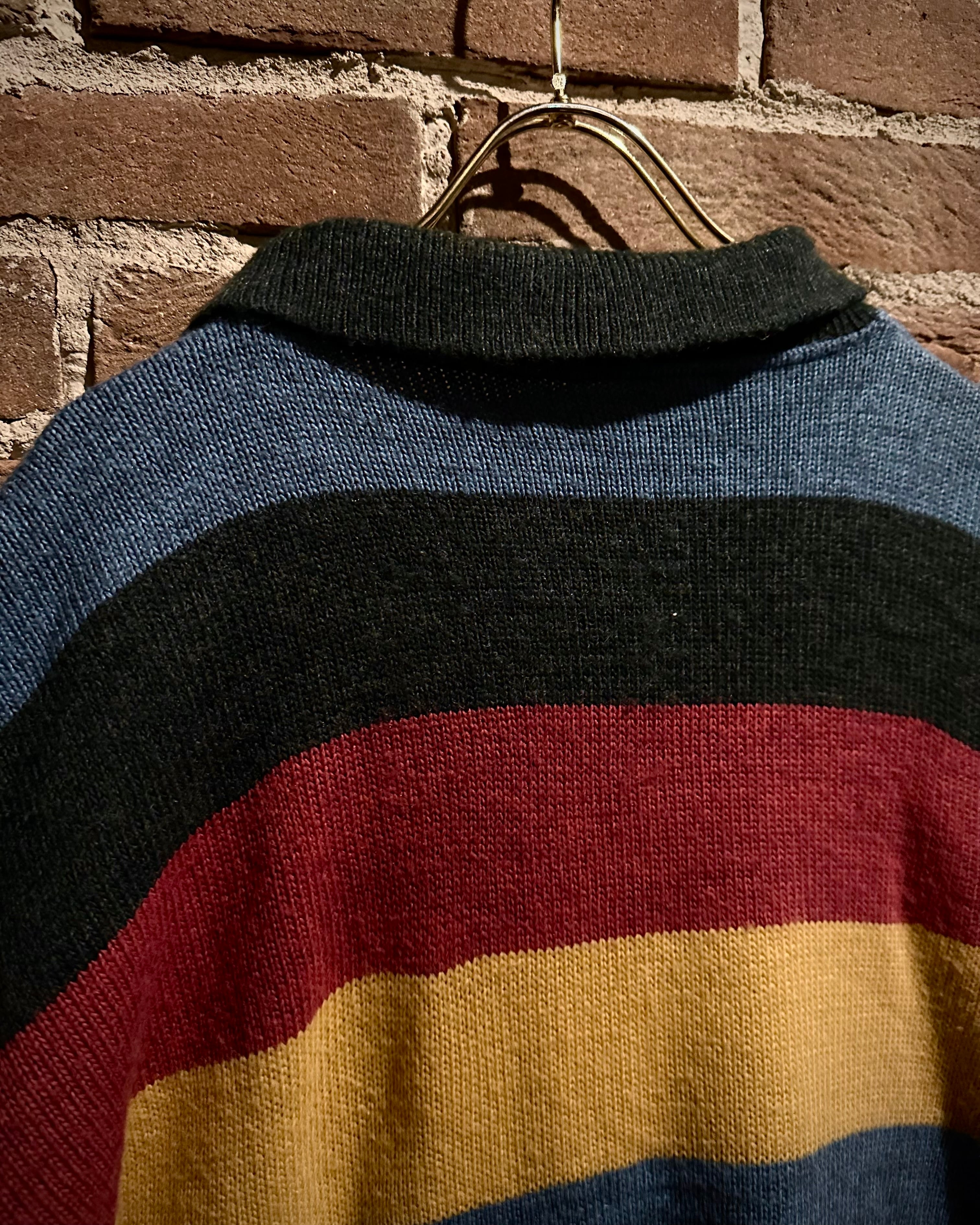 イタリアメイドらしい洒落感が光る、マルチカラーボーダーのニットポロ。