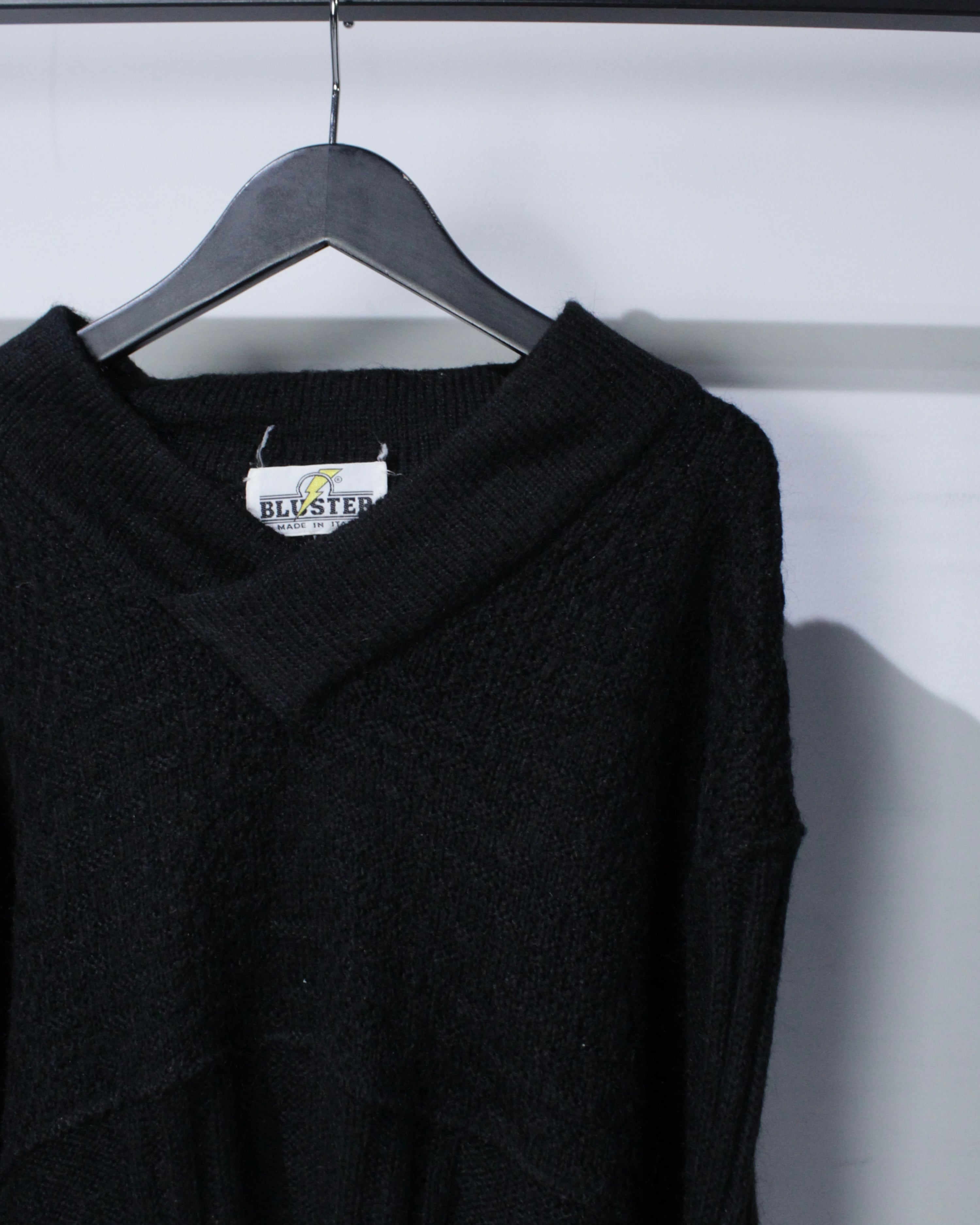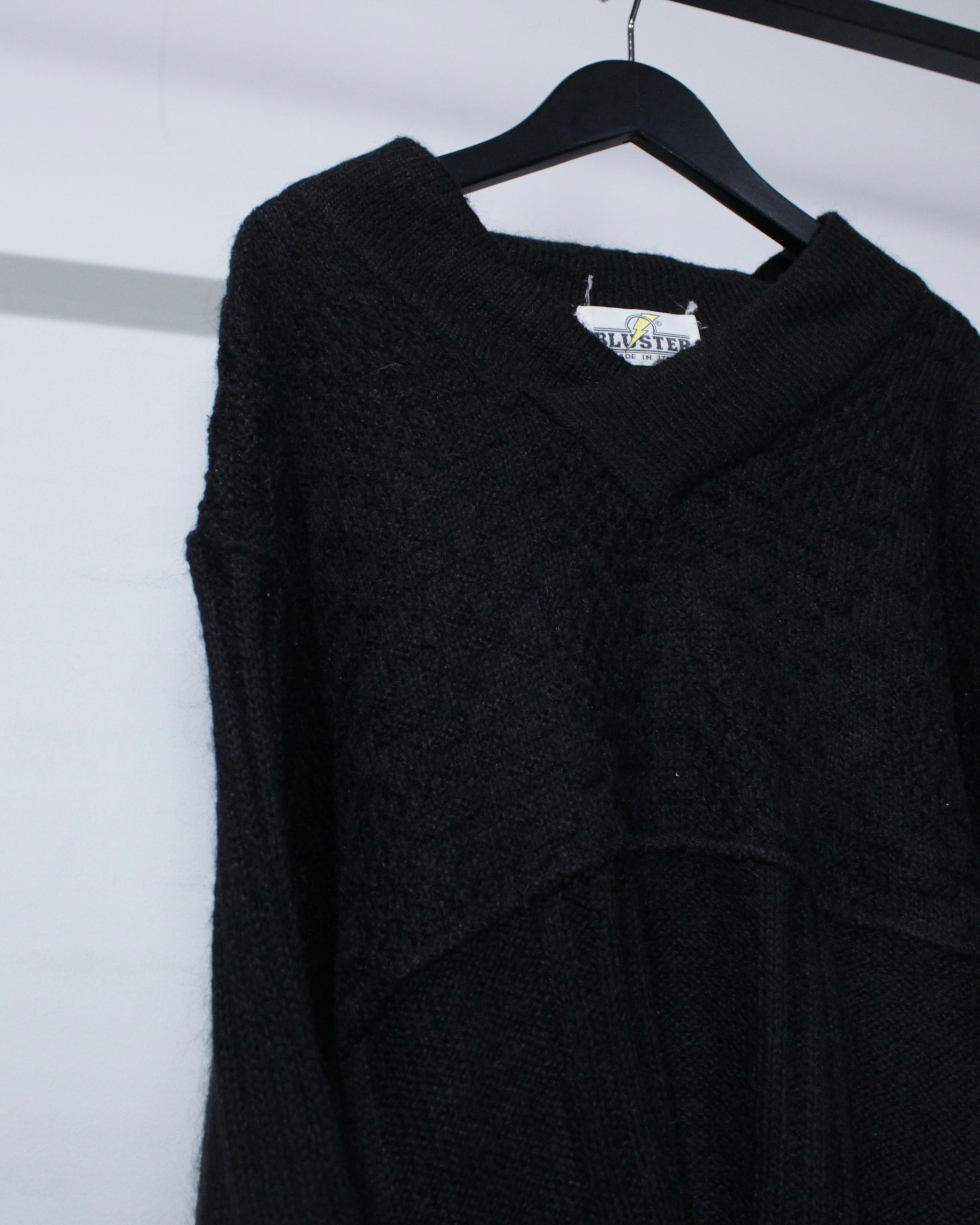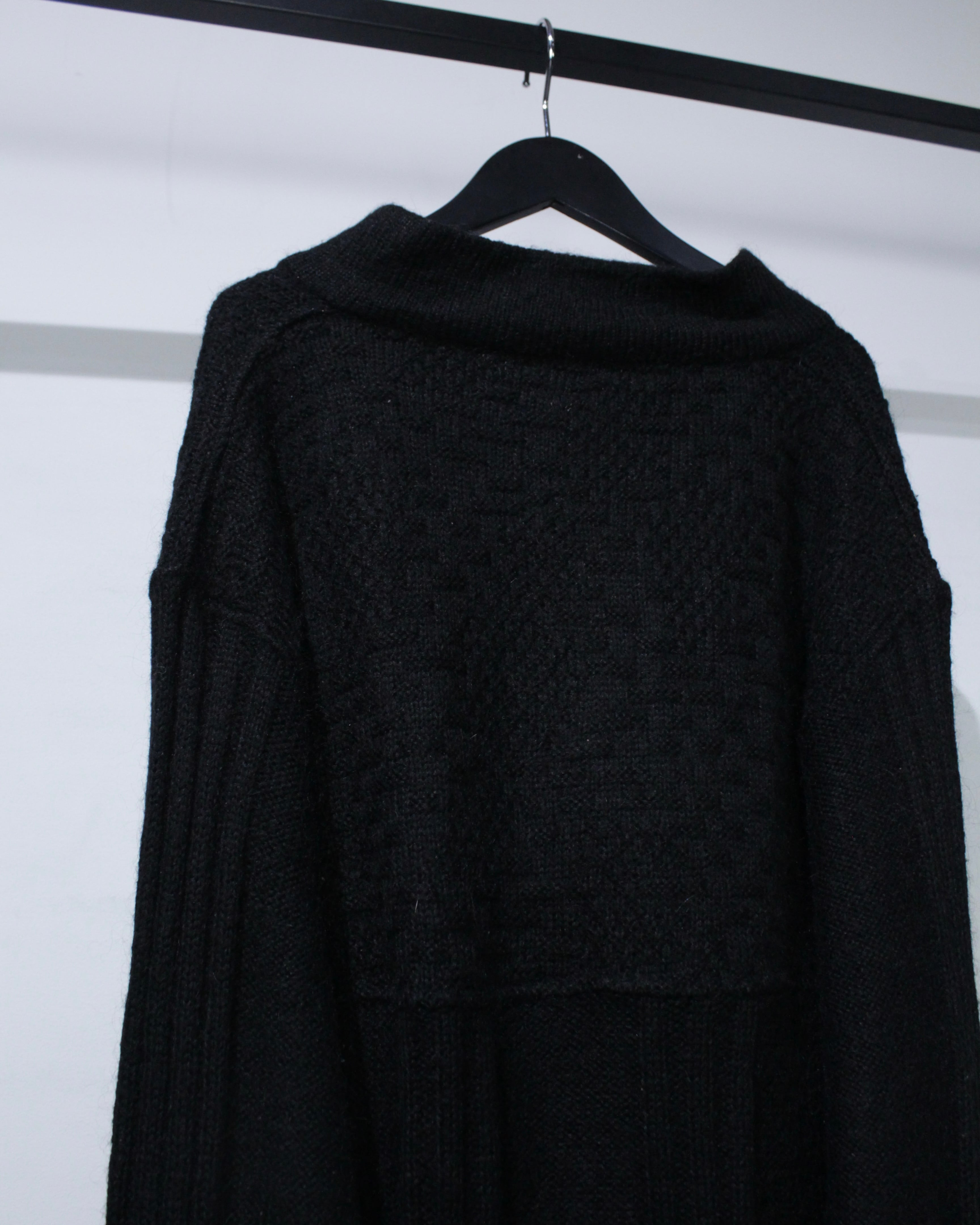 オールブラックながら動きと陰影がしっかり出る表情豊かな編み地で、シンプルになりすぎないのも魅力。ジャケットやブルゾンのインナーとしてはもちろん、一枚で着ても存在感があります。