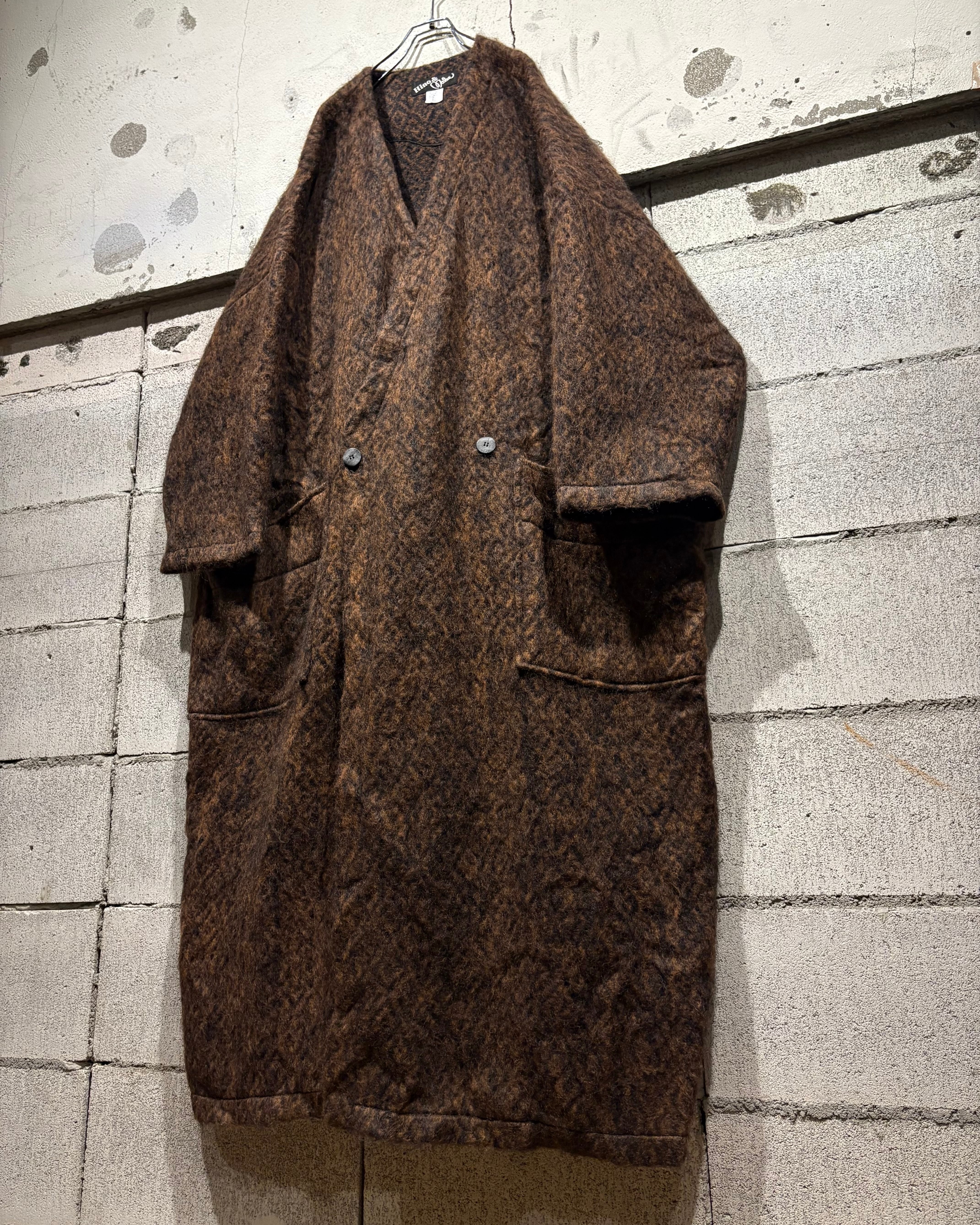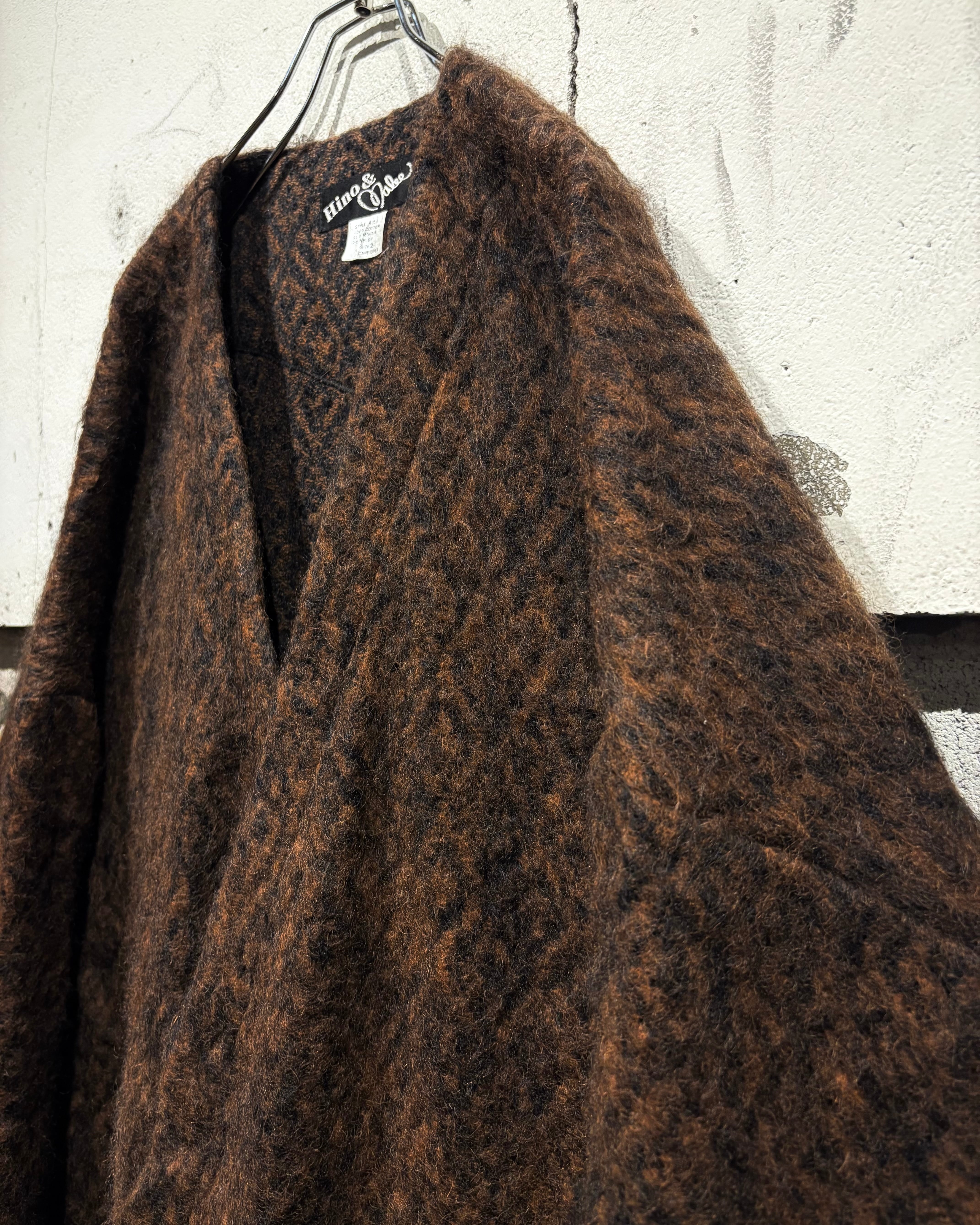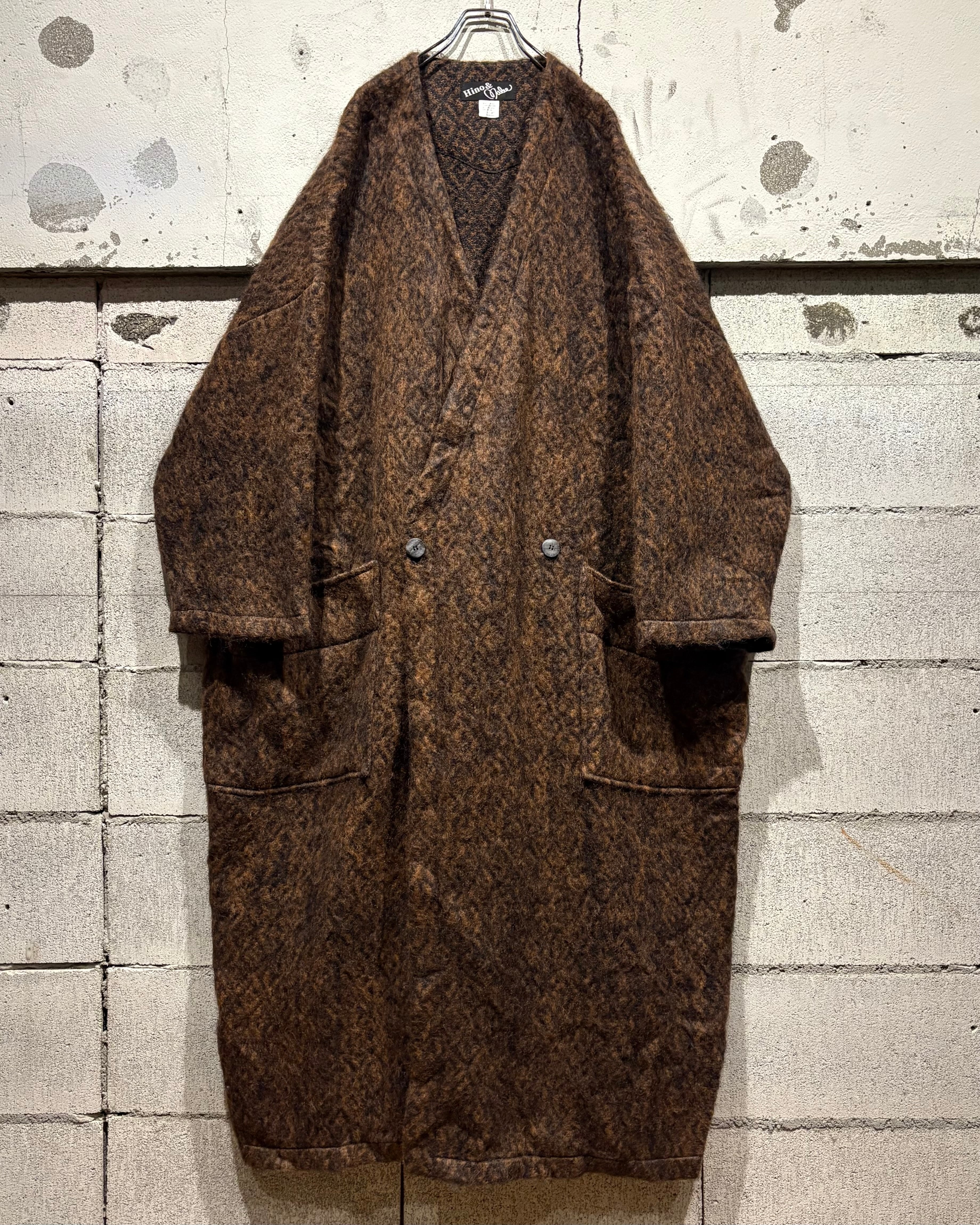 幾何学柄の存在感、ダブルブレストが漂わせる雰囲気、モヘアの温もり。アウターとしての迫力とニットの柔らかさを併せ持った、冬の主役を張れるスペシャルピースです。