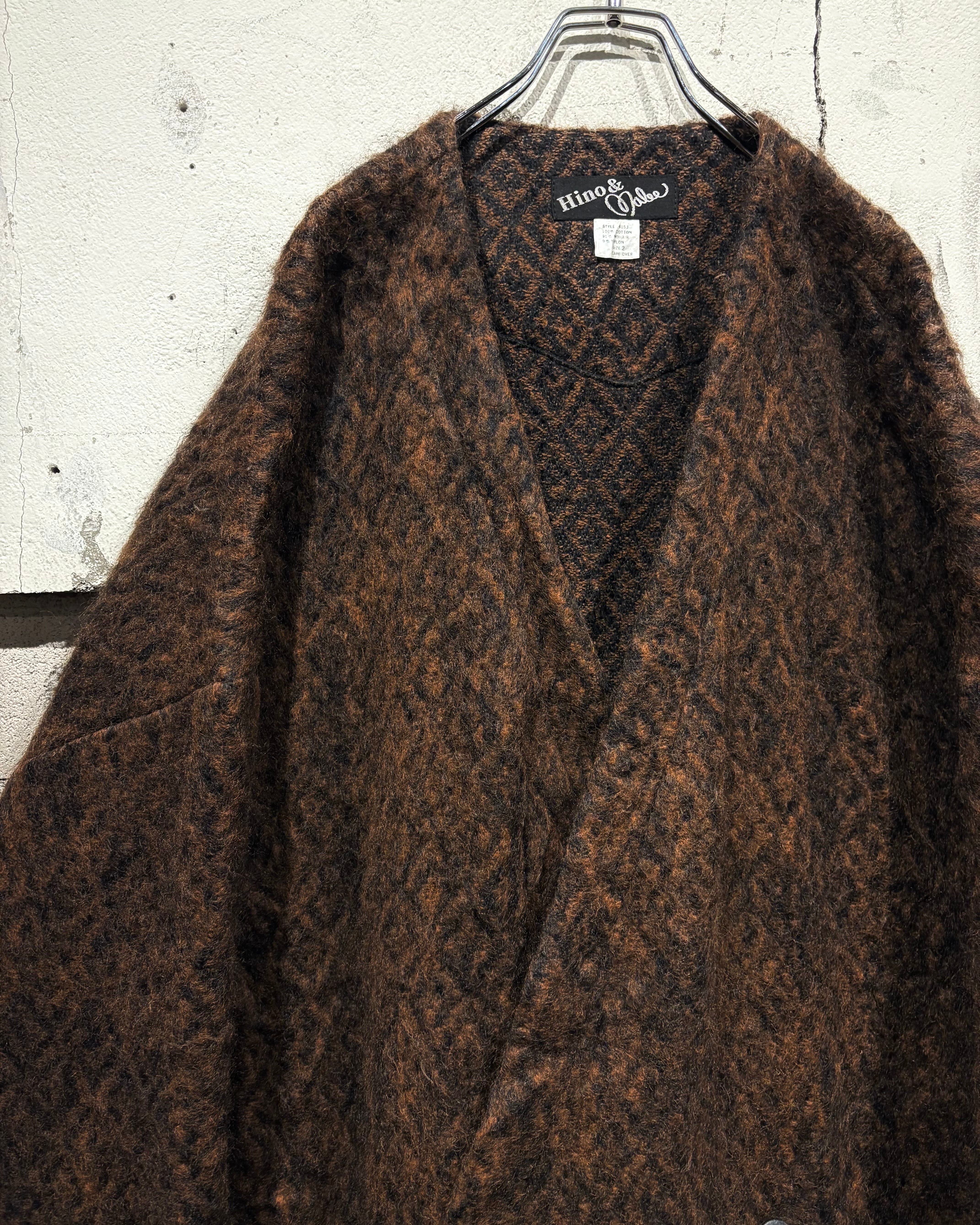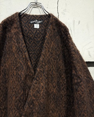 ブラウンのボディをベースに、幾何学的なパターンを全体に載せた80'sユーロヴィンテージの稀有なニットコート。