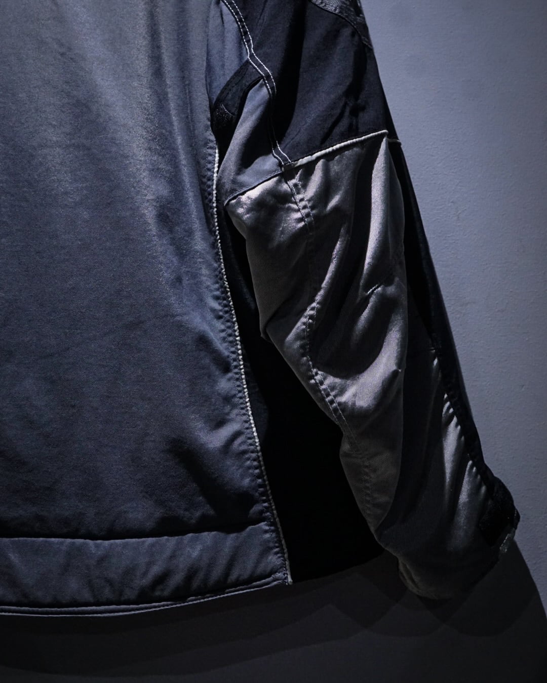 肩から袖へ続く大胆な切り替えと立体的なシルエットはアウター単体でスタイルが完成する存在感を放ち、今からの季節の主役として間違いなしかと。