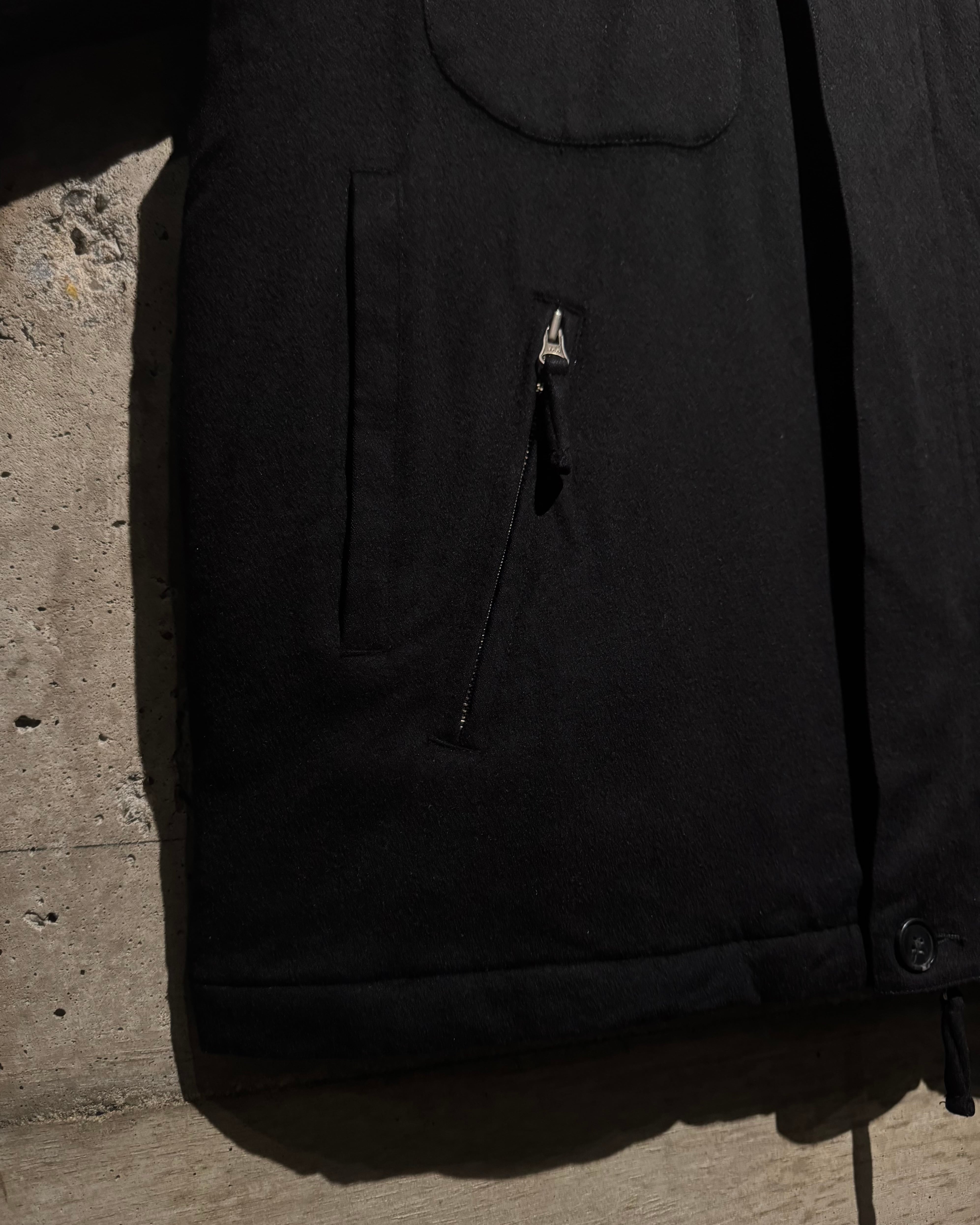 ボディには上質なウールを採用し、きめ細やかな生地が高級感をムンムンに漂わせる仕上がり。胸元のフラップポケット、ジップポケット、裾アジャスターなど、随所に実用的なディテールを完備し、シルエット調整も自在です◎
