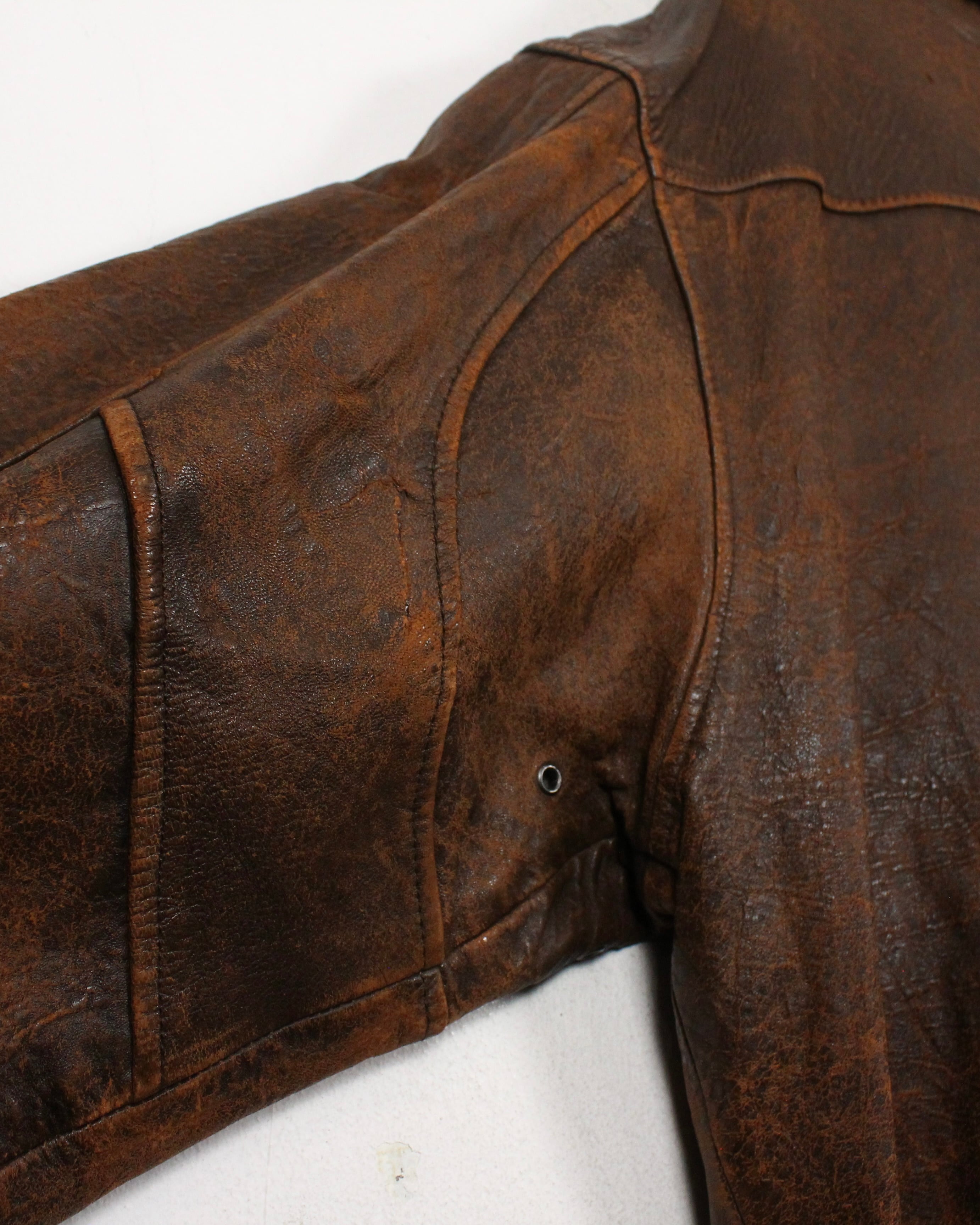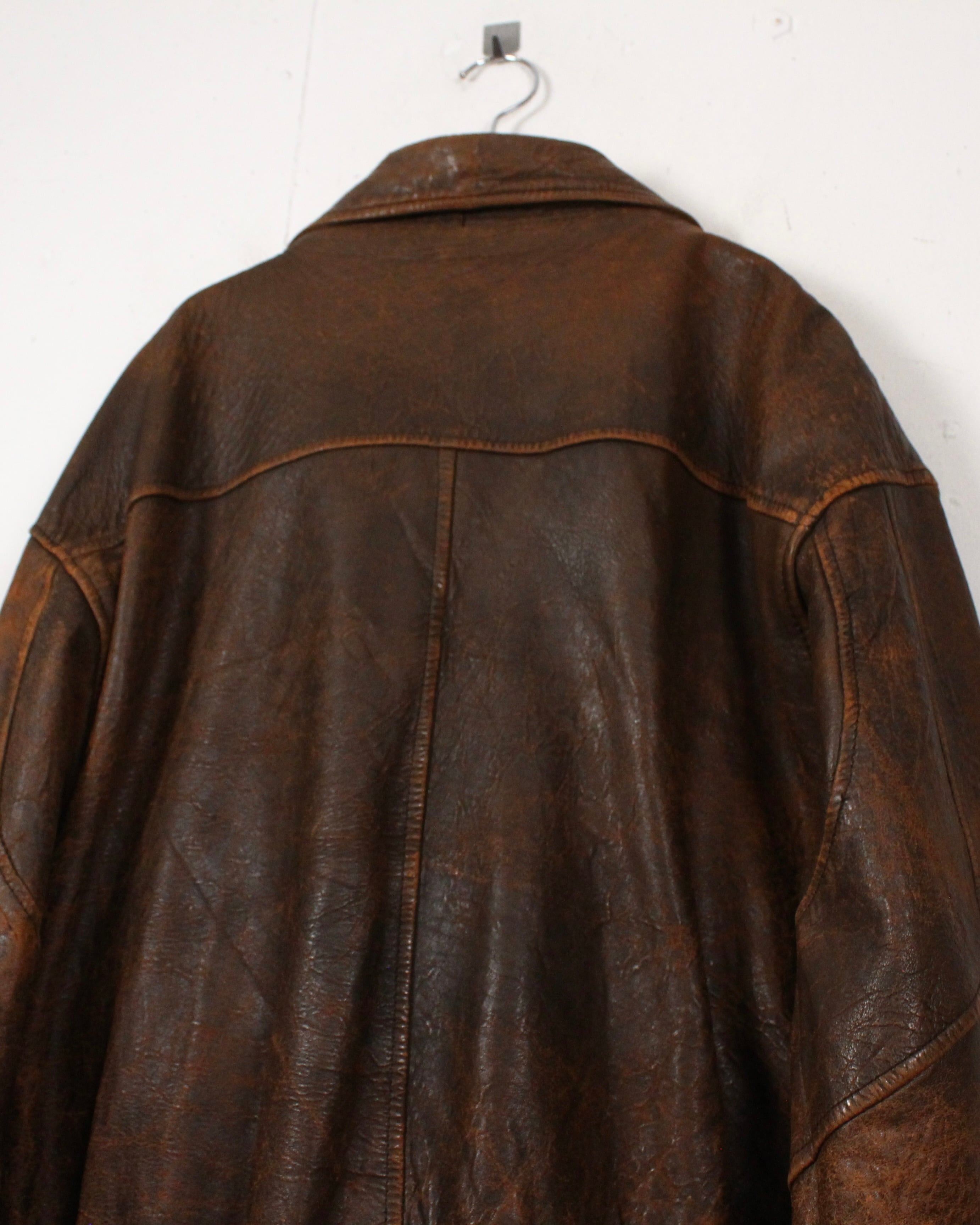 レザーのシボ感、擦れ、ヤレ感は一点物としての魅力そのもの。新品では出せない説得力が宿っており、ただ羽織るだけでスタイリングの主役になる圧倒的な雰囲気をまとっています。