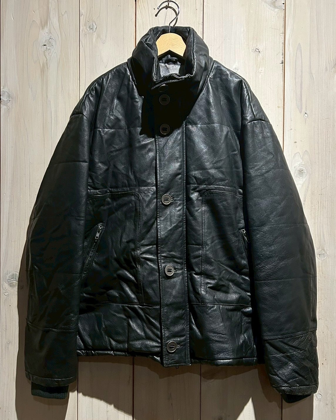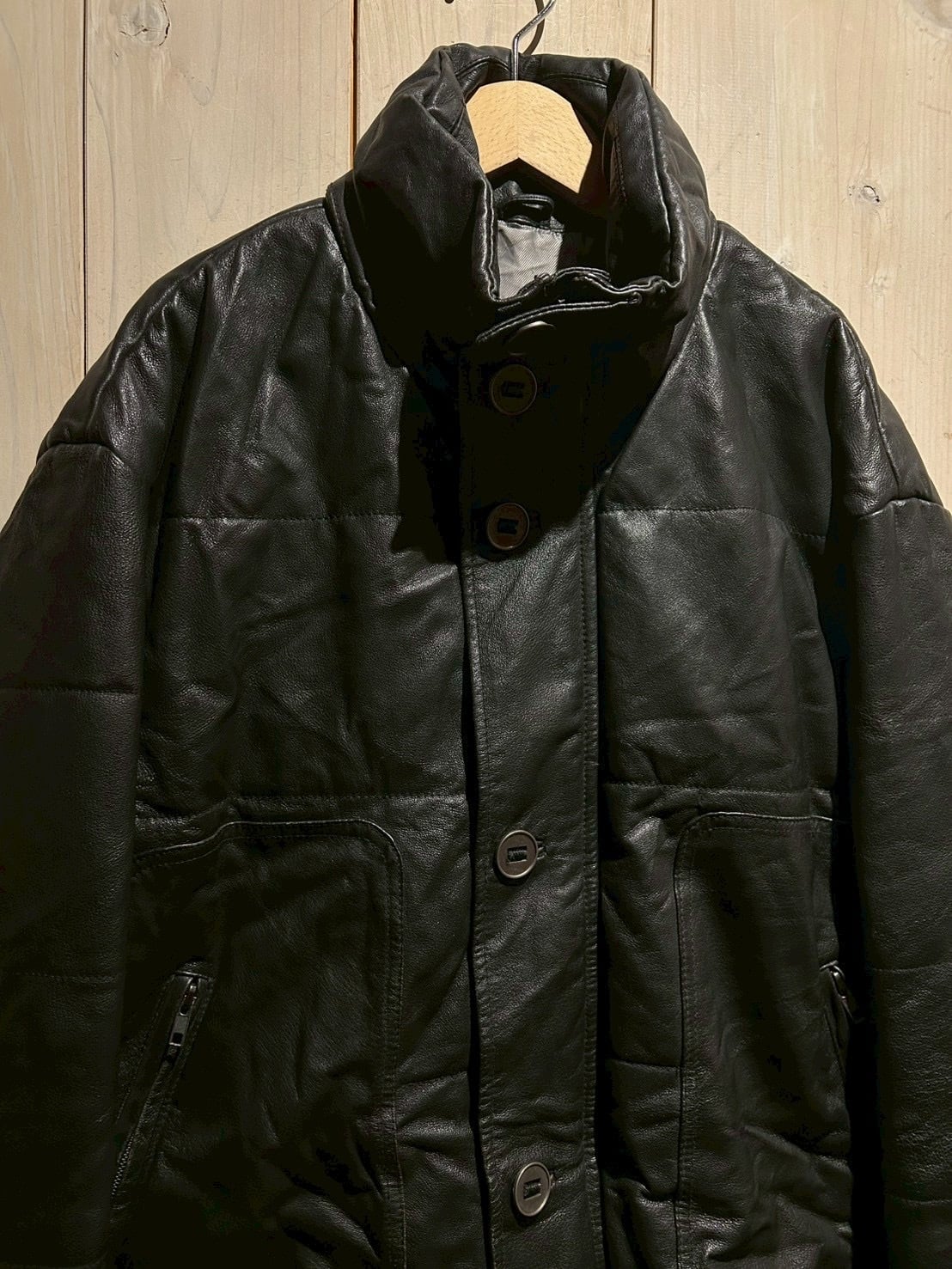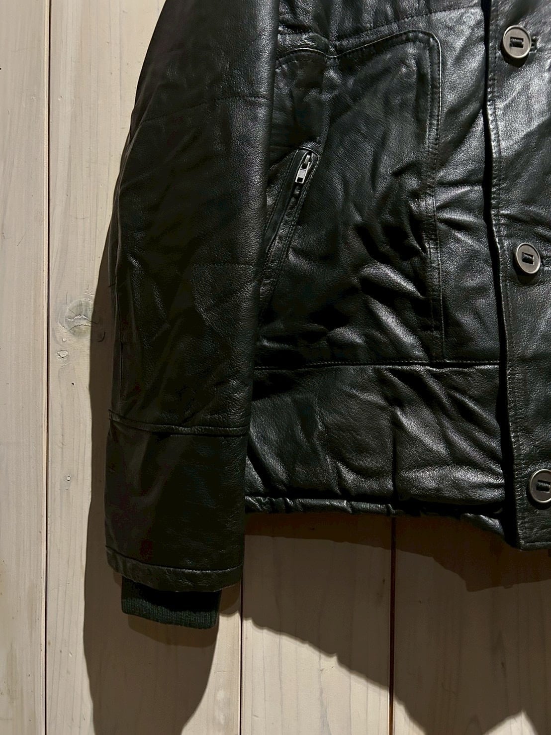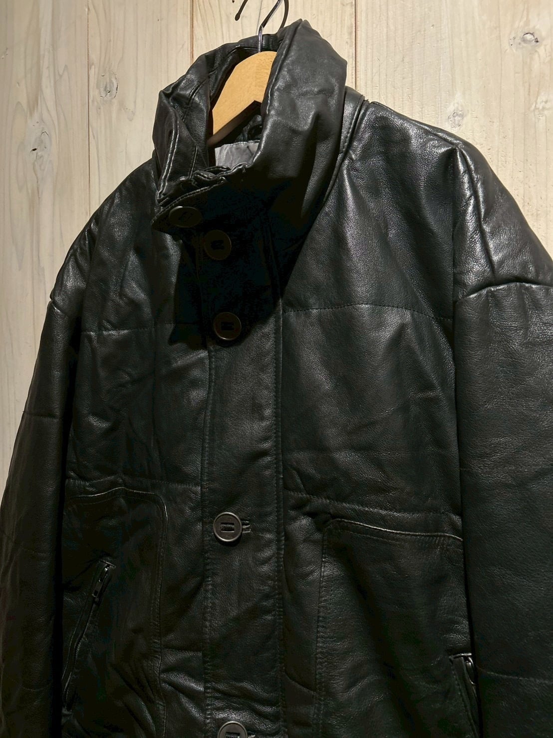 中綿を仕込みつつ、レザーらしい重厚感はそのまま。羽織るだけで存在感が出るため、デニムでもスラックスでも馴染みやすく、モード寄りのスタイリングにも相性抜群。