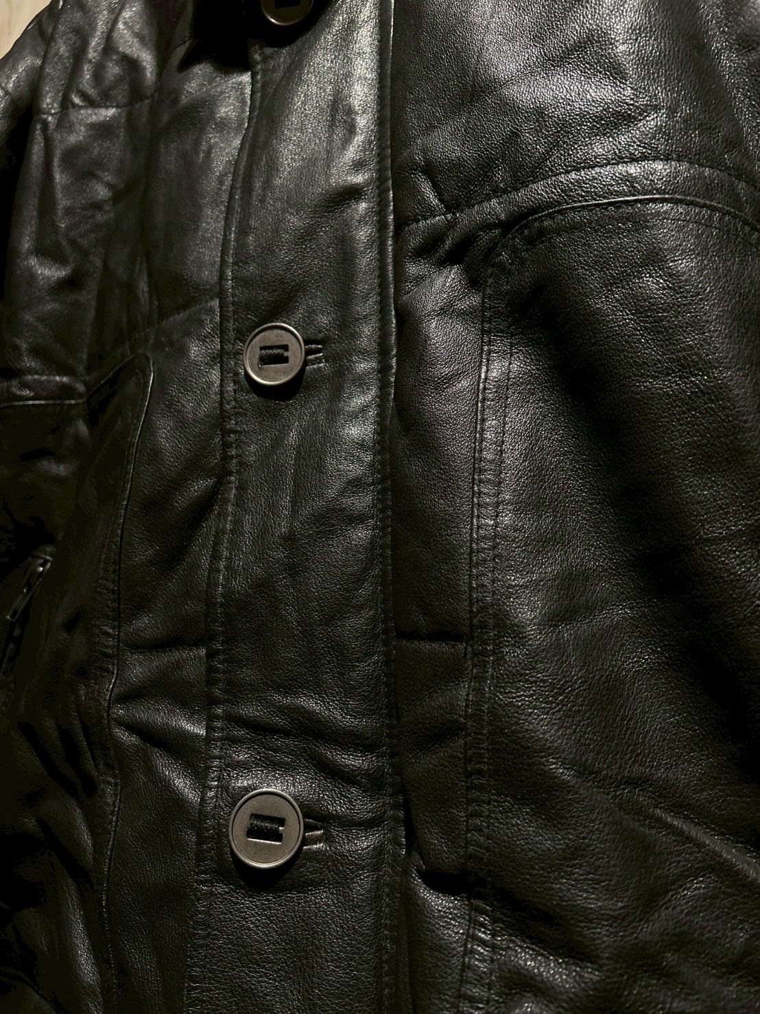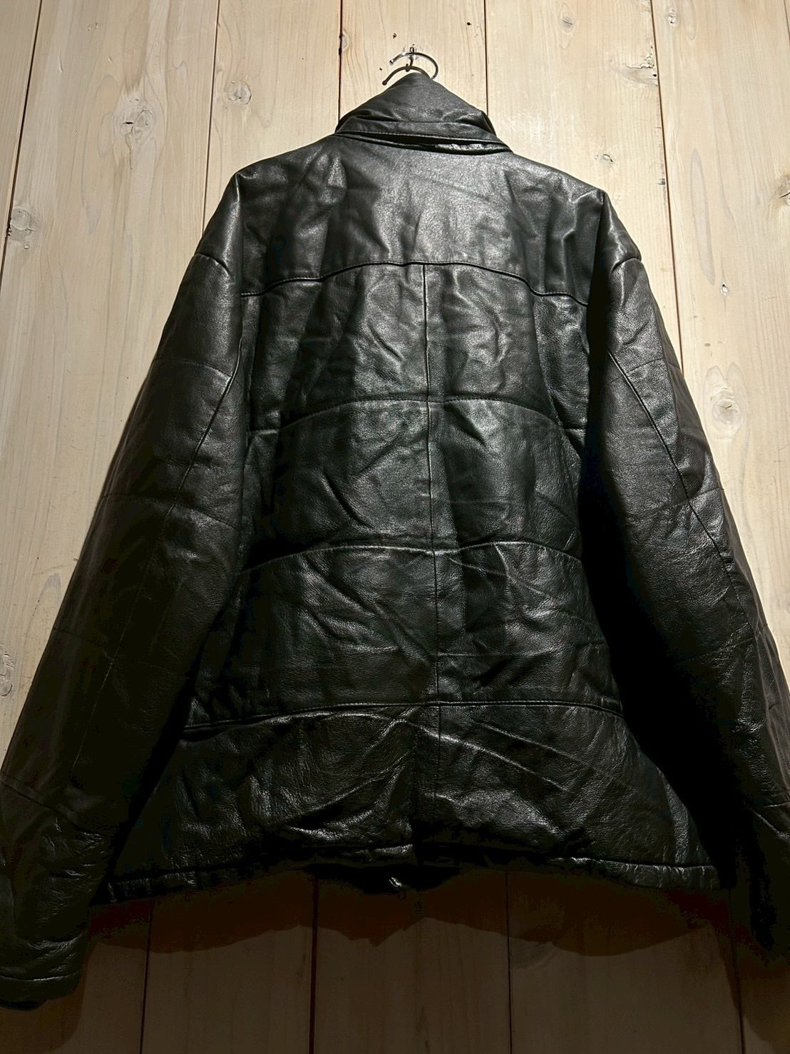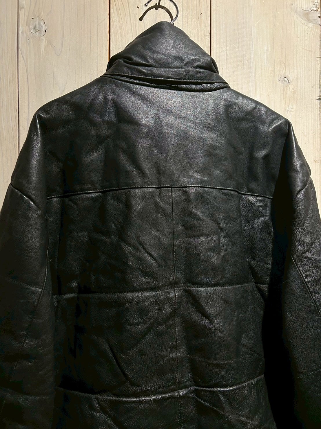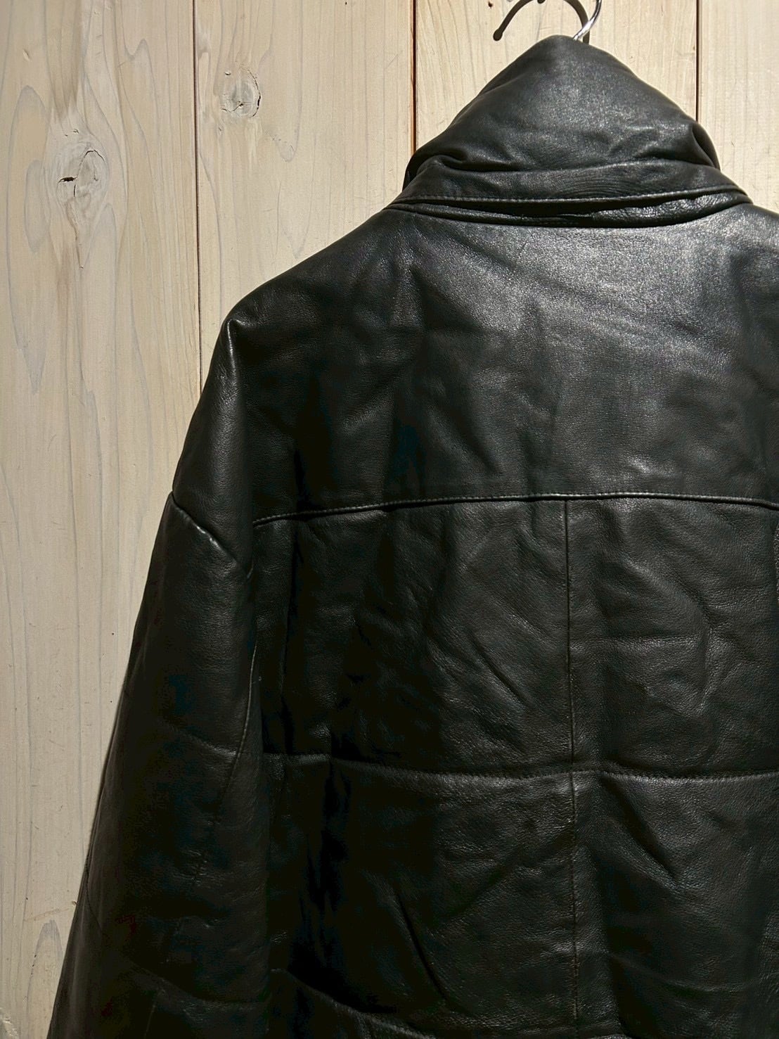 中綿を仕込みつつ、レザーらしい重厚感はそのまま。羽織るだけで存在感が出るため、デニムでもスラックスでも馴染みやすく、モード寄りのスタイリングにも相性抜群。