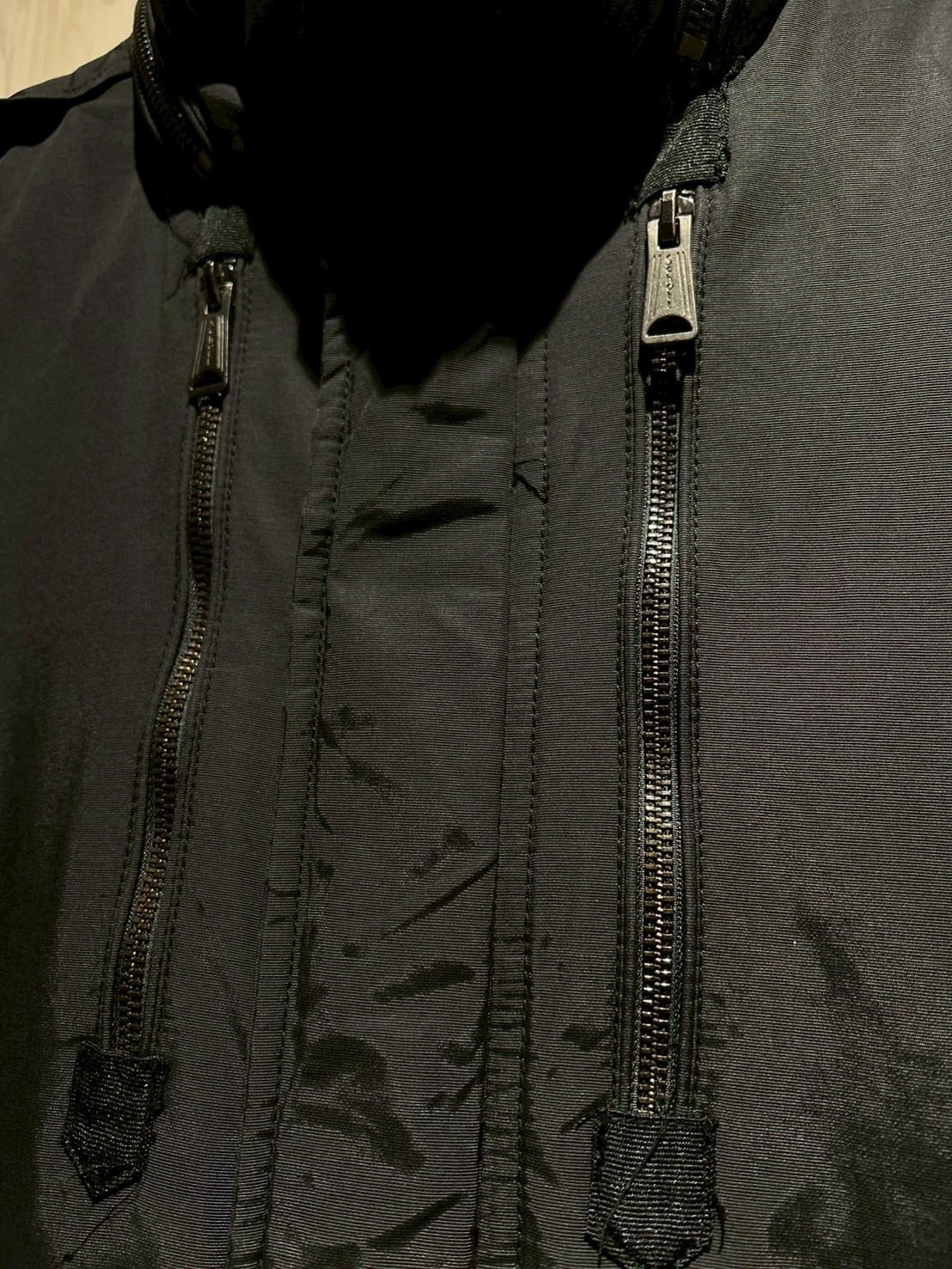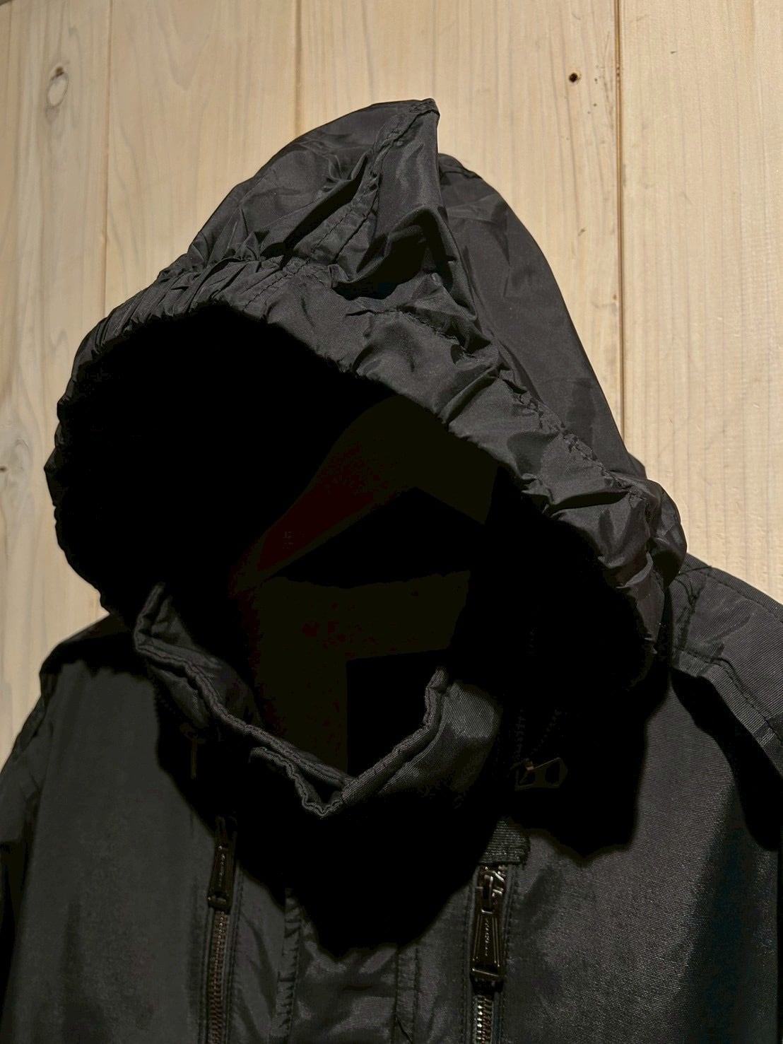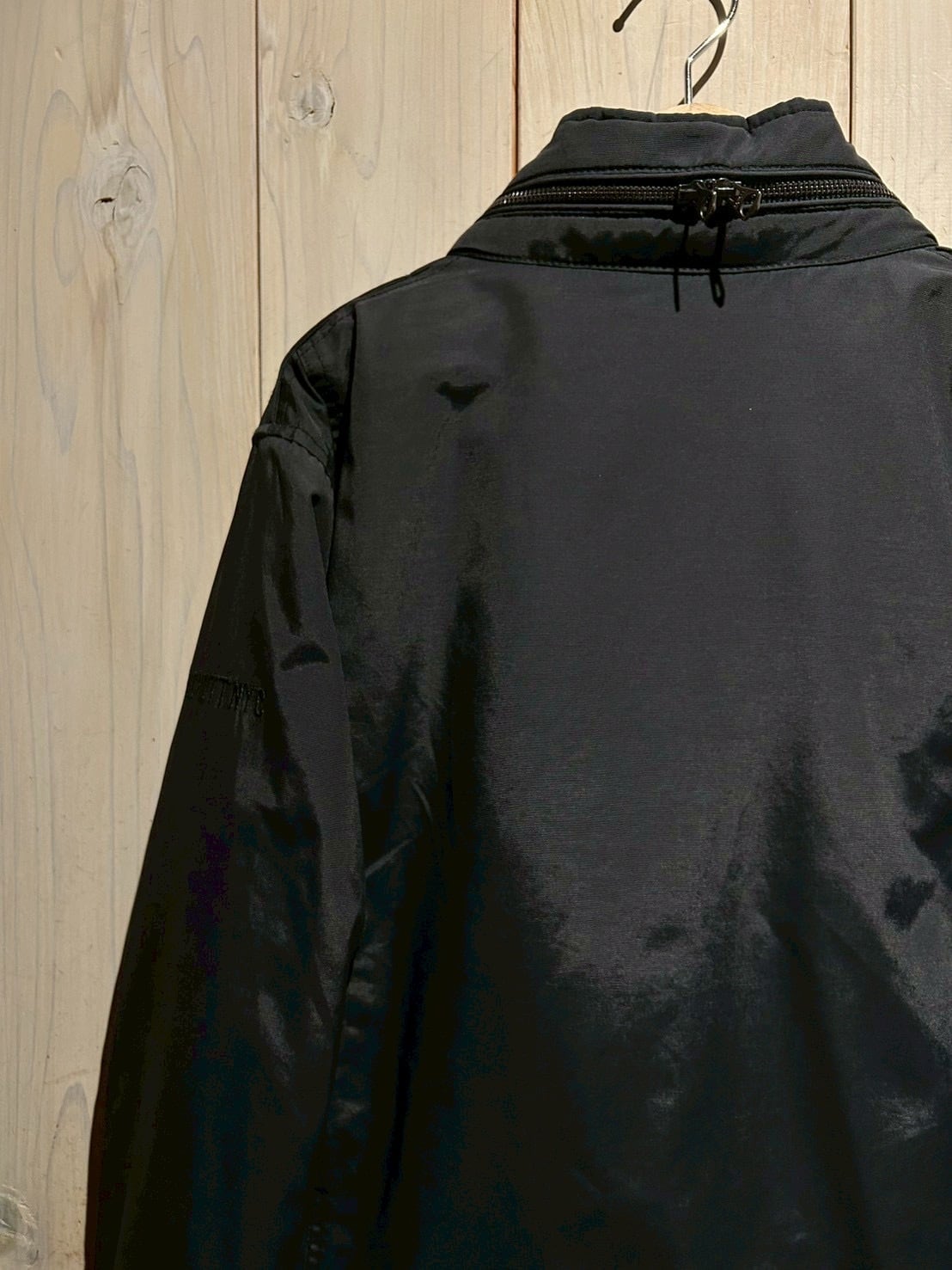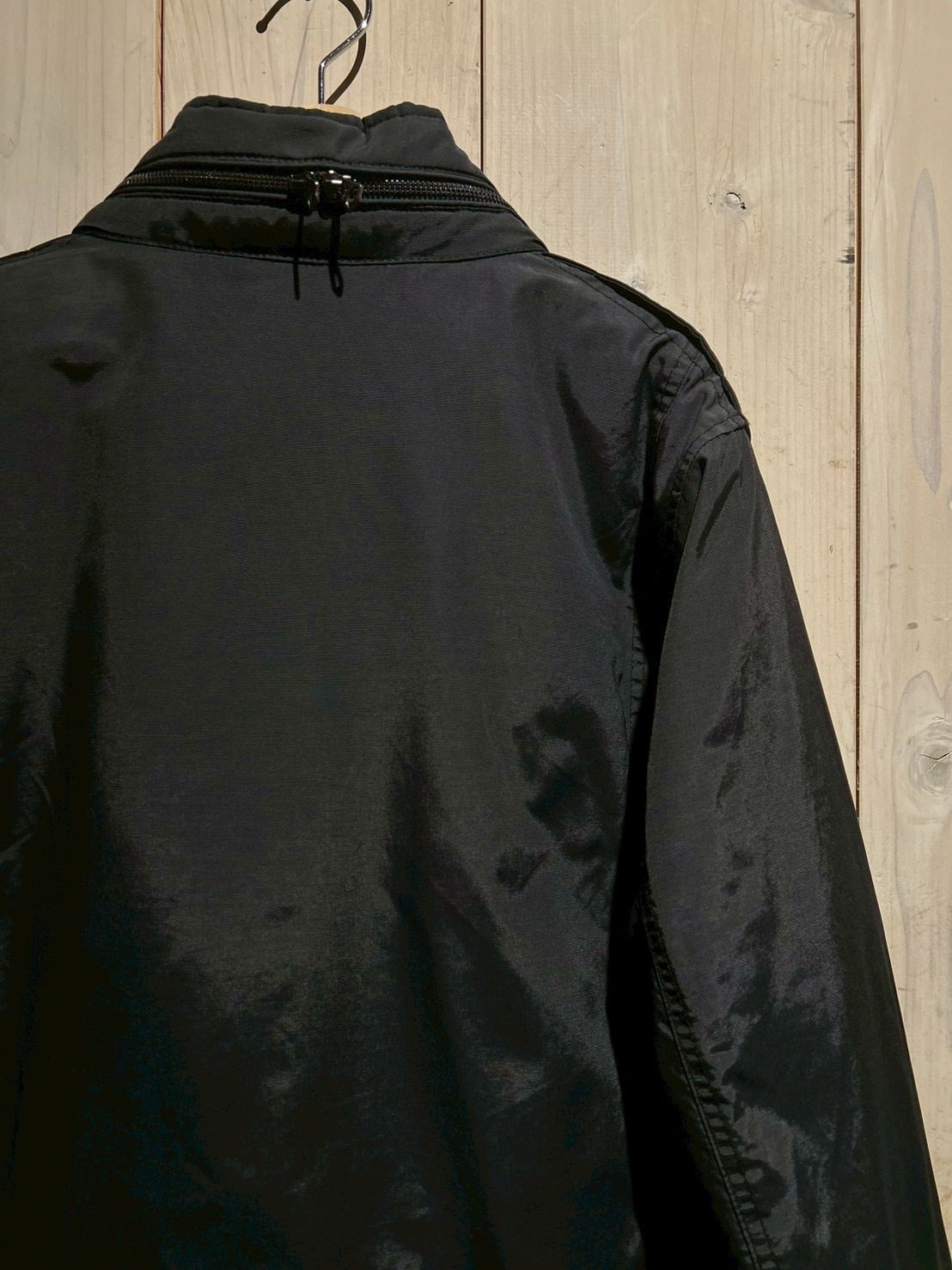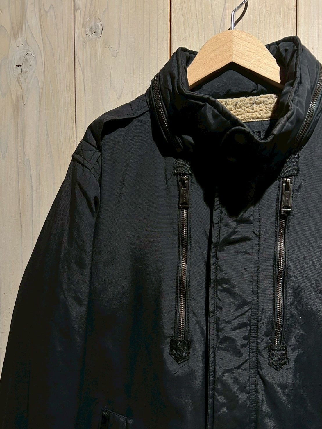 ミリタリーライクなフロントのジップポケット、袖に控えめに入る刺繍ロゴ、そして高めに立ち上がるネックデザインが武骨さと品の良さを両立させています。内部にはボアライニングをたっぷりと配置し、冬場でもしっかりと暖かい仕様。外側はナイロン×コットンのハリ感あるシェルで、タフに着れるのも嬉しいポイントです。