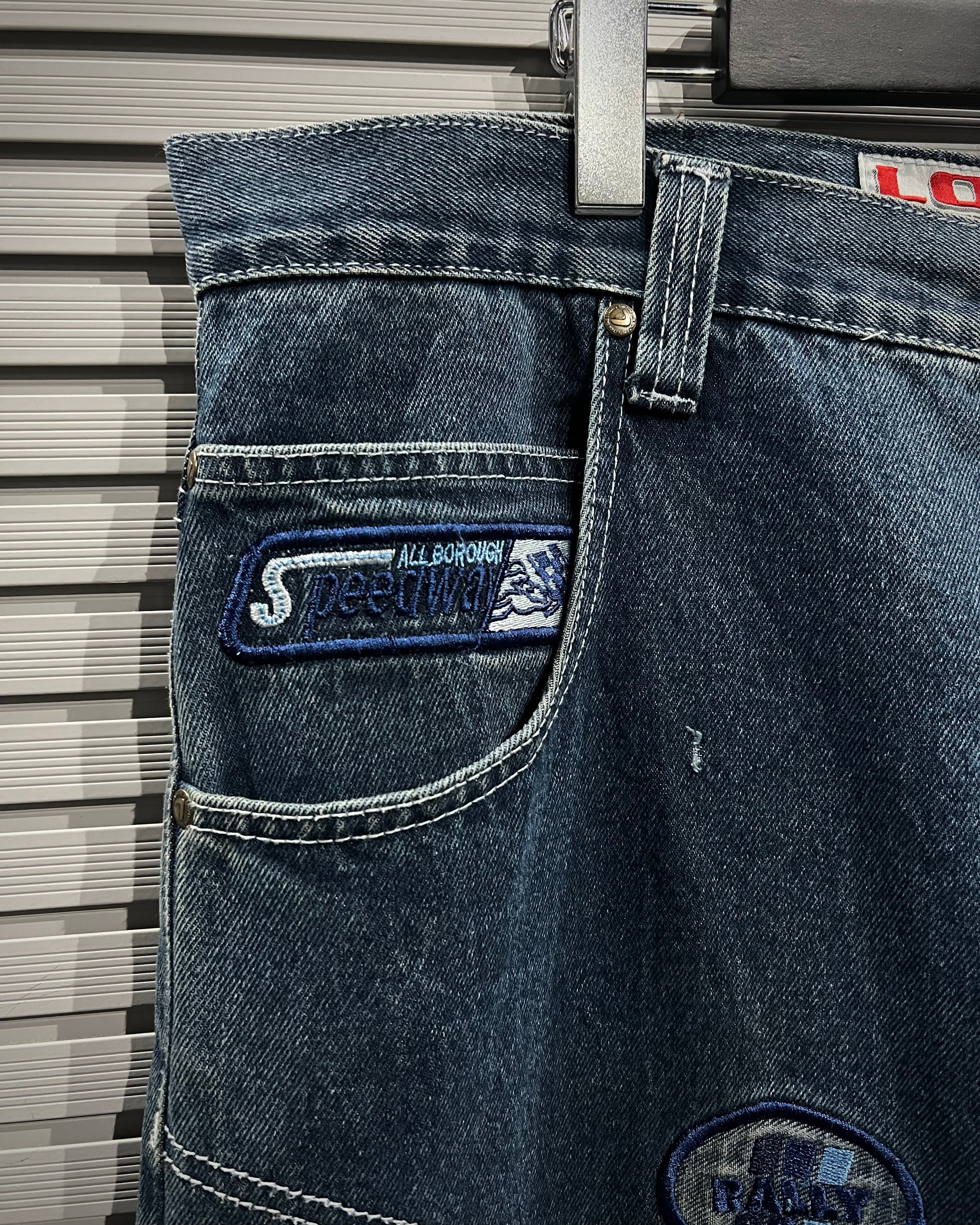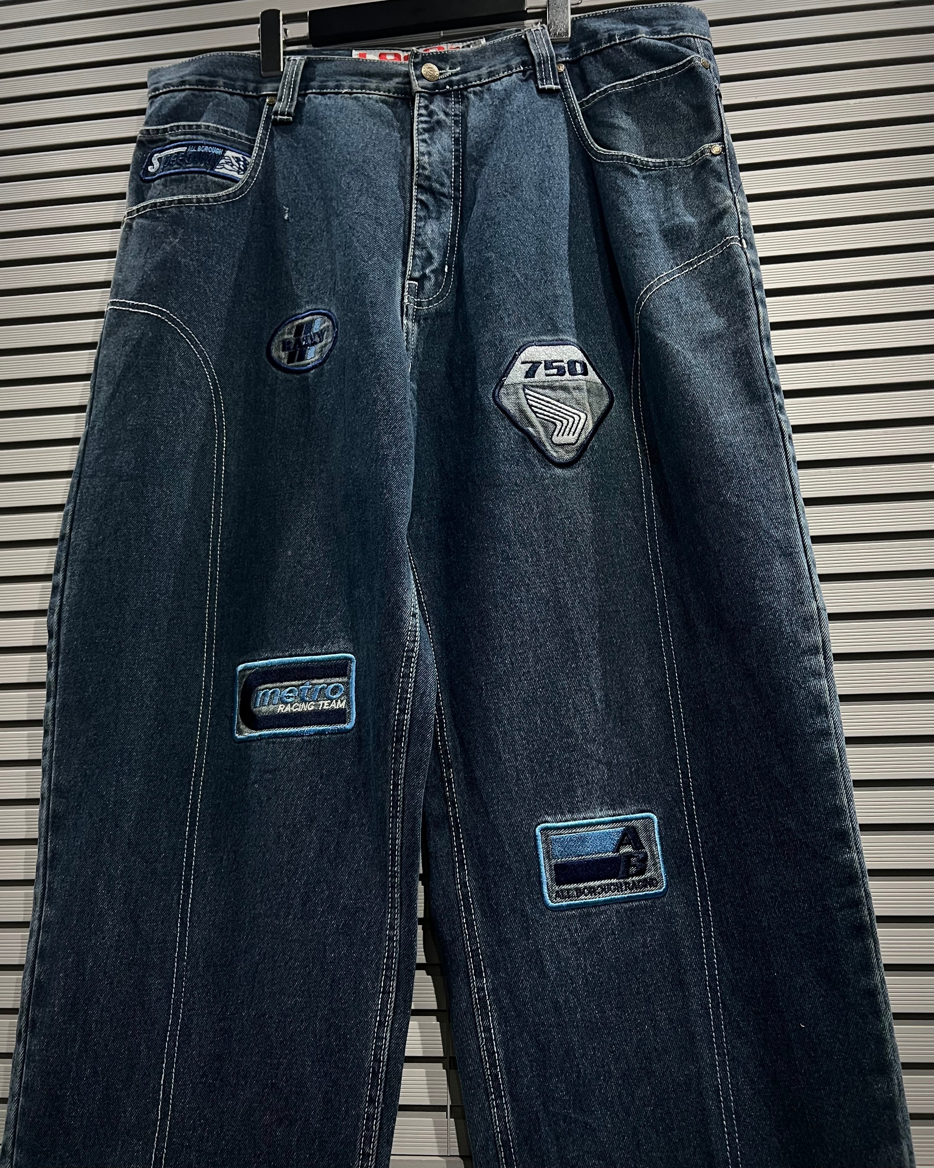 フロント全面に散りばめられたレーシング調のワッペンがとにかくキャッチー。スピードウェイやラリーモチーフなど、90'sストリートの香りを纏った意匠が並び、一本で圧倒的な存在感を放ってくれます。
