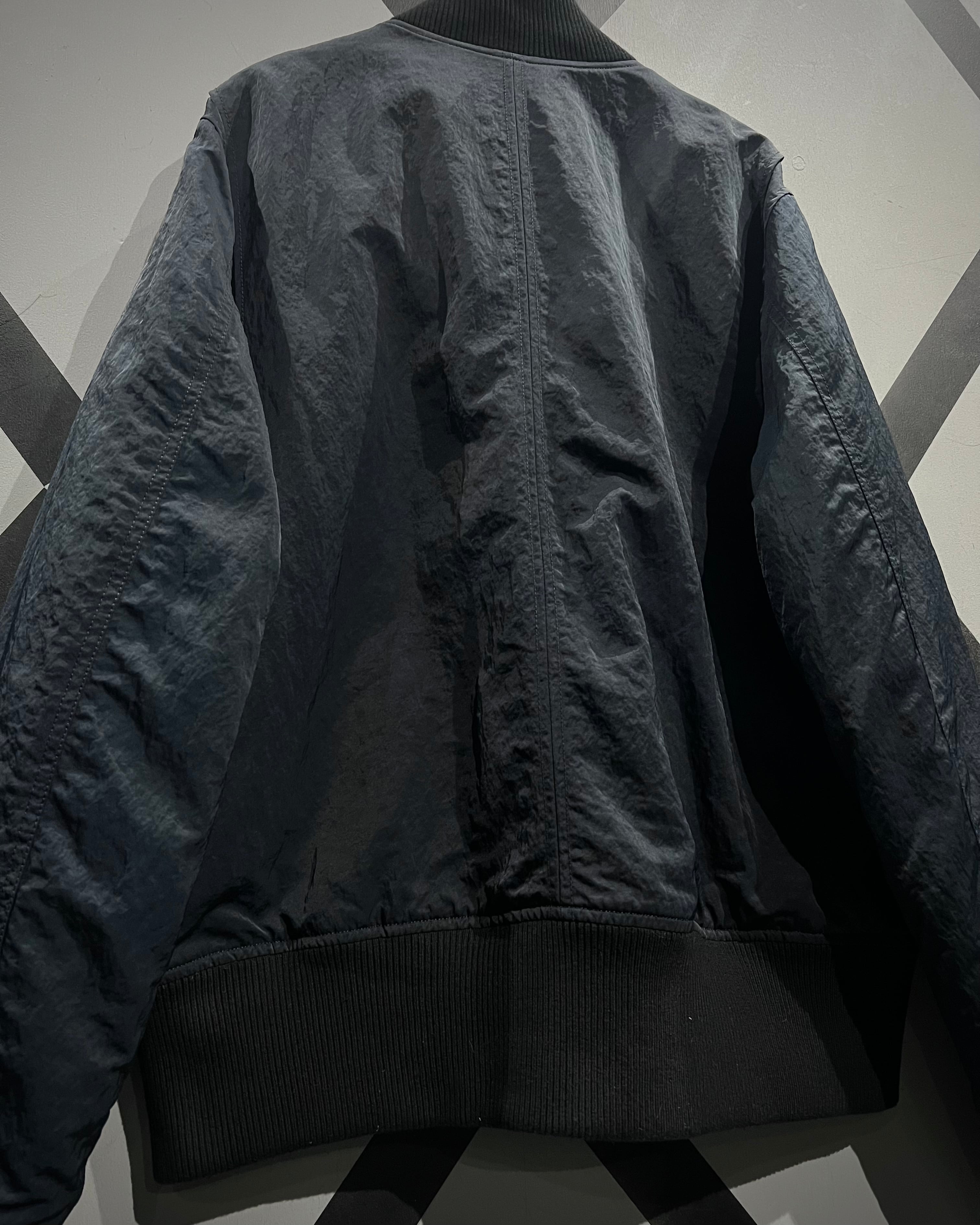 フロントには大ぶりのフラップポケット、肩周りにはアクションプリーツと、フライトジャケットならではのディテールを踏襲しながらもミニマルな仕上がりに。
