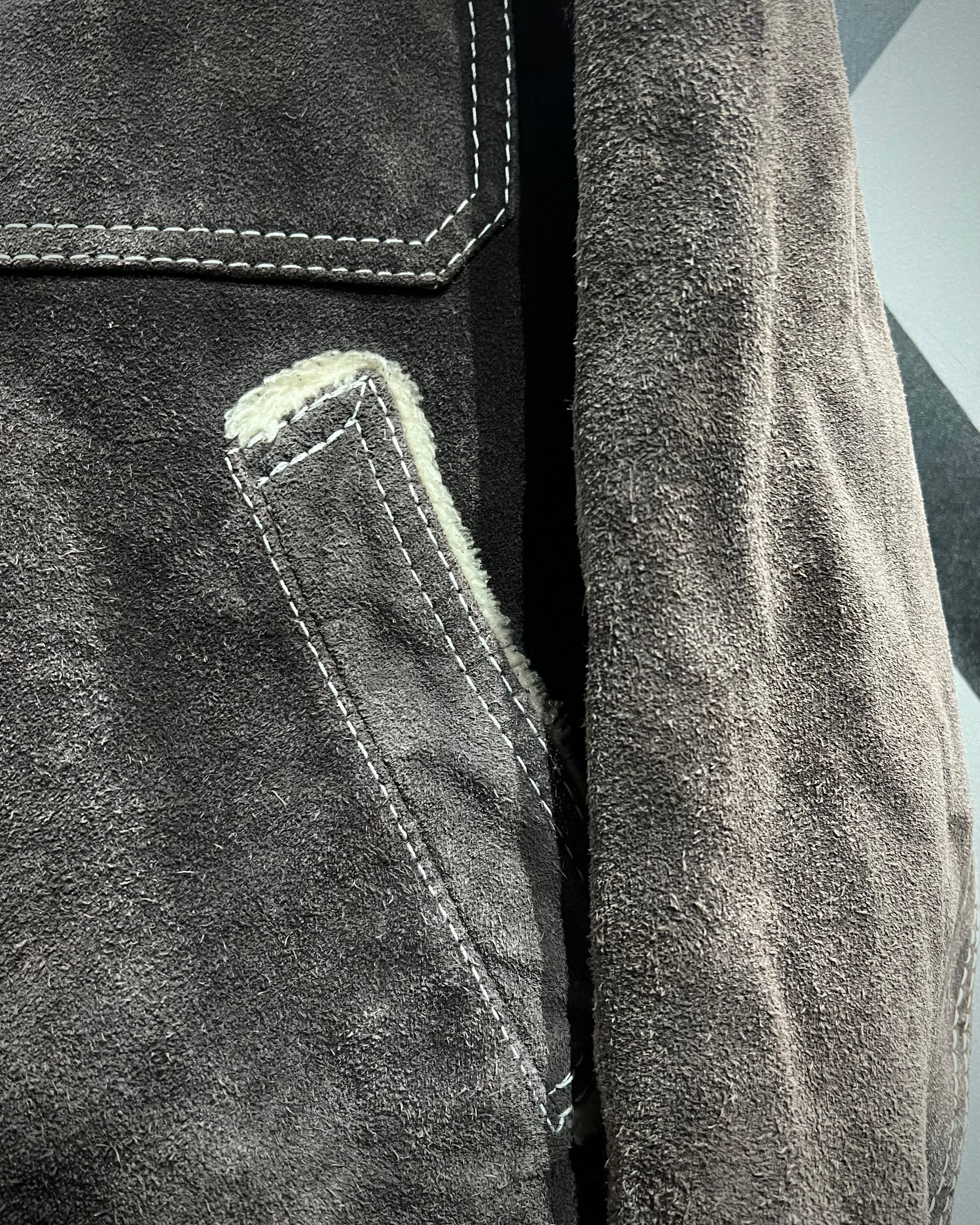 ボディはスエードの豊かな起毛感が際立ち、着込むほどに深みが増す表情。