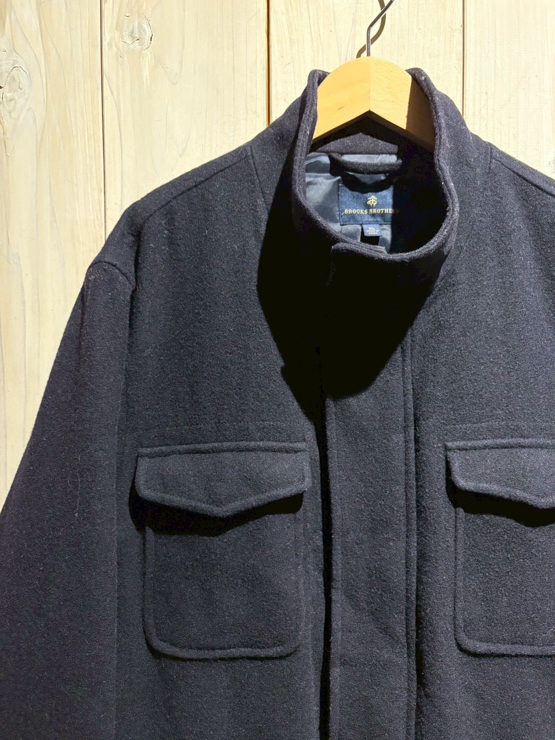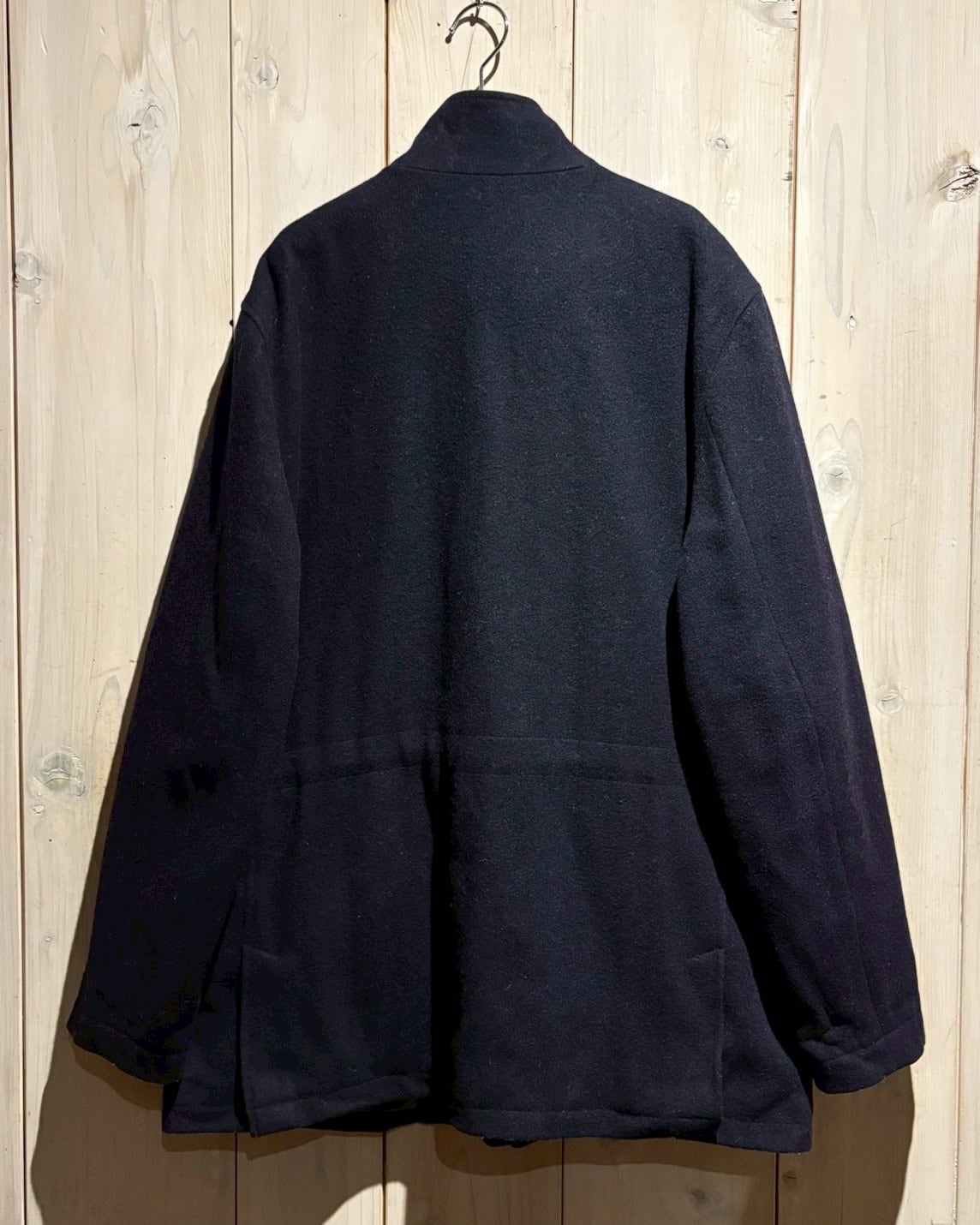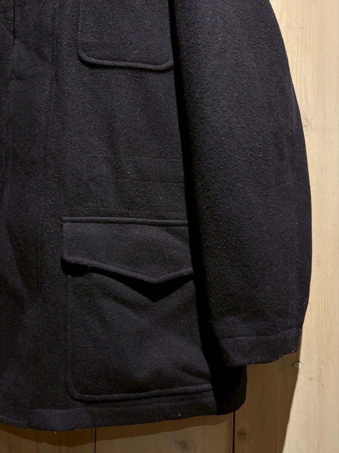 深みのあるネイビートーンのウールボディは上質な重厚感を宿しながらも、無骨な4ポケット仕様によってミリタリー的なエッセンスをプラス。前立てはスナップ+ジップの比翼仕立てでミニマルに仕上げられています。