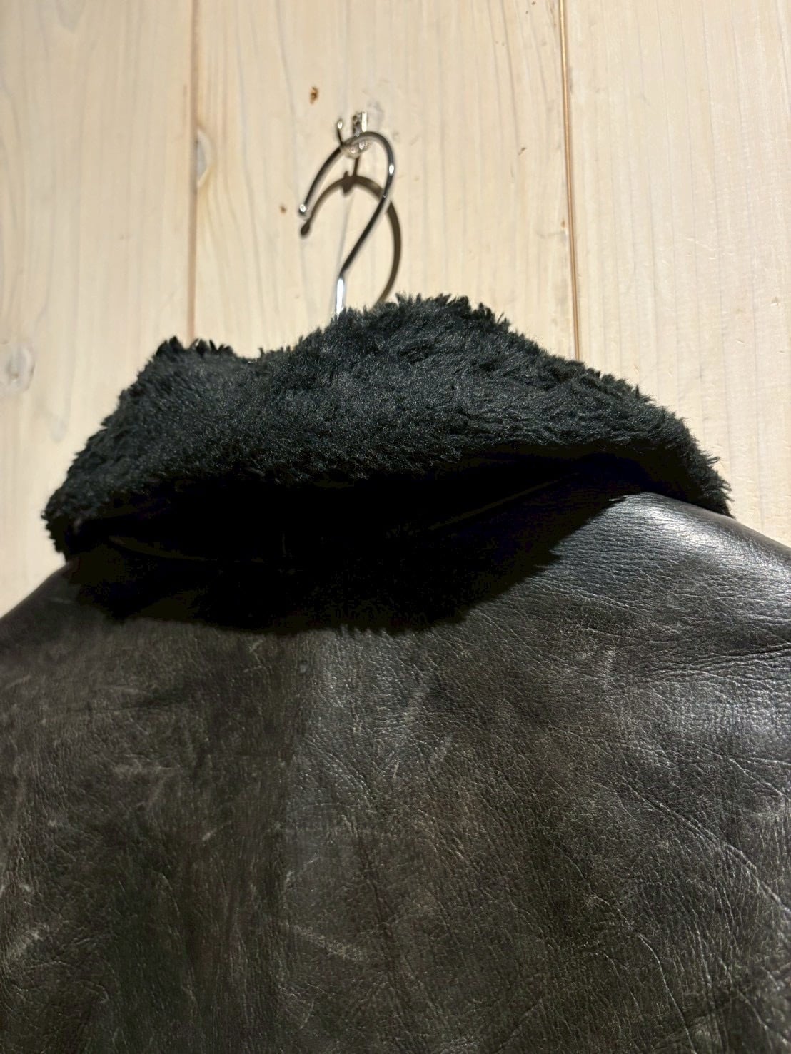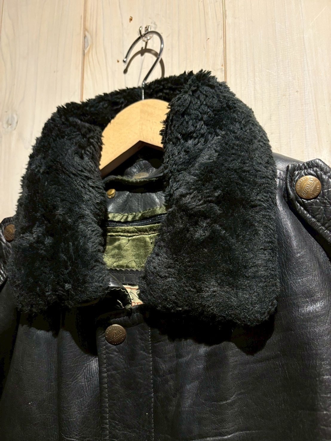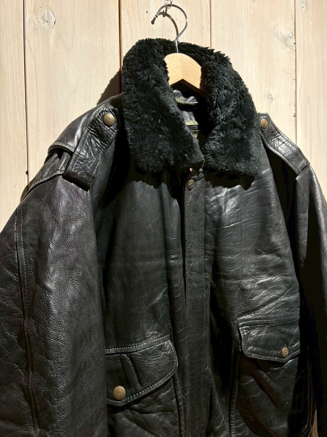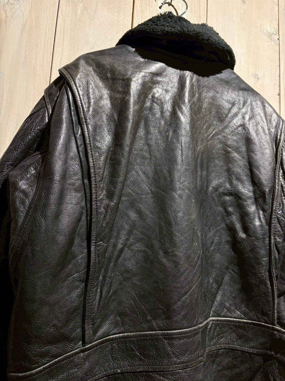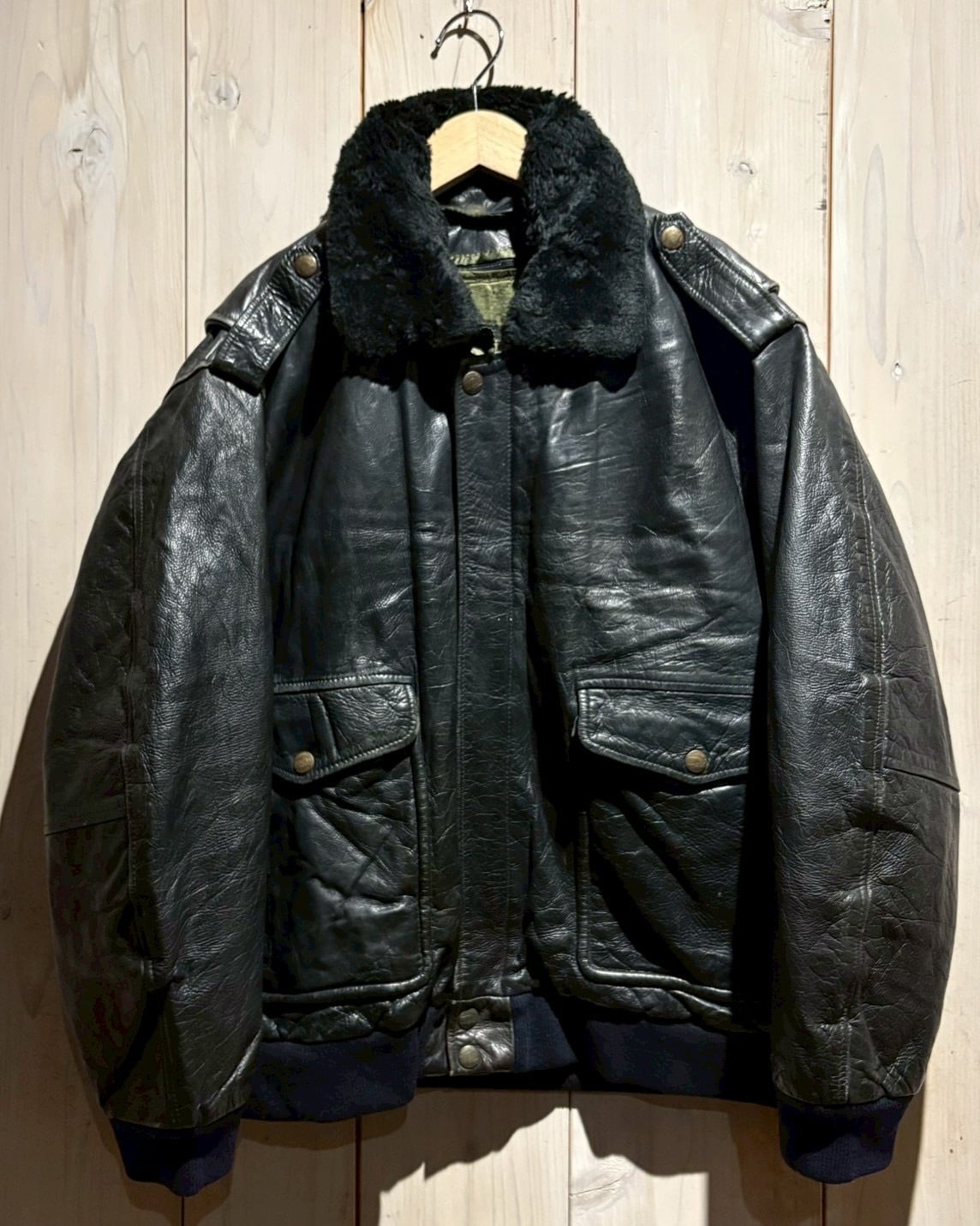 重厚なレザーの質感とミリタリー由来の無骨なシルエットが際立つ、G-1タイプのレザーフライトジャケット。