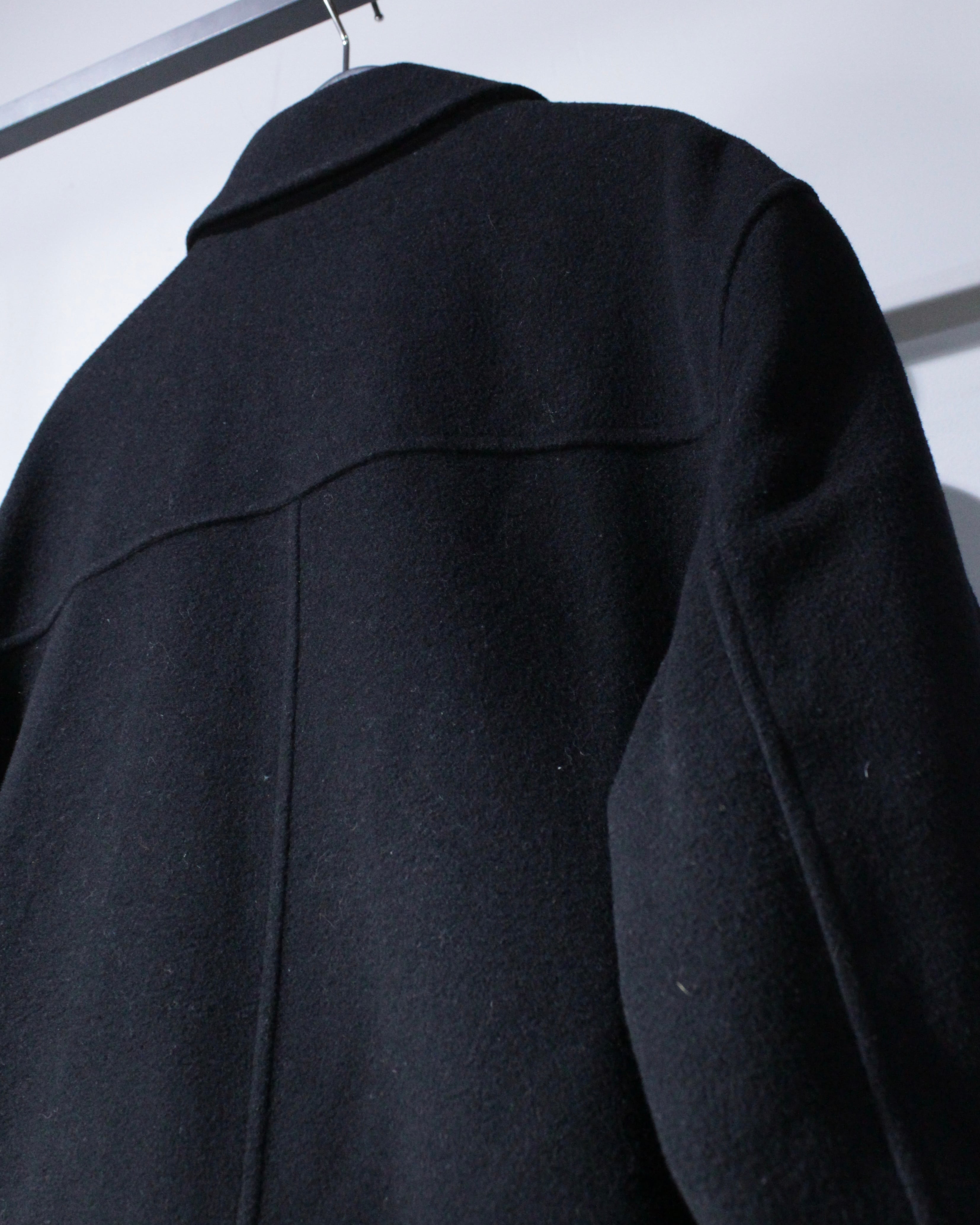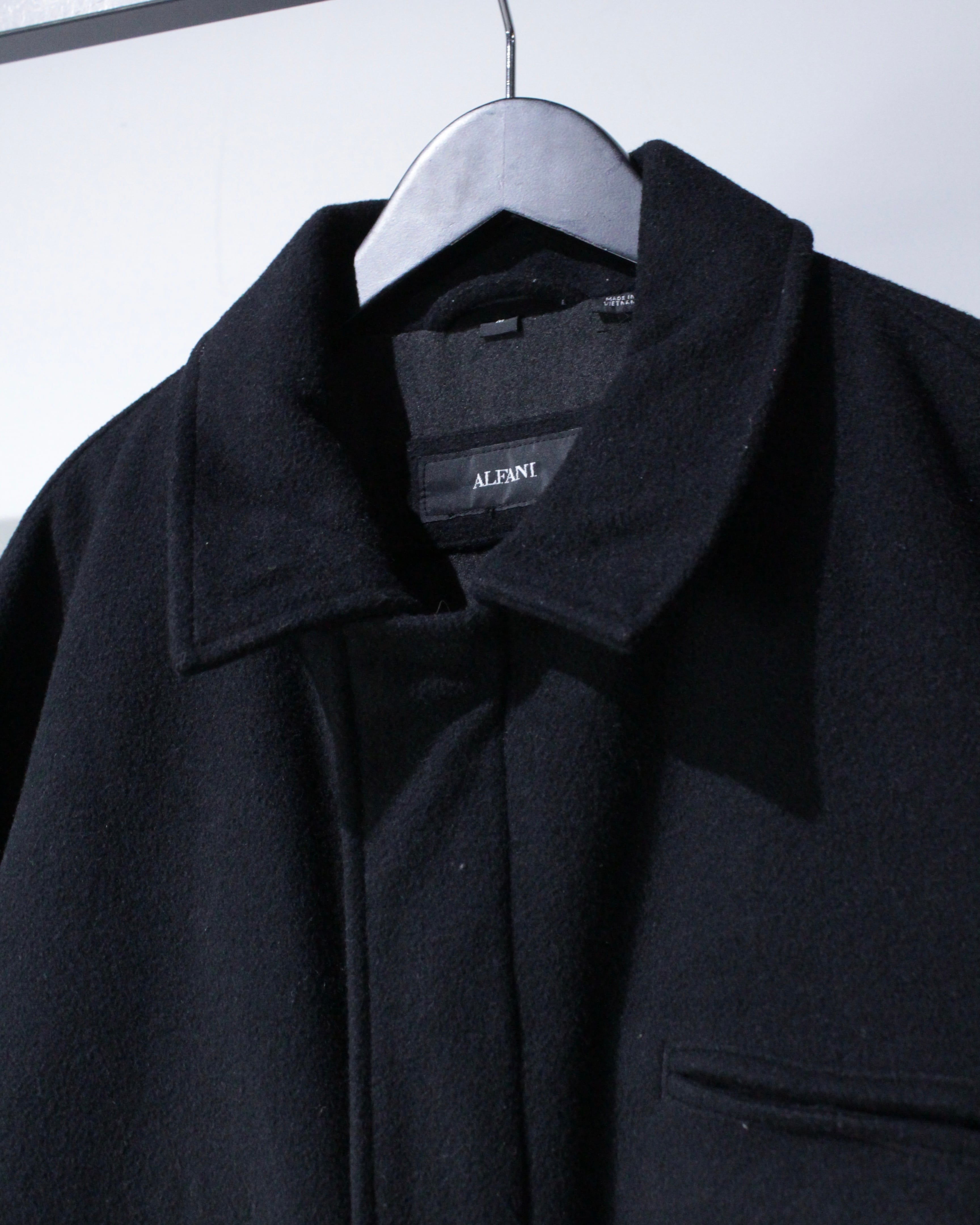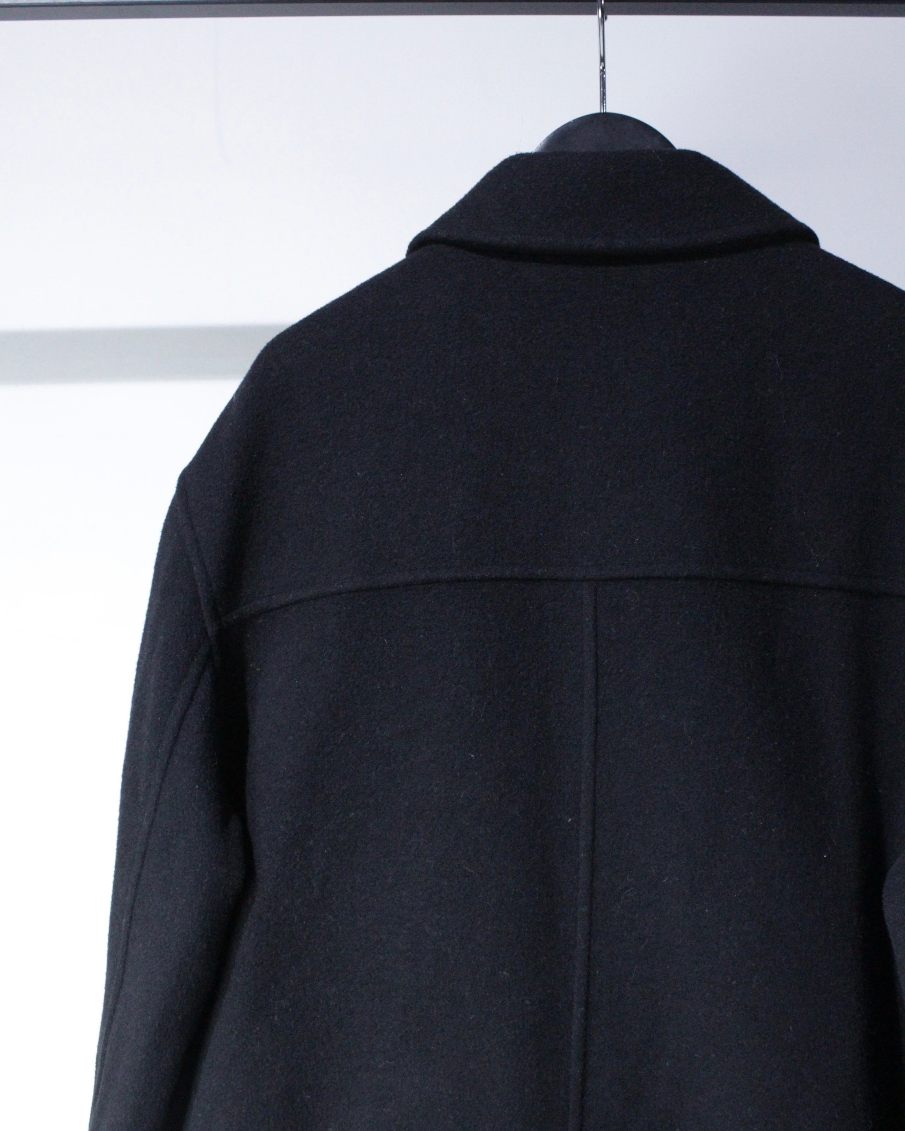 柔らかなウール特有の起毛感が光を優しく吸い込みながら深い黒を描き、袖を通した瞬間に分かる快適さと温かみが◎
