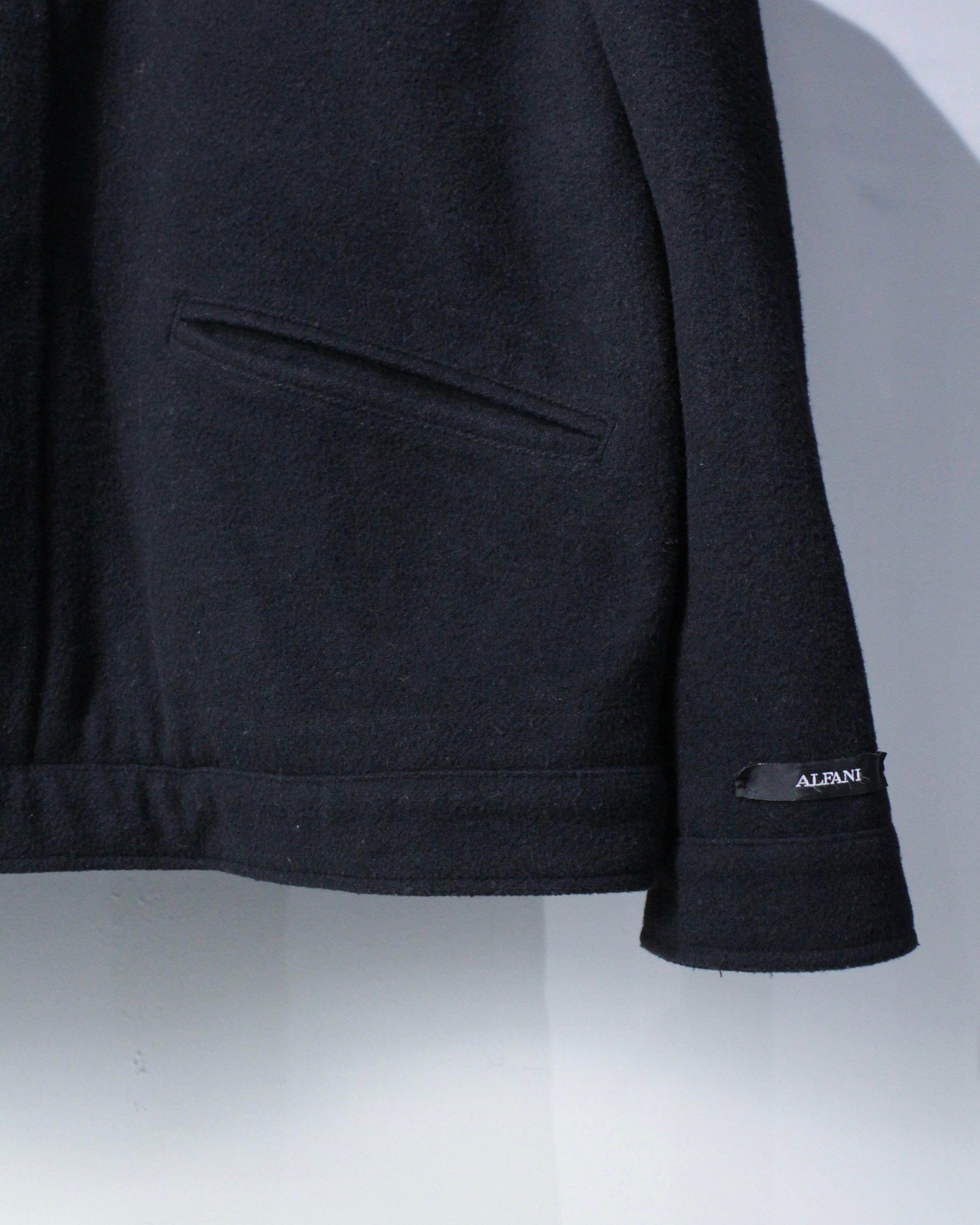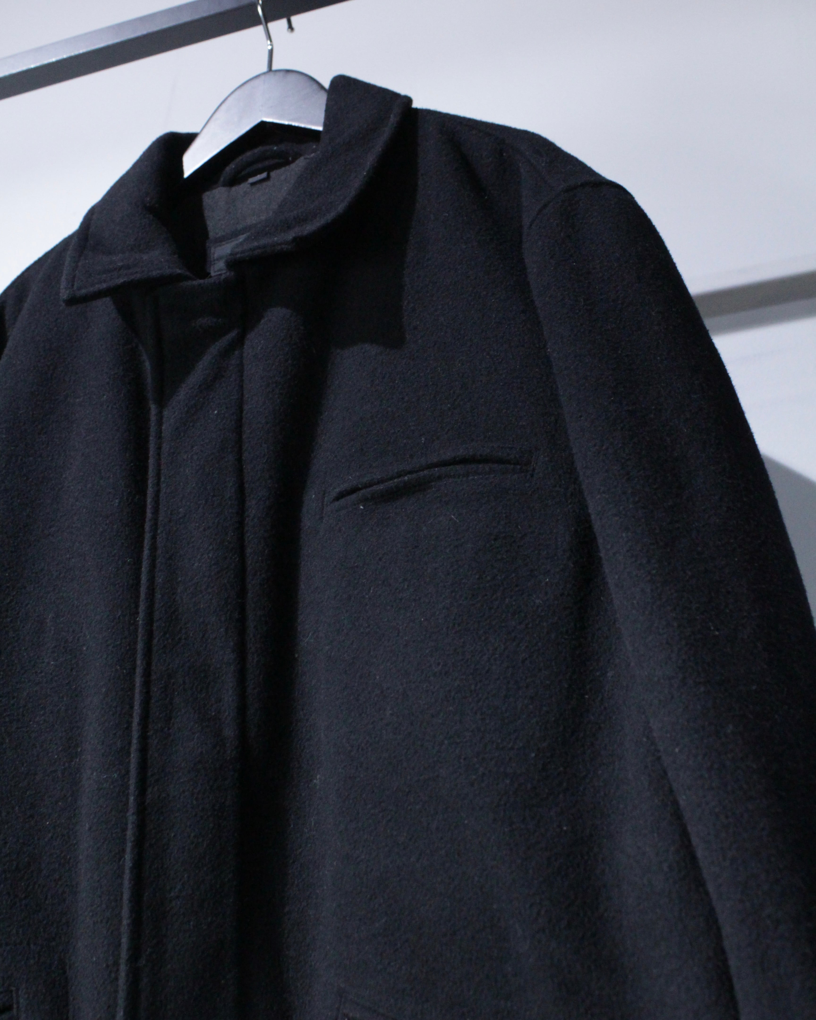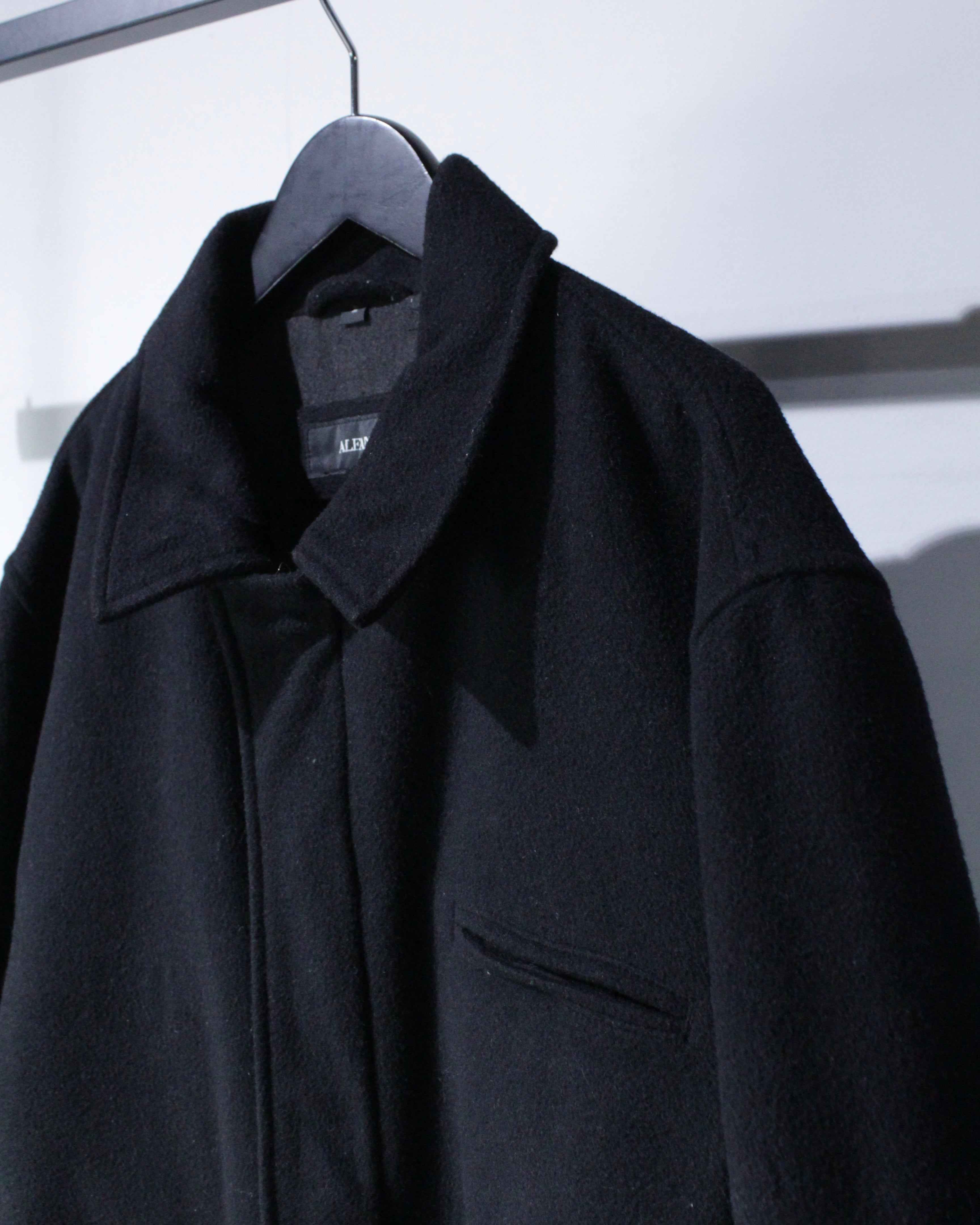 柔らかなウール特有の起毛感が光を優しく吸い込みながら深い黒を描き、袖を通した瞬間に分かる快適さと温かみが◎