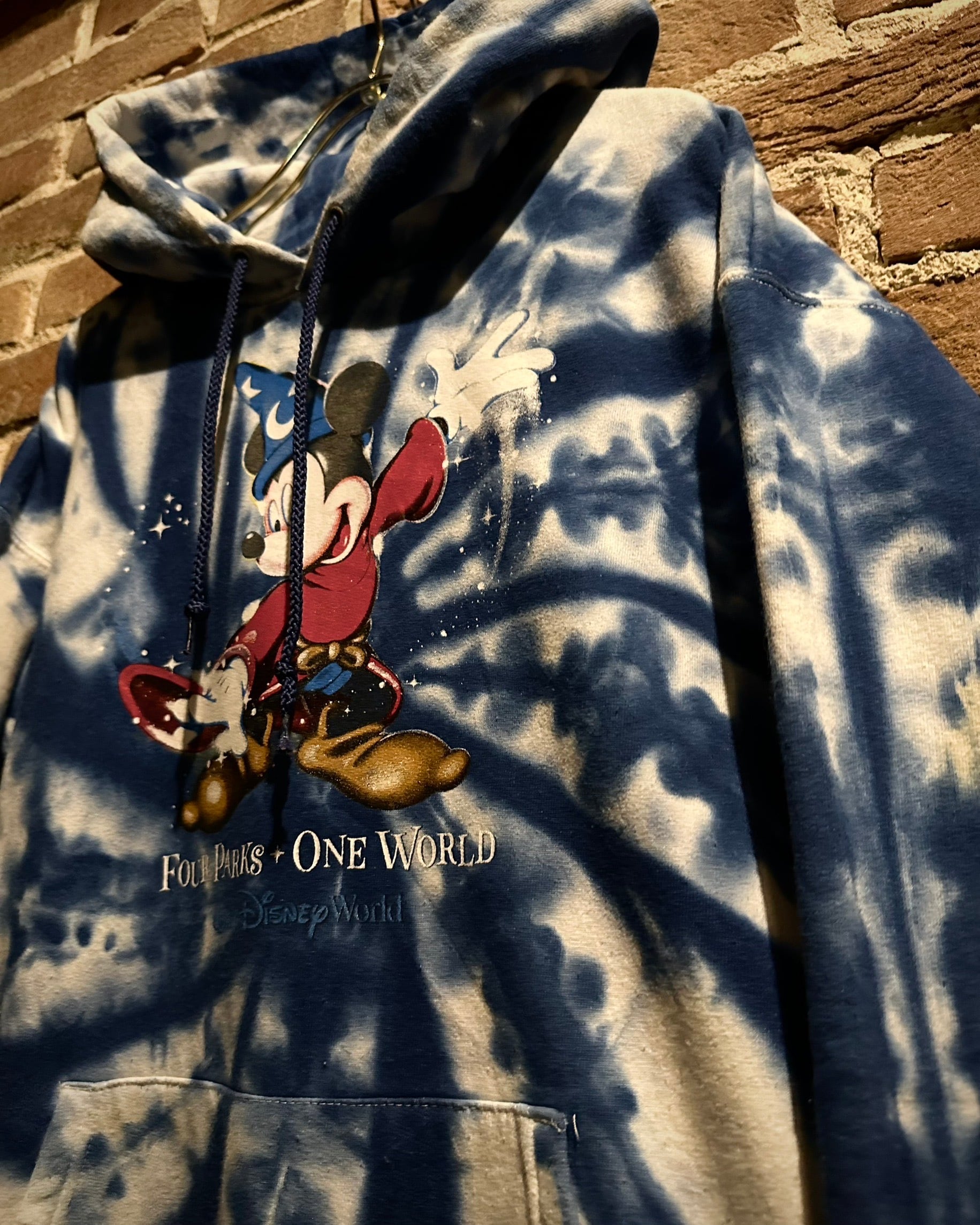 大変ご好評いただいている“Disney”アイテムより、ブルー×ホワイトのタイダイ染めが目を惹くプルオーバーフーディ。