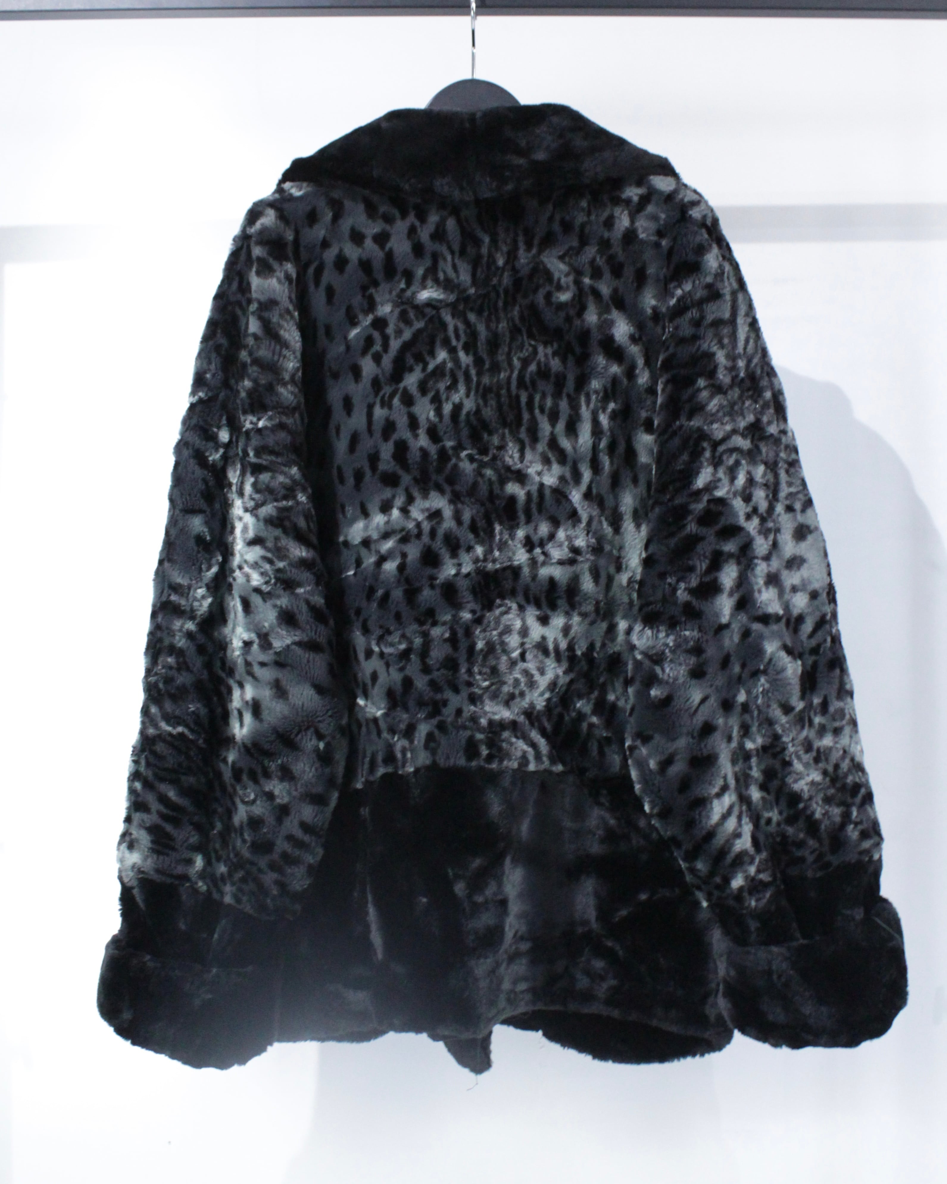 レオパード柄と深みのあるブラック無地を大胆に切り替えた、存在感抜群のファージャケット。