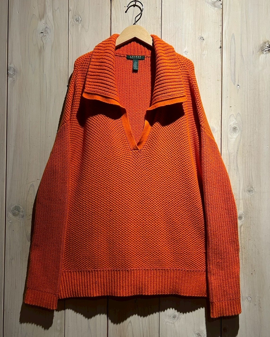 鮮やかなオレンジの色味が抜群に映える、“LAUREN Ralph Lauren”のスキッパーニット。