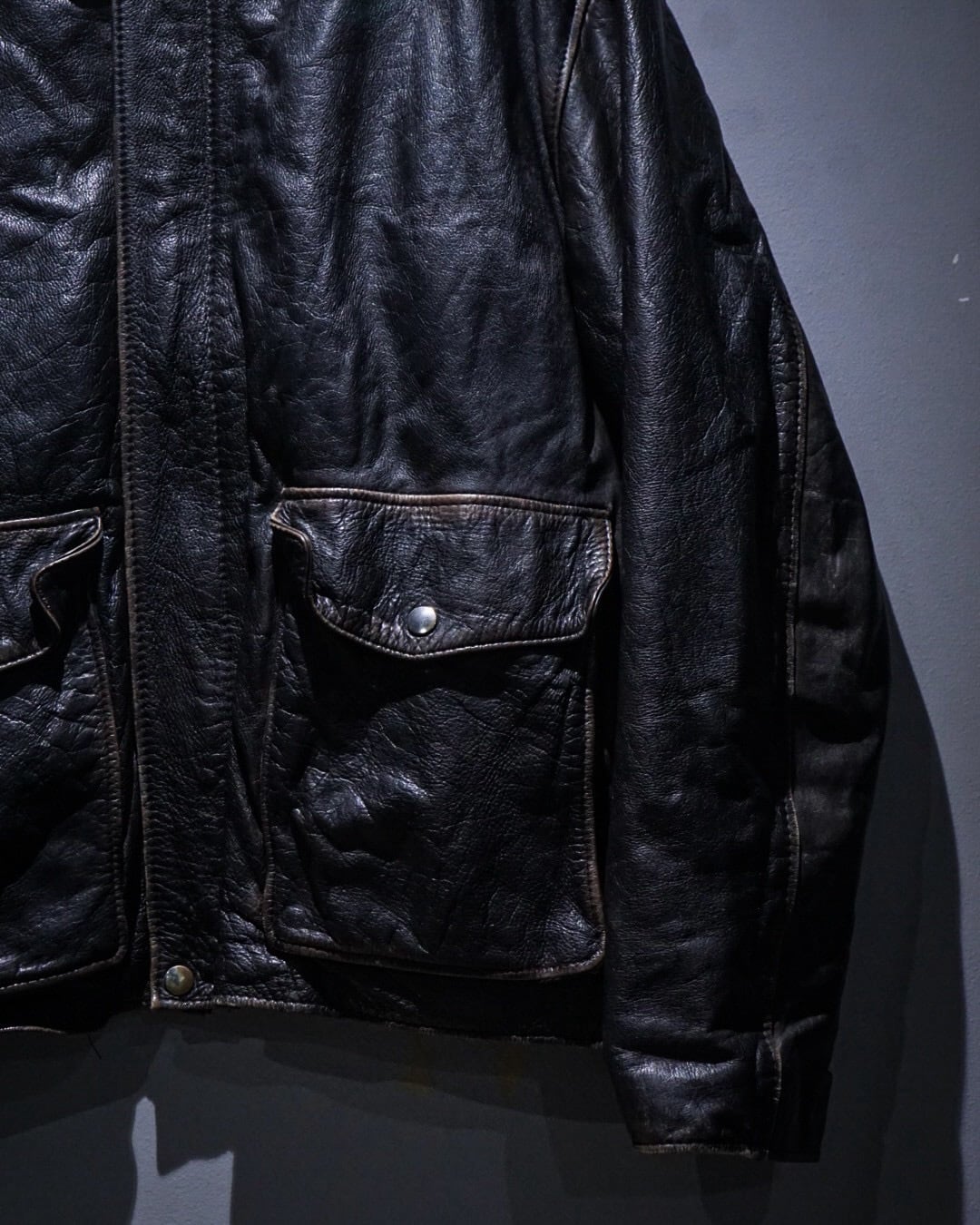 フライトジャケットをデザインソースに仕上げられた、フェード感の素晴らしいヴィンテージレザージャケット。
