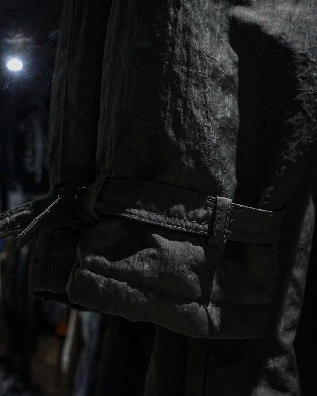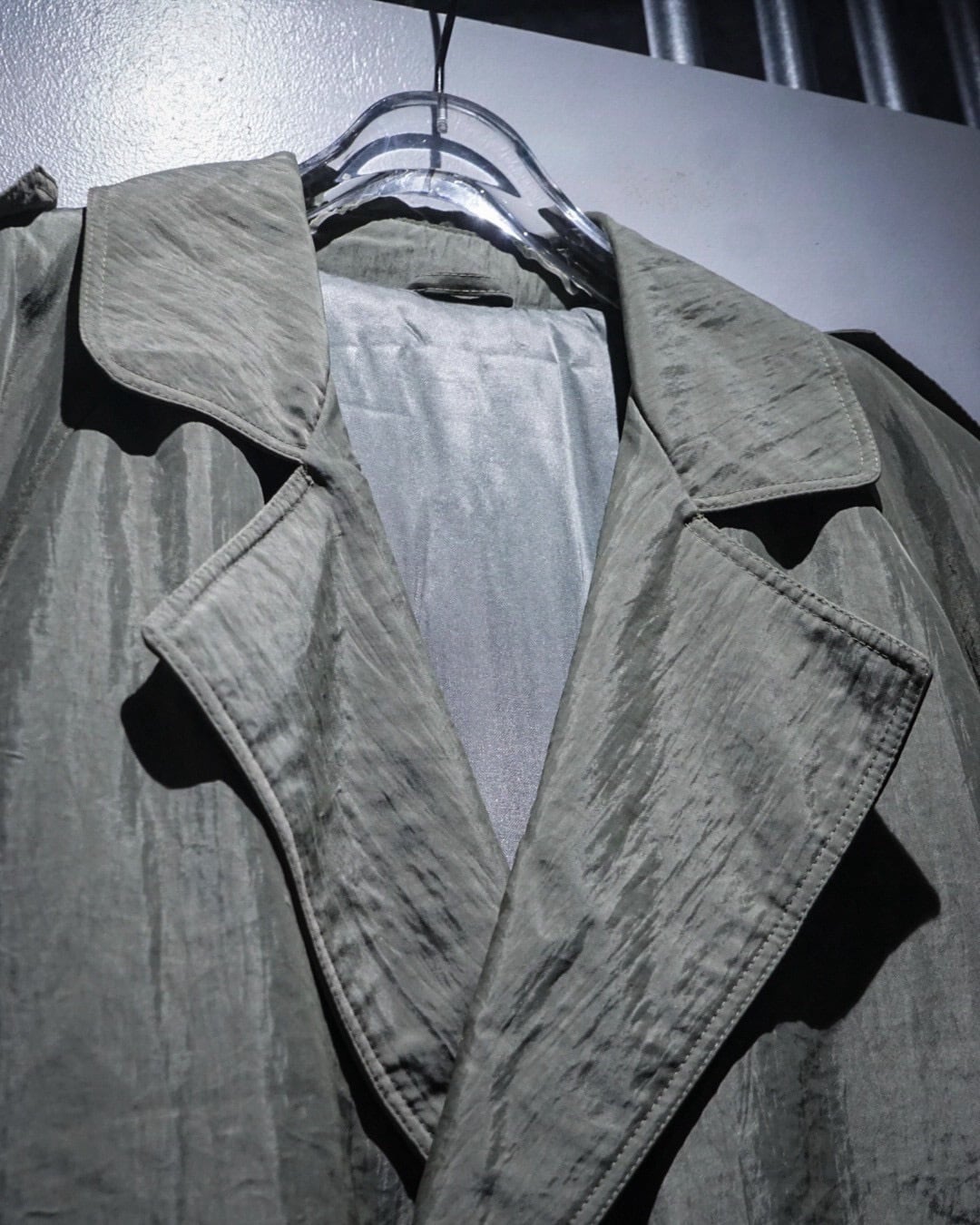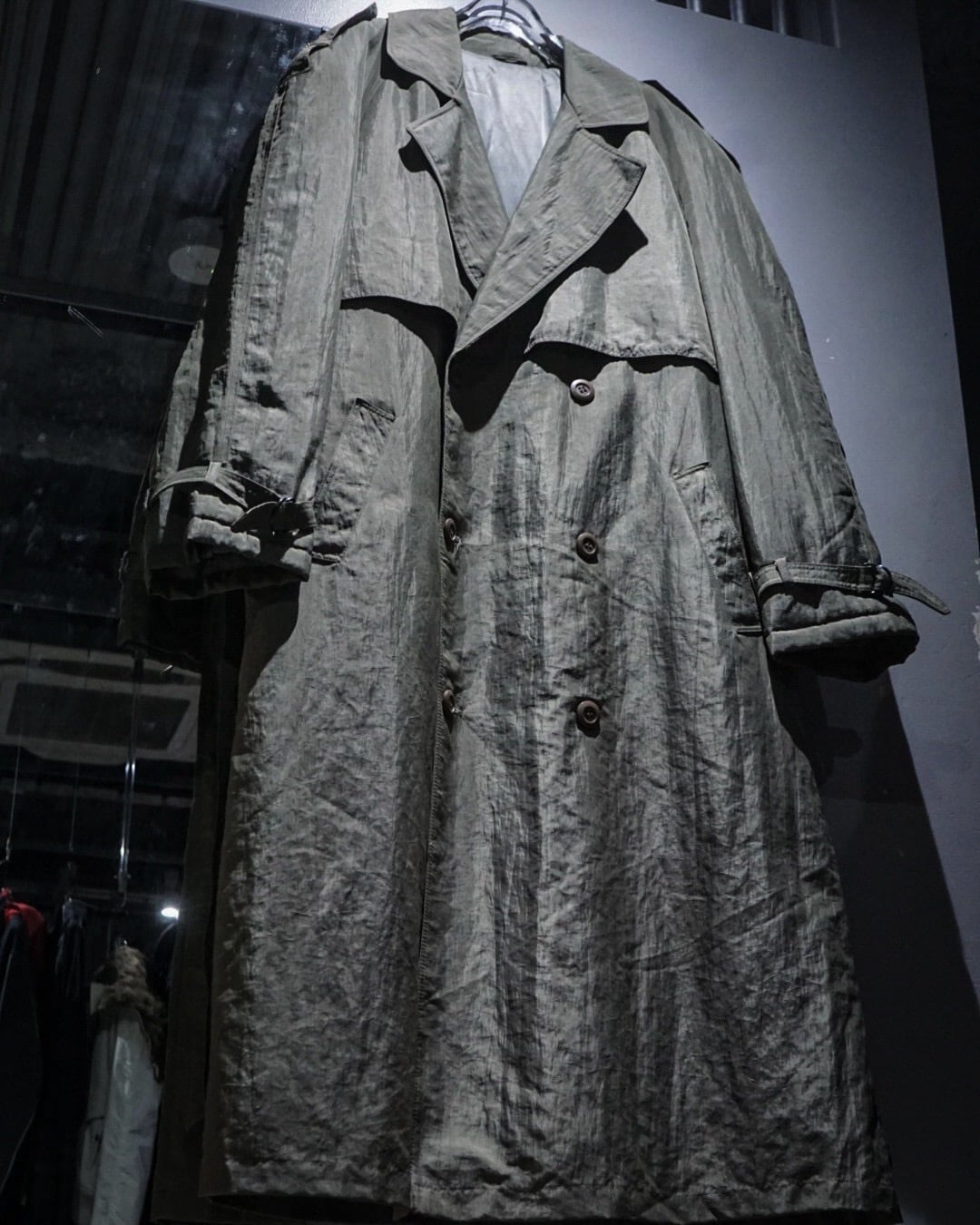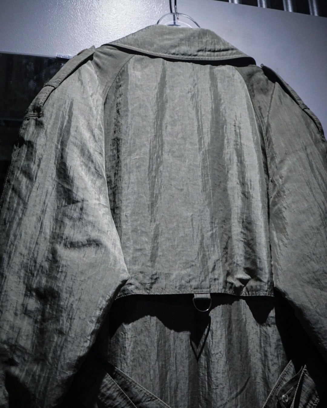 定番のツイル織りの個体が素晴らしいのはもちろんですが、こちらはトレンチらしい重厚さは残しつつも、ナイロン特有のシャリ感、光沢、落ち感を最大限に活かした素晴らしいプロダクト。