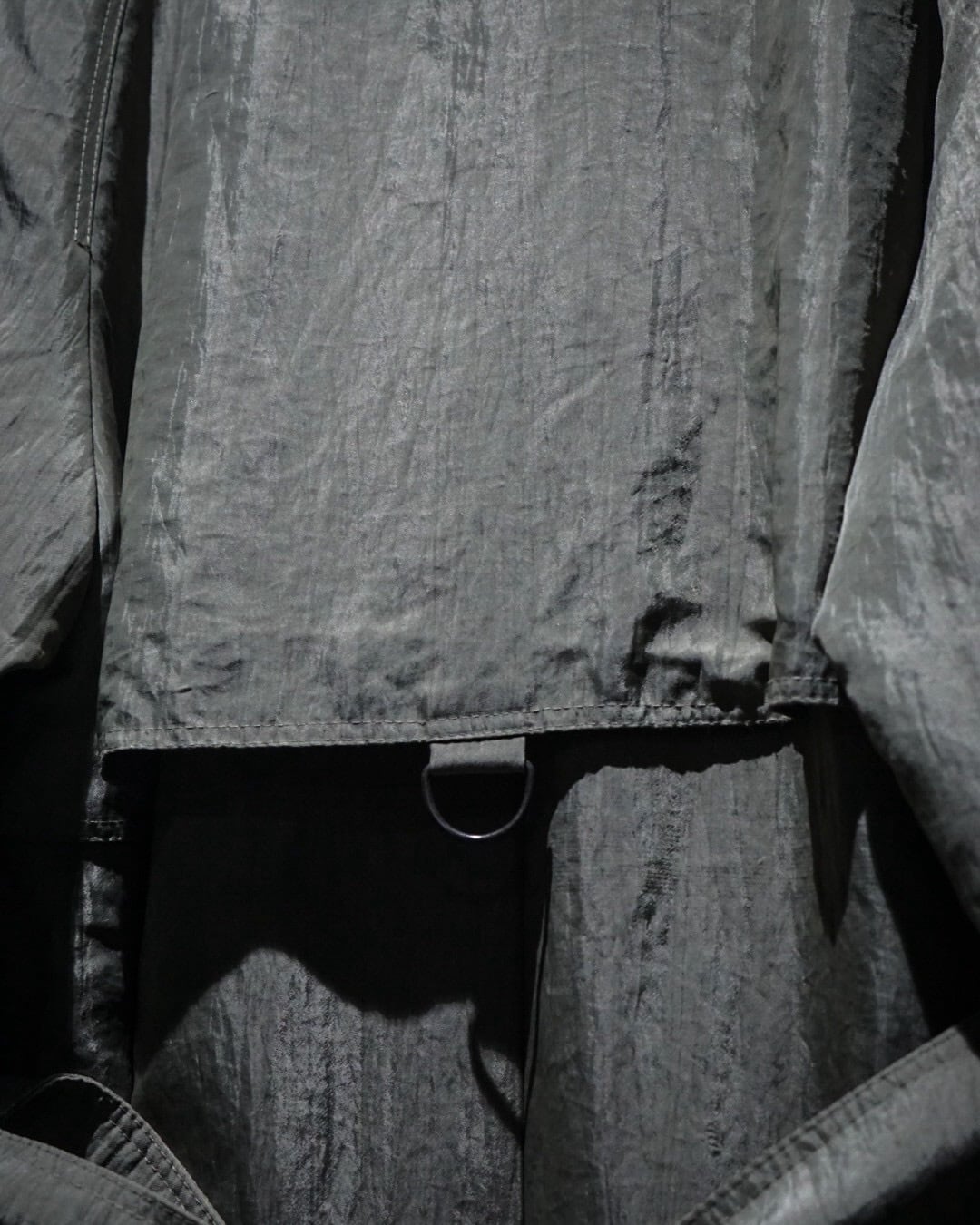 ガンフラップ、エポレット、アンブレラヨークなどクラシカルなディテールはしっかりと作り込まれながら、ナイロンで仕上げたことでモードなアイテムへと昇華。