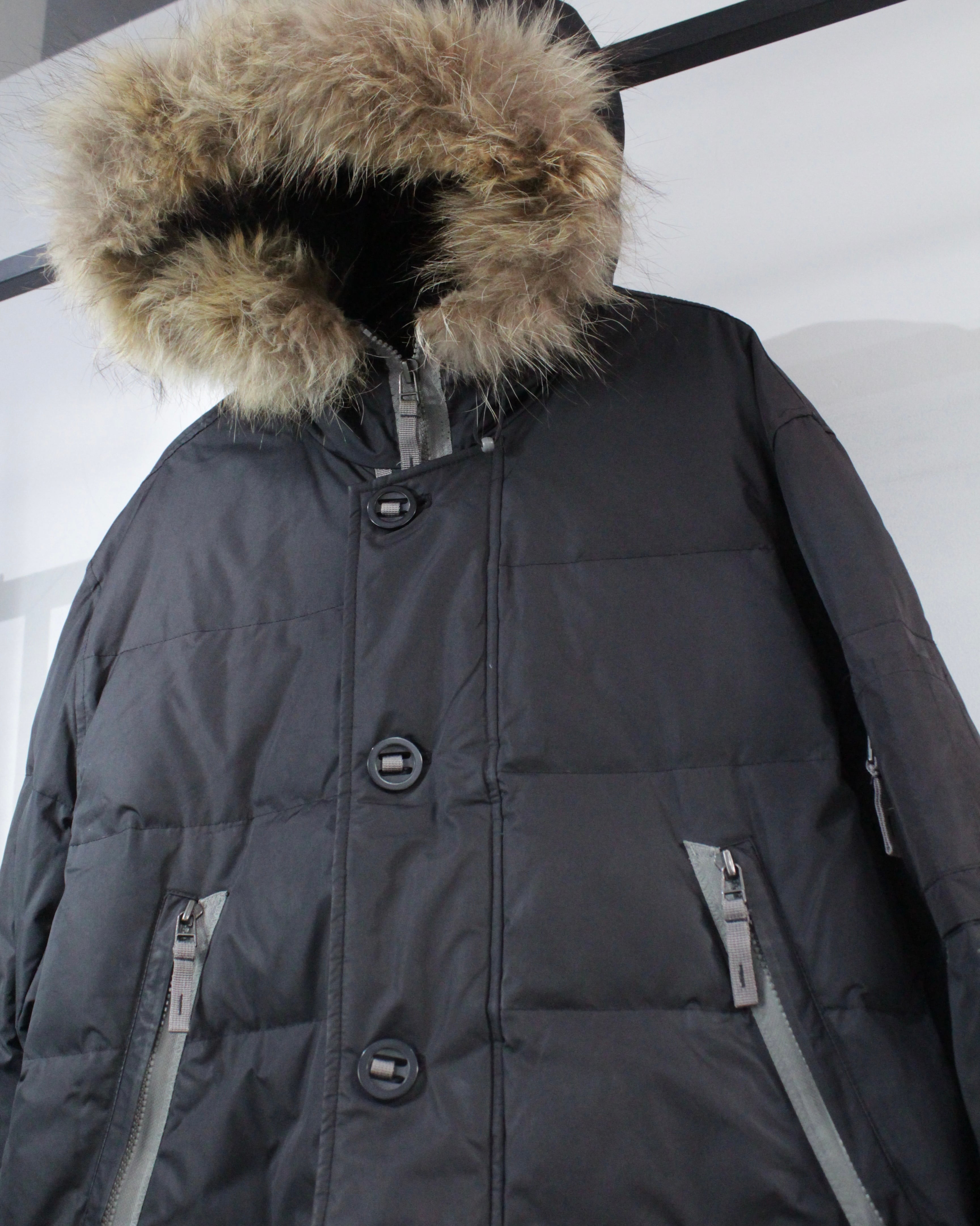 ボディは軽量なナイロンにダウンをたっぷり封入し、見た目以上の暖かさを確保。フード周りにファーを施し、ドローコードもあるので頭までしっかりと冬の寒さから守ってくれるかと。