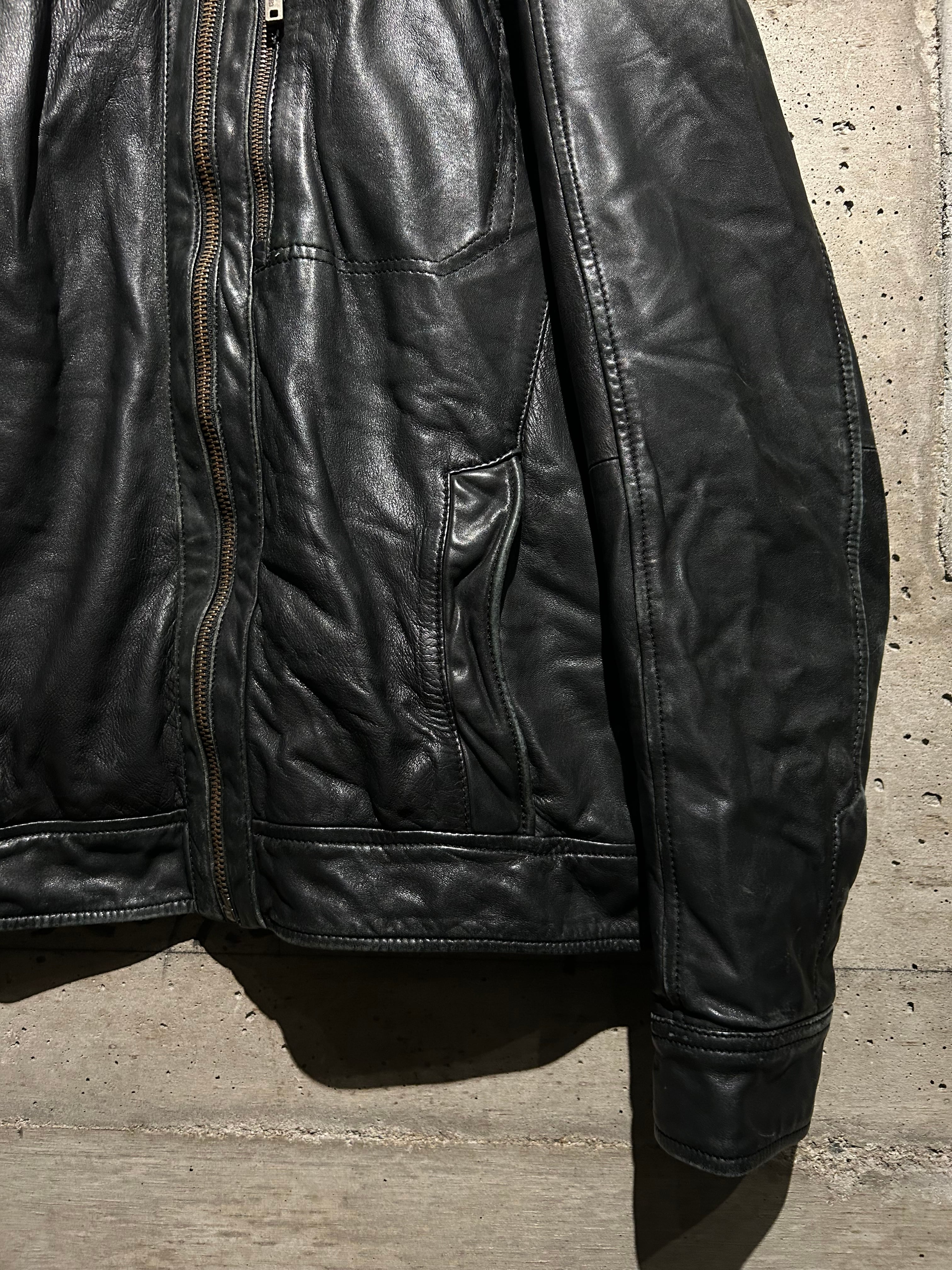 無骨さと上品さを併せ持ったレザージャケット。しっとりとした質感のレザーボディは経年で深まった奥行きあるブラックが魅力で、どの角度から見ても色気を纏った佇まいに仕上がっています。