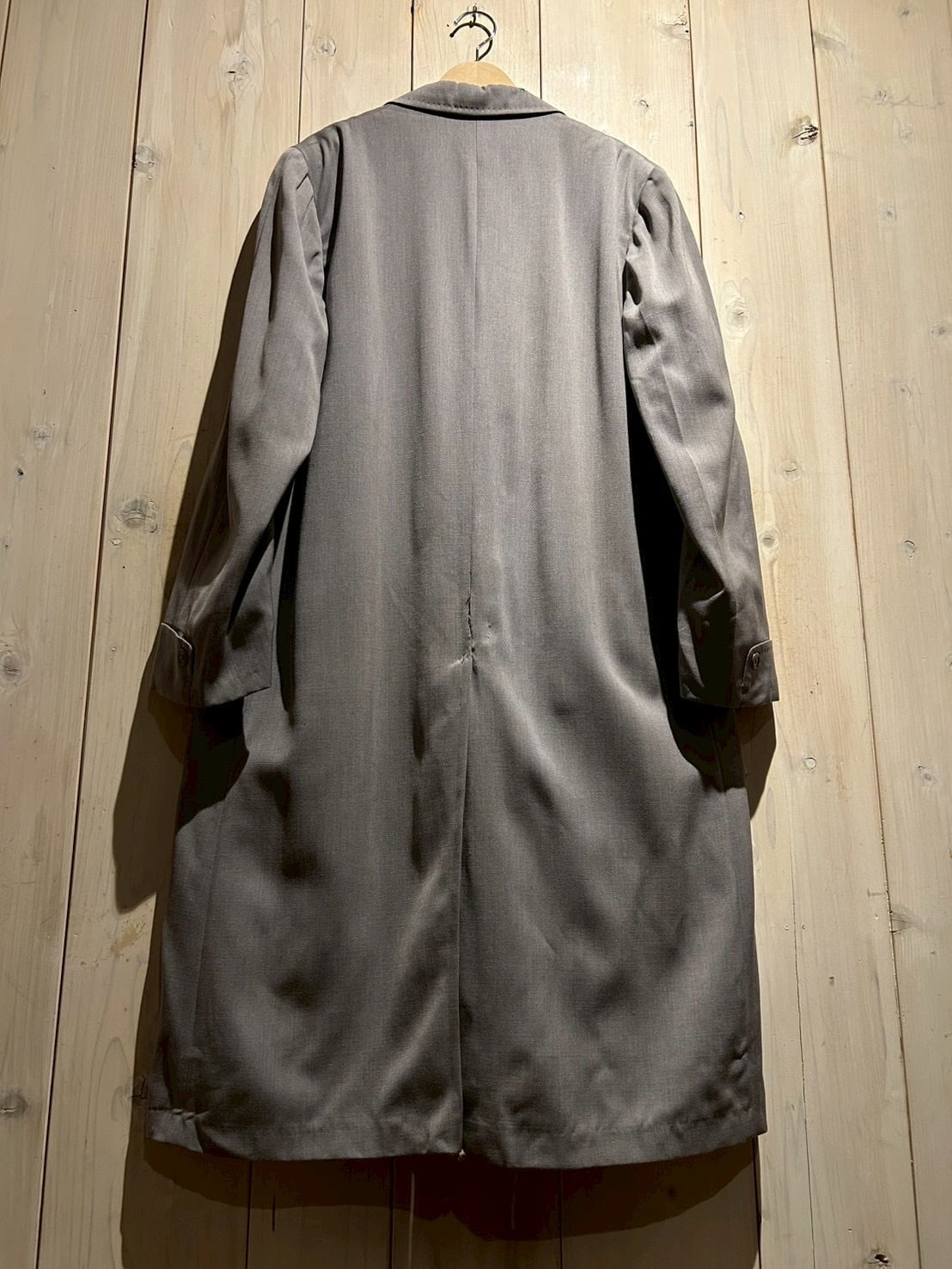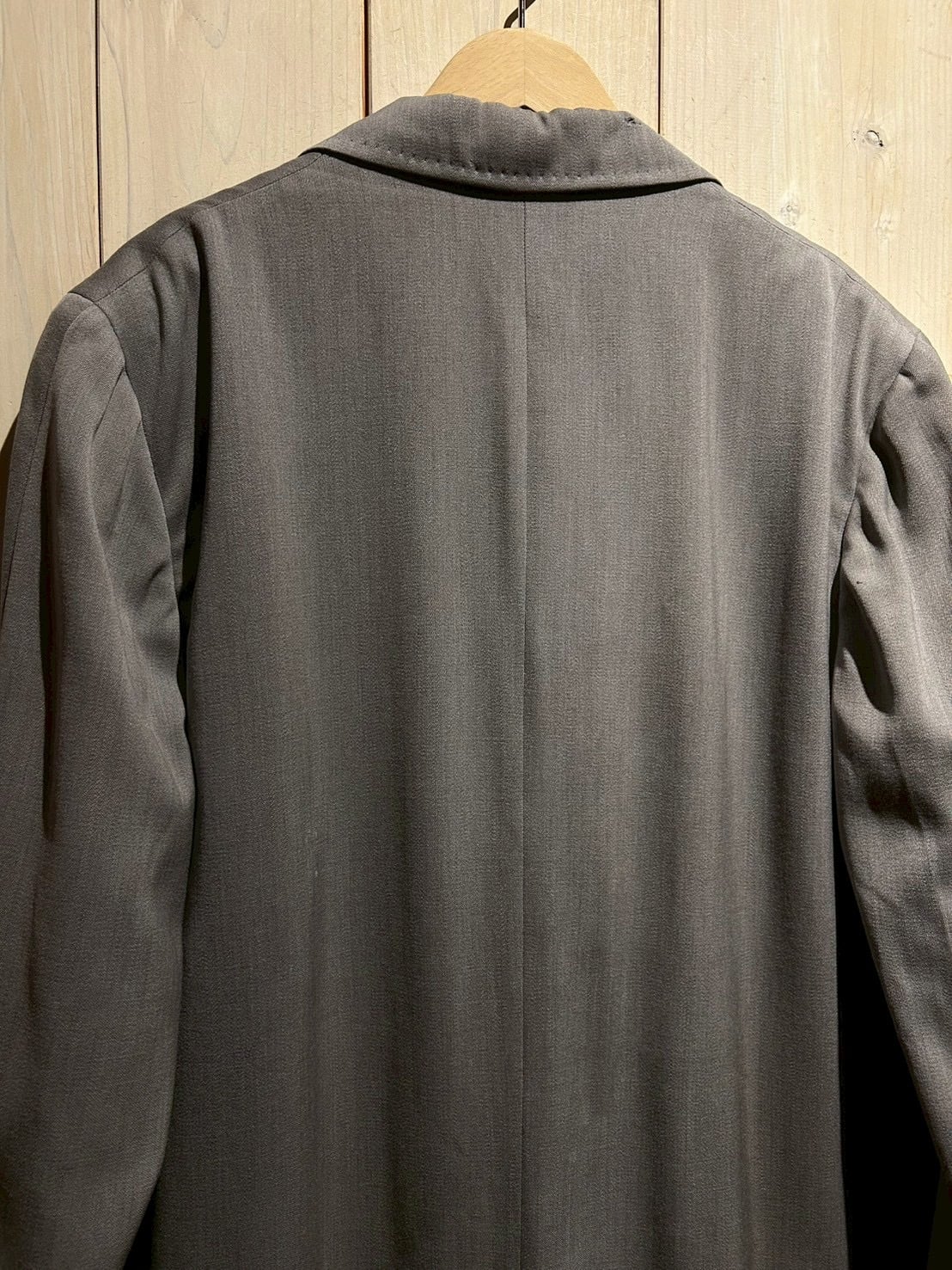 ラペル周りの細かなステッチ、緩やかに縦へと落ちるシルエット、ミニマルなフロント。シンプルながらもヴィンテージならではの雰囲気がムンムン。