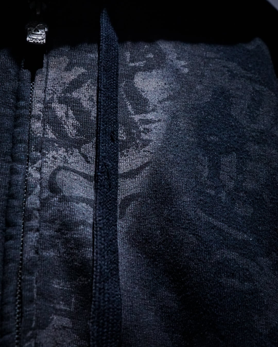 レーシングウェアならではのテクニカルなアイテムが主流のこちらのブランドですが、いつもとは異なるダークな雰囲気に仕上げられた稀有な個体です。ジップトップのスカルのアクセントも◎