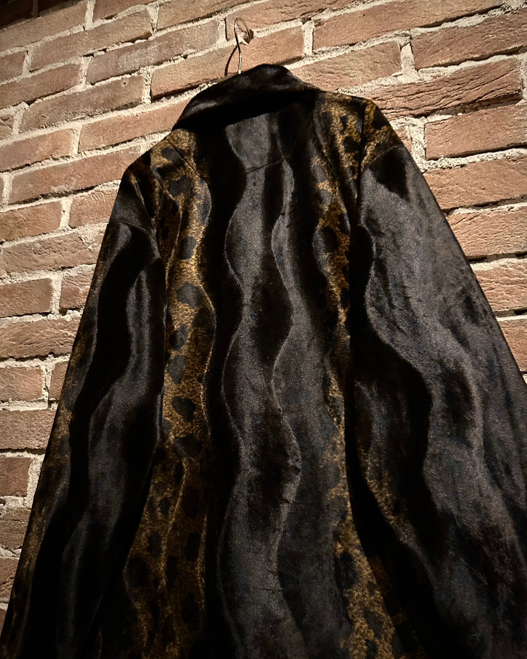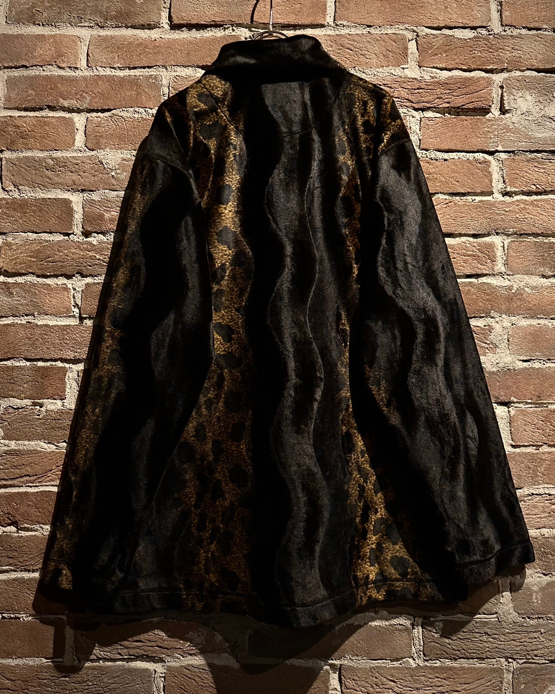 深いブラックをベースにレオパード調の切り替えがリズムよく走るデザインで、動くたびに変化する毛足の流れや陰影が非常に美しい、、、
