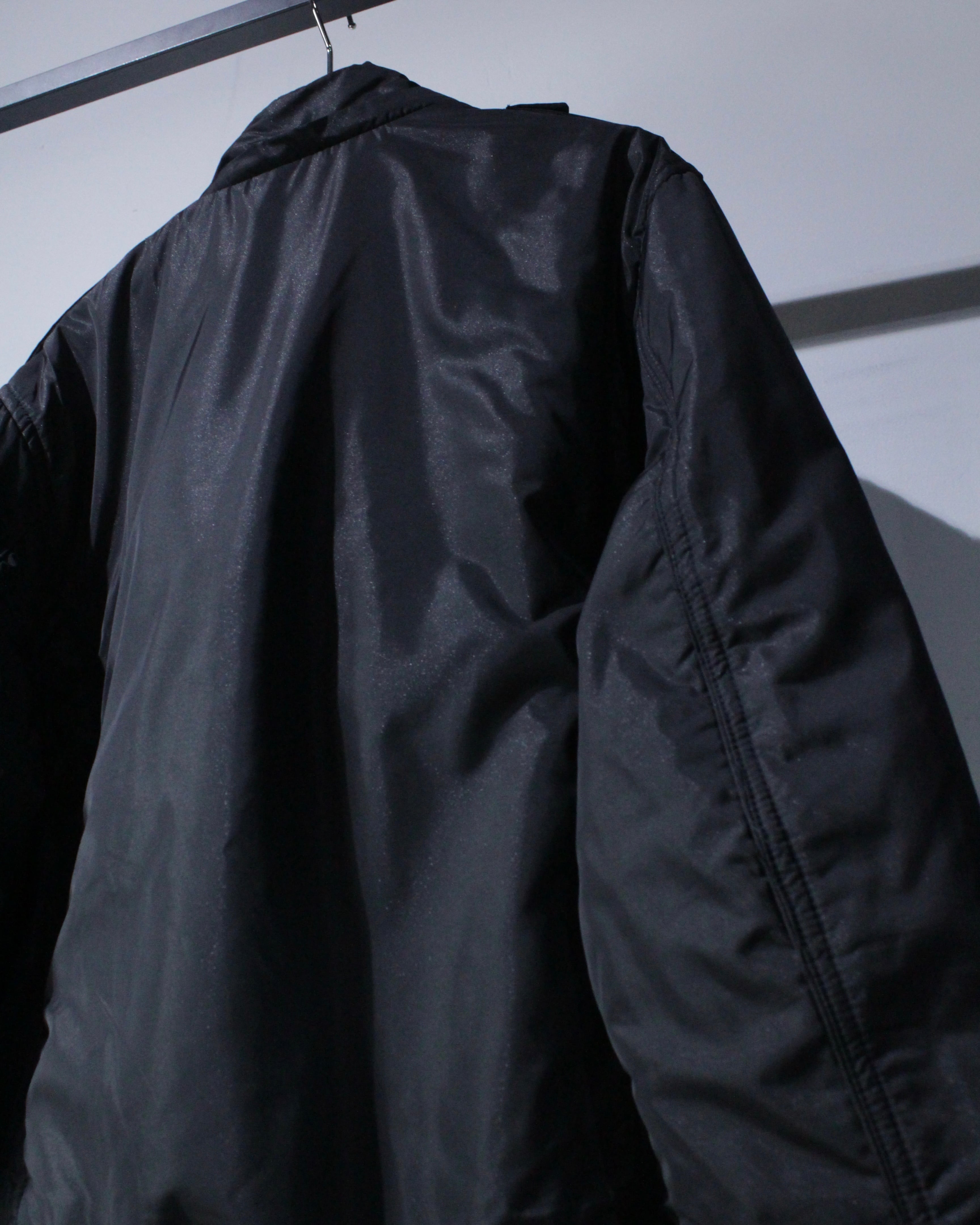 エポレットやフラップポケット、比翼仕立てのフロントなど、ミリタリー由来の細かなディテールが無骨さを演出しつつ、滑らかなボディが放つ控えめな光沢がモードな雰囲気を纏わせています。